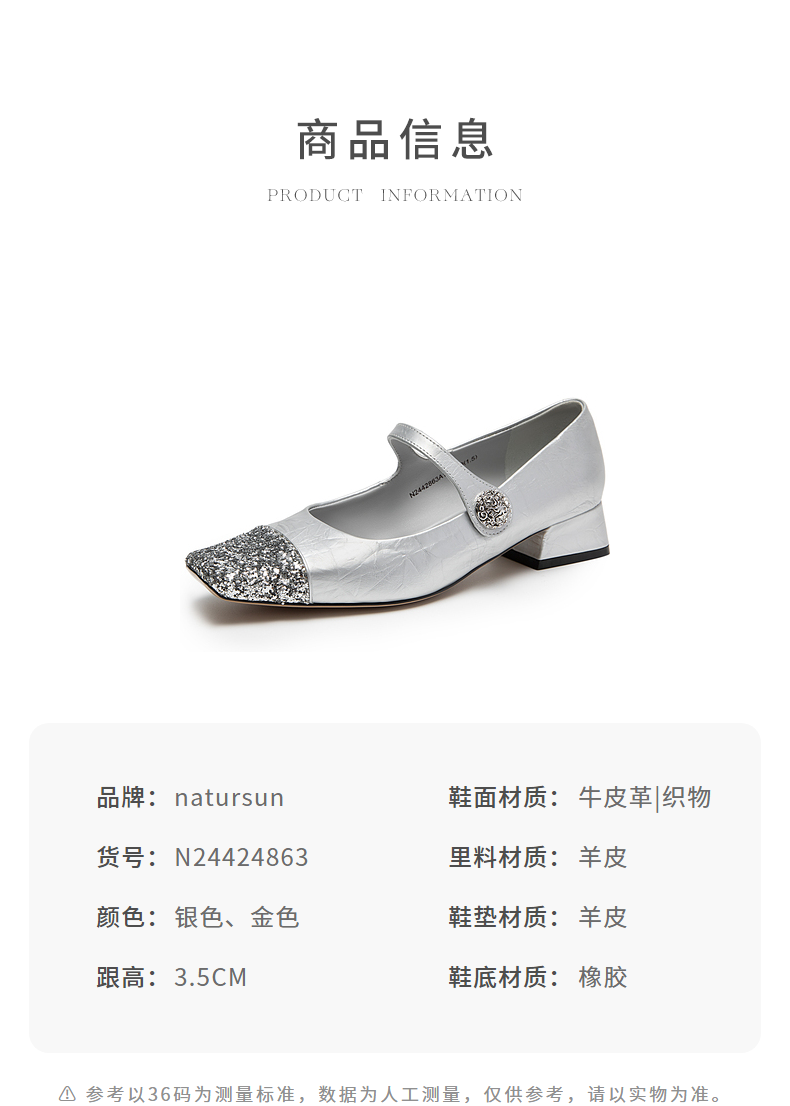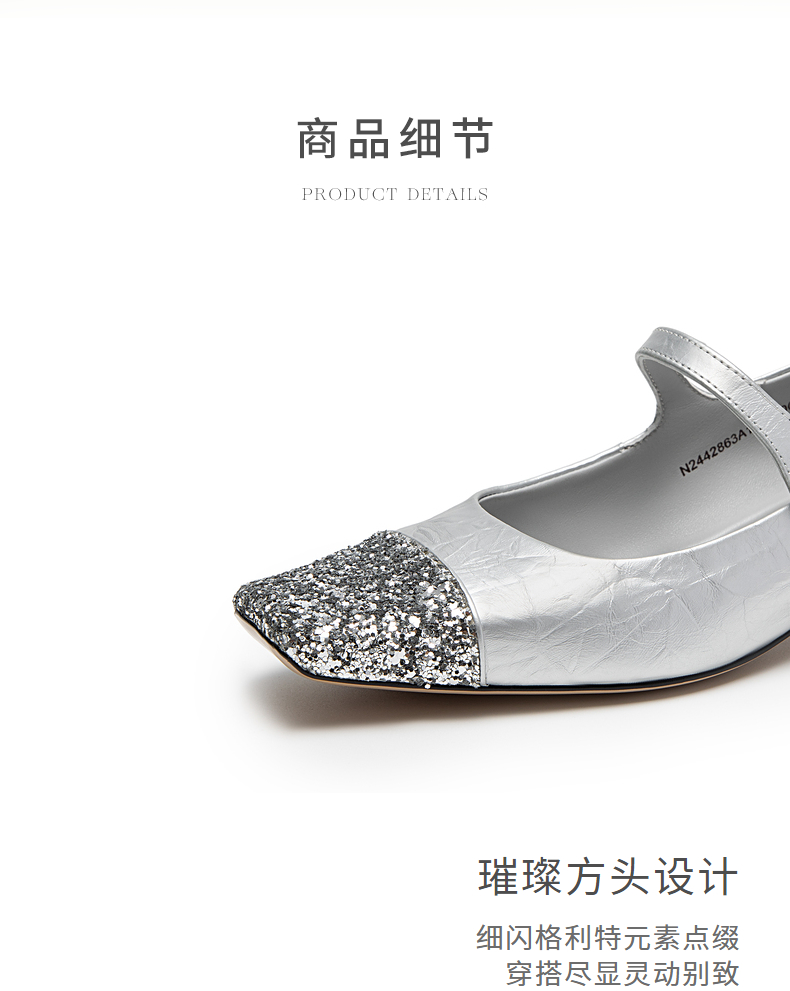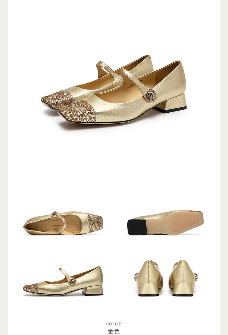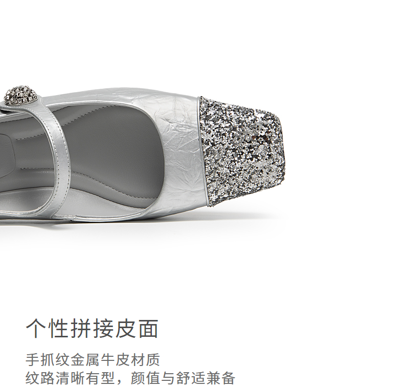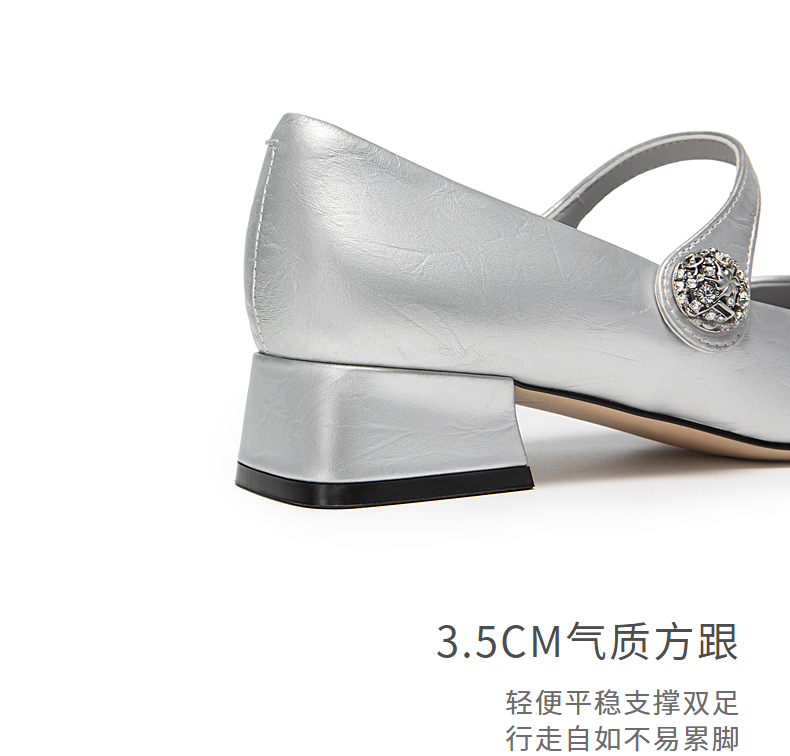 natursun法式复古玛丽珍女鞋方头水钻气质粗跟不累脚单鞋N24424863