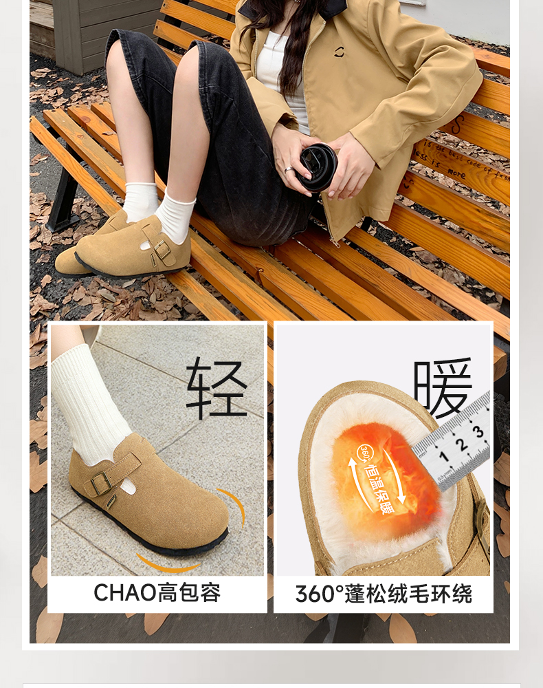 回力女鞋加绒勃肯鞋2025冬季新款一脚蹬毛毛棉鞋外穿加厚雪地靴女