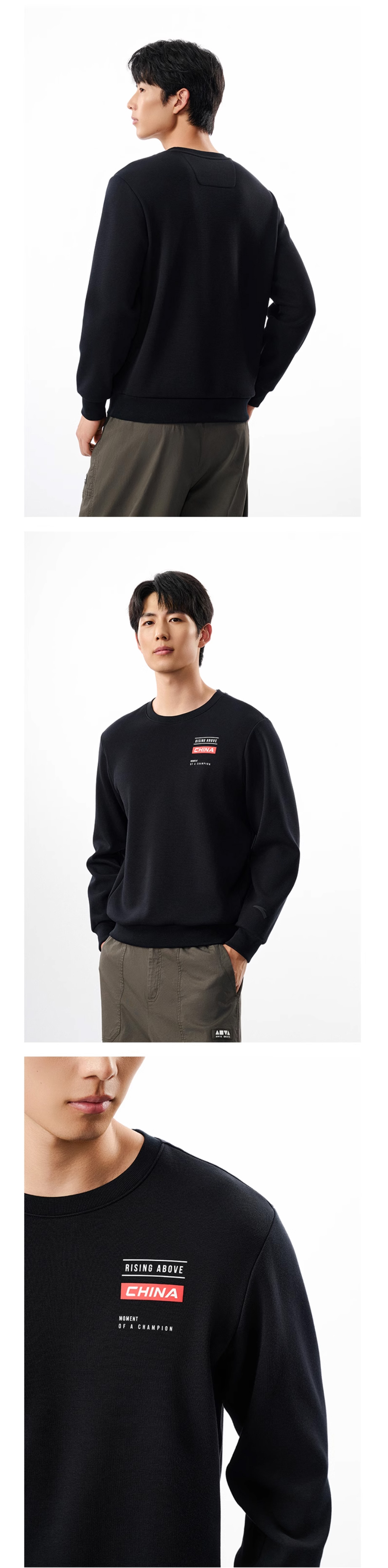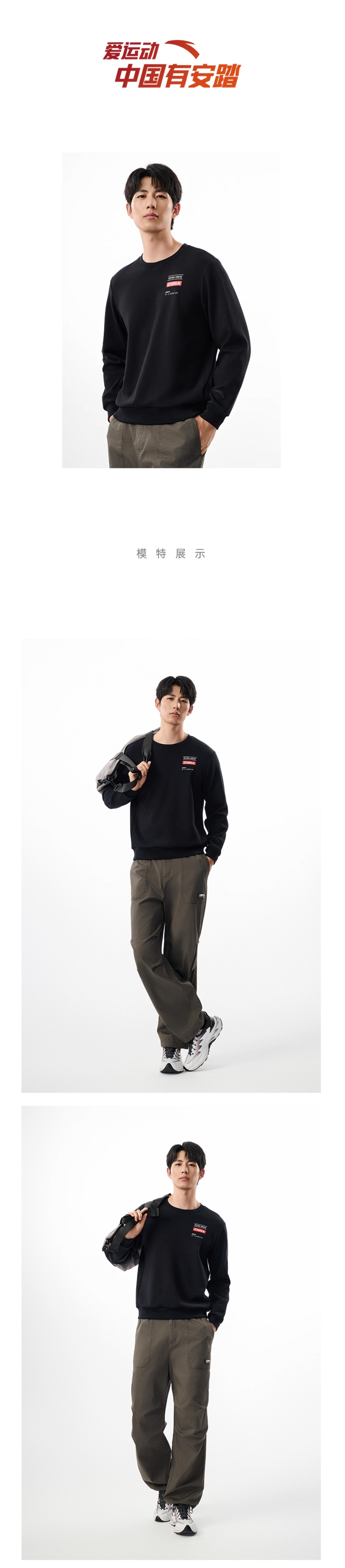 安踏加绒圆领套头卫衣男士冬季新款打底衫长袖针织上衣152547704N-1