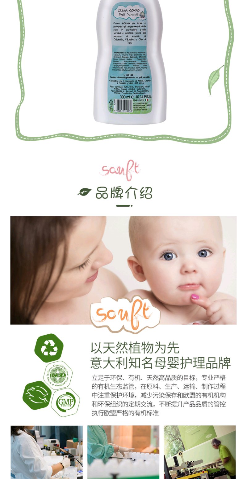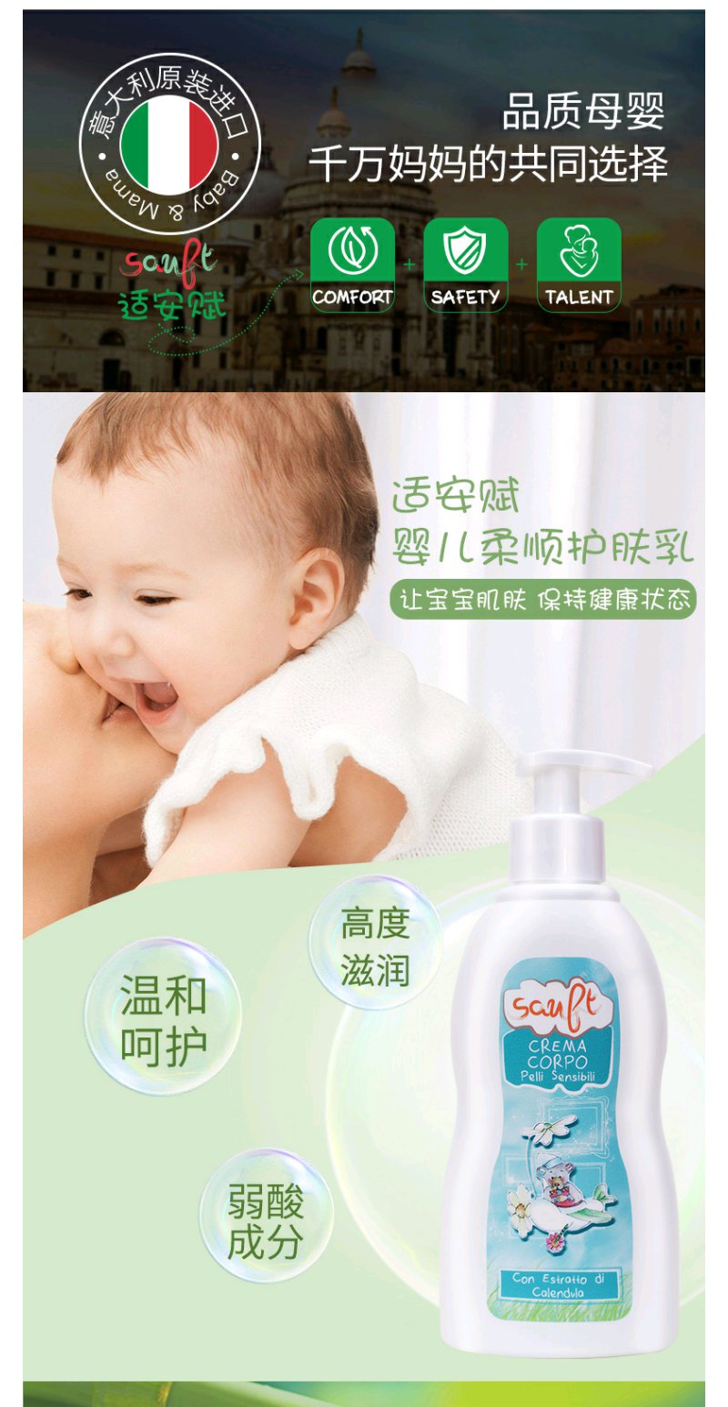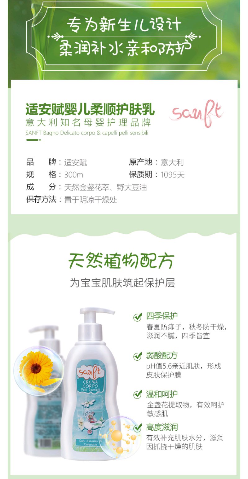 适安赋进口宝宝润肤乳婴儿保湿护肤300ml长效保湿水嫩身体乳液