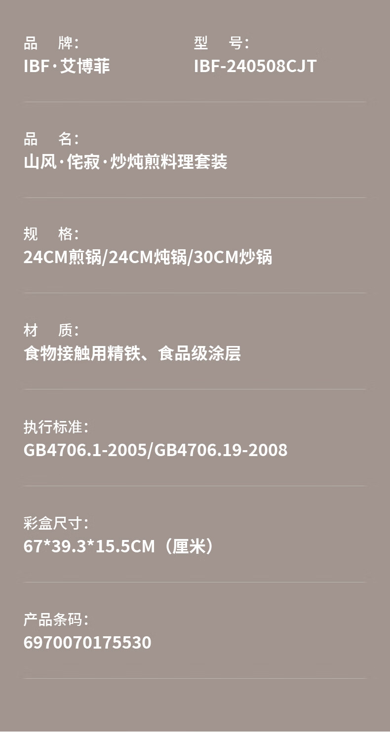 IBF艾博菲艾博菲山风侘寂炒炖煎料理套装【K】