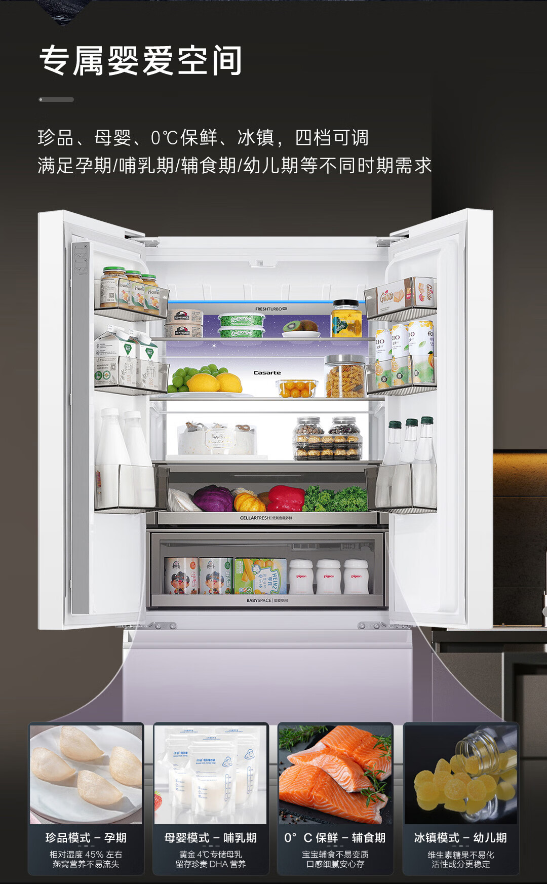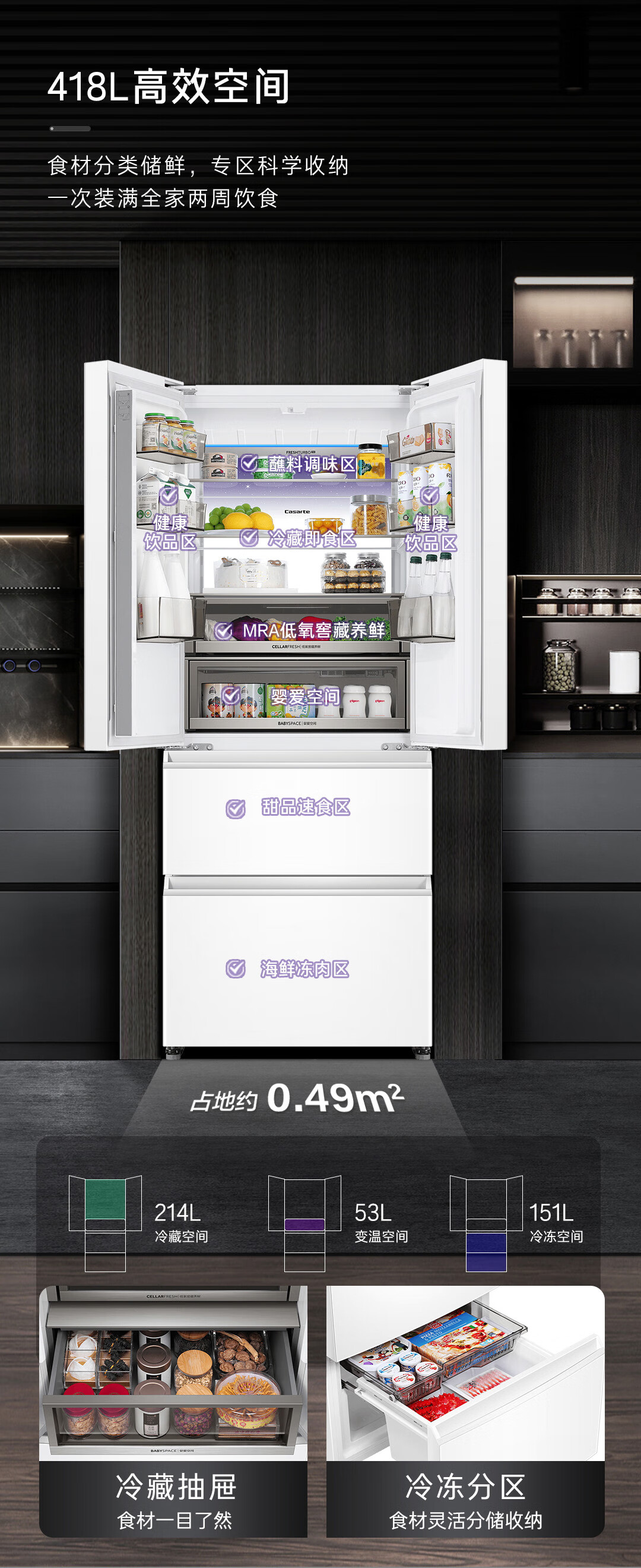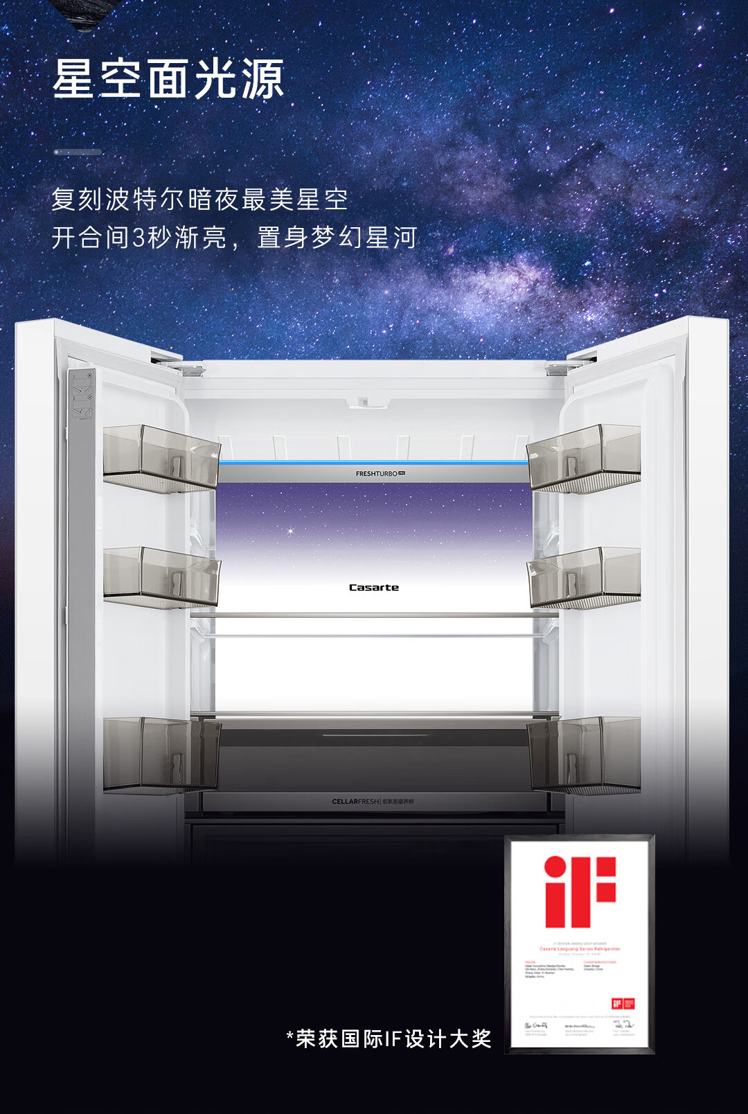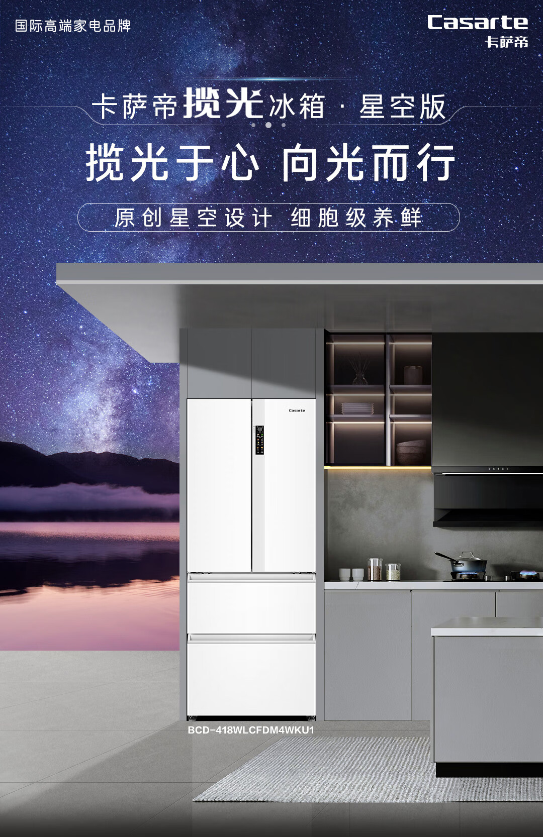 卡萨帝(Casarte)揽光冰箱星空版418升【星悦】超薄零嵌入式法式变频一级能效国家补贴20%冰箱BCD-418WLCFDM4WKU1