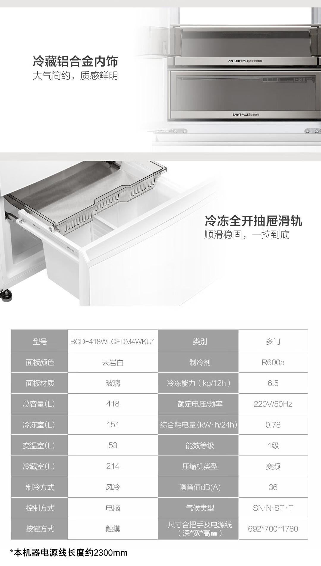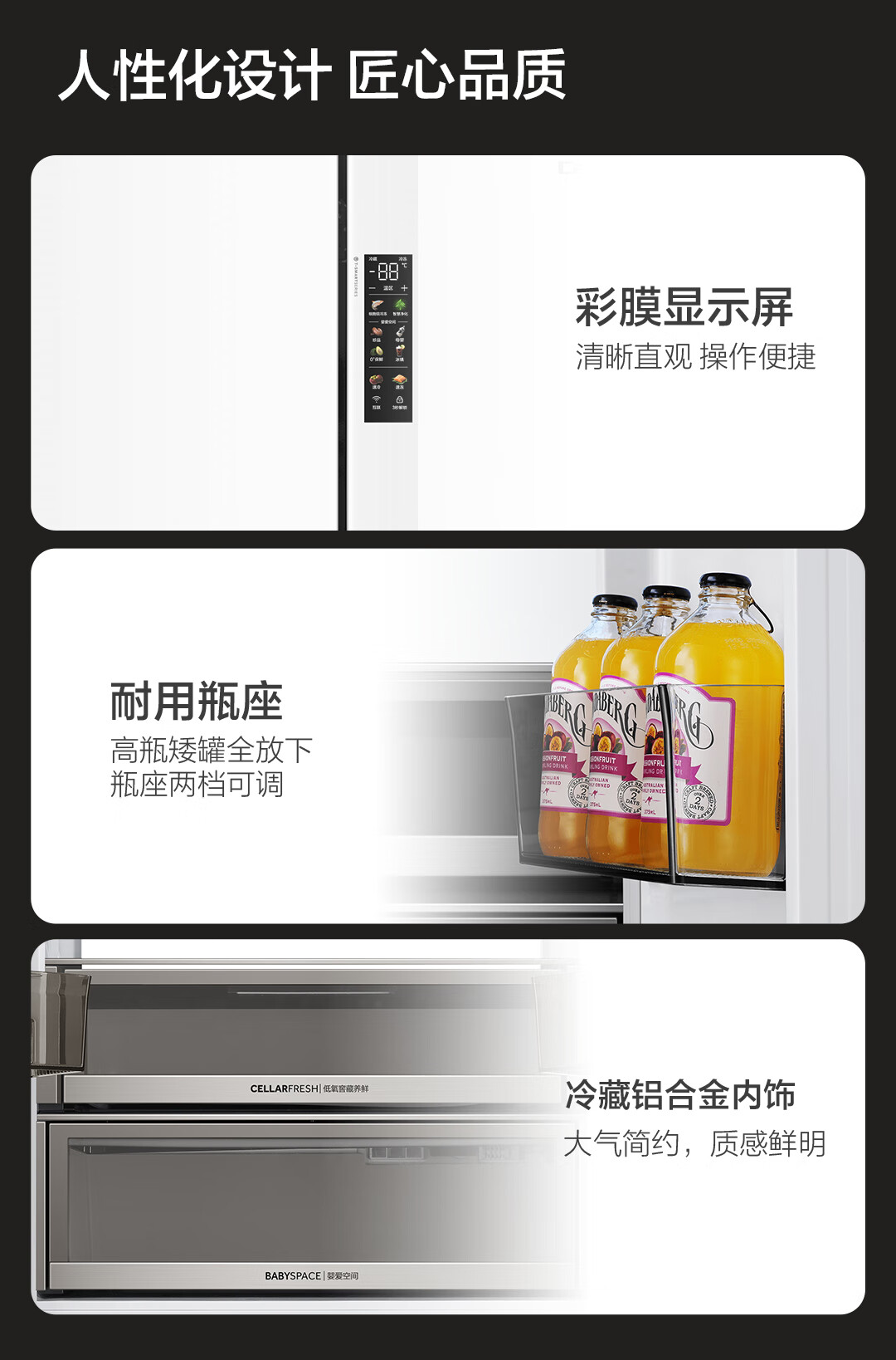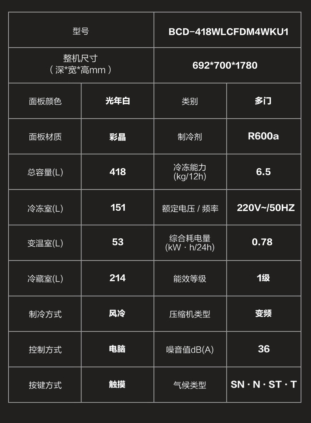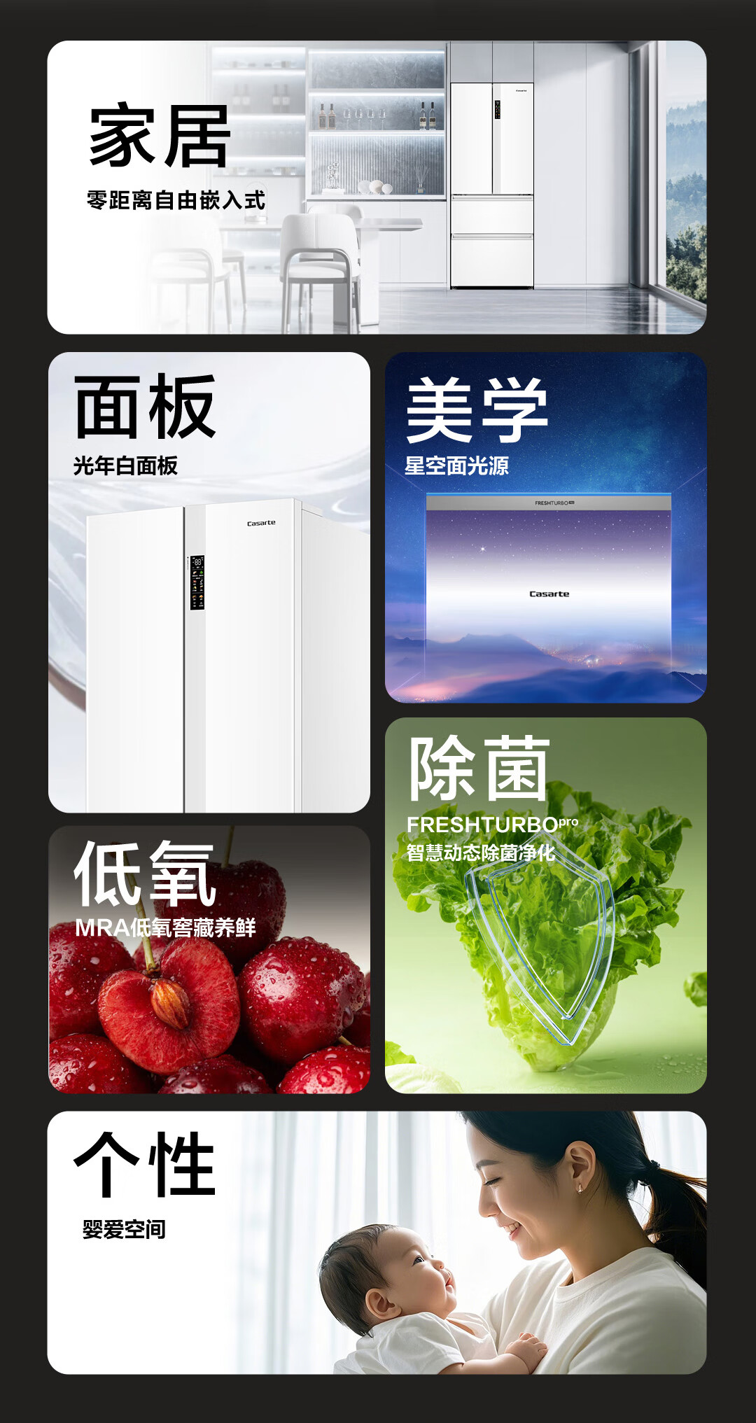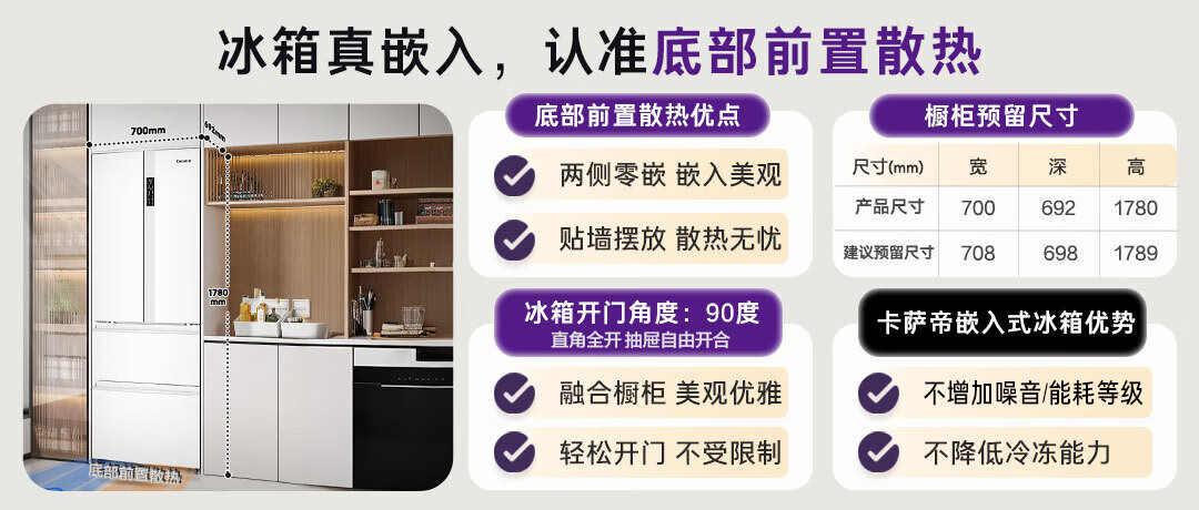 卡萨帝(Casarte)揽光冰箱星空版418升【星悦】超薄零嵌入式法式变频一级能效国家补贴20%冰箱BCD-418WLCFDM4WKU1