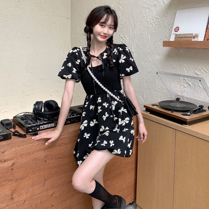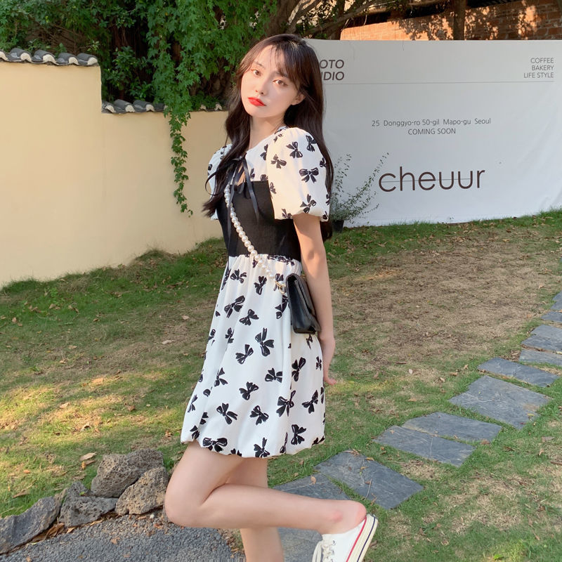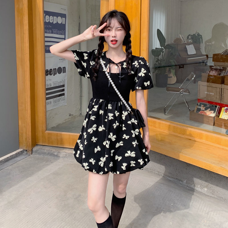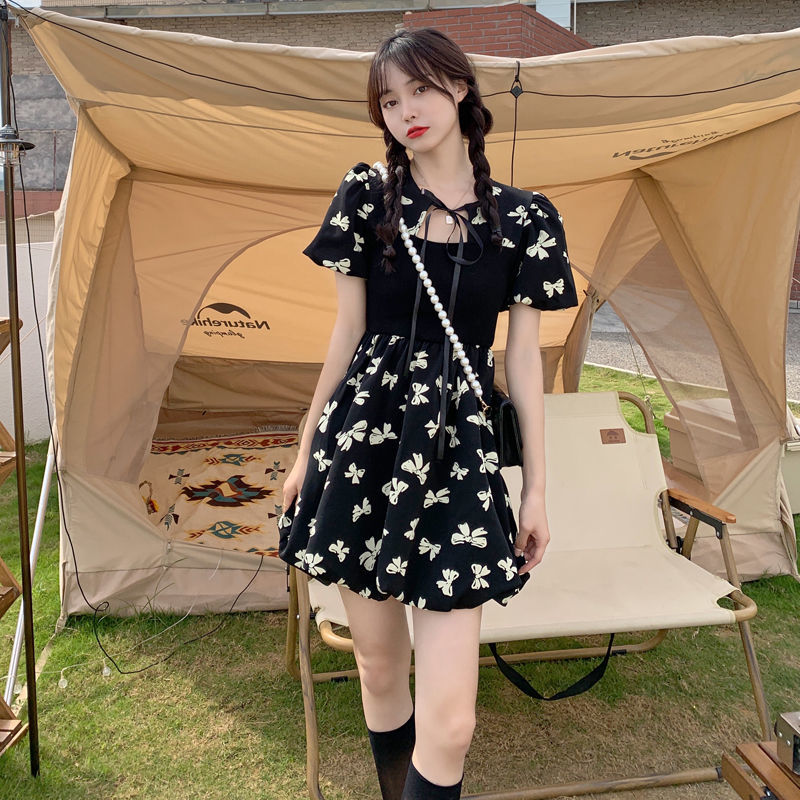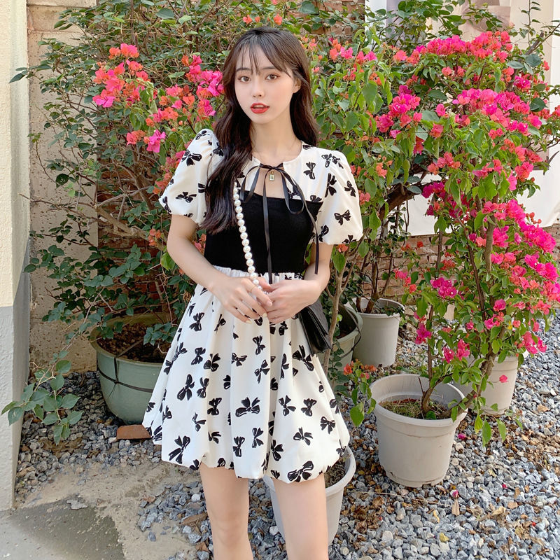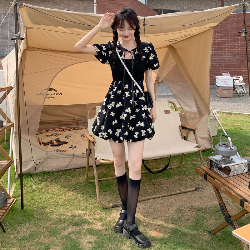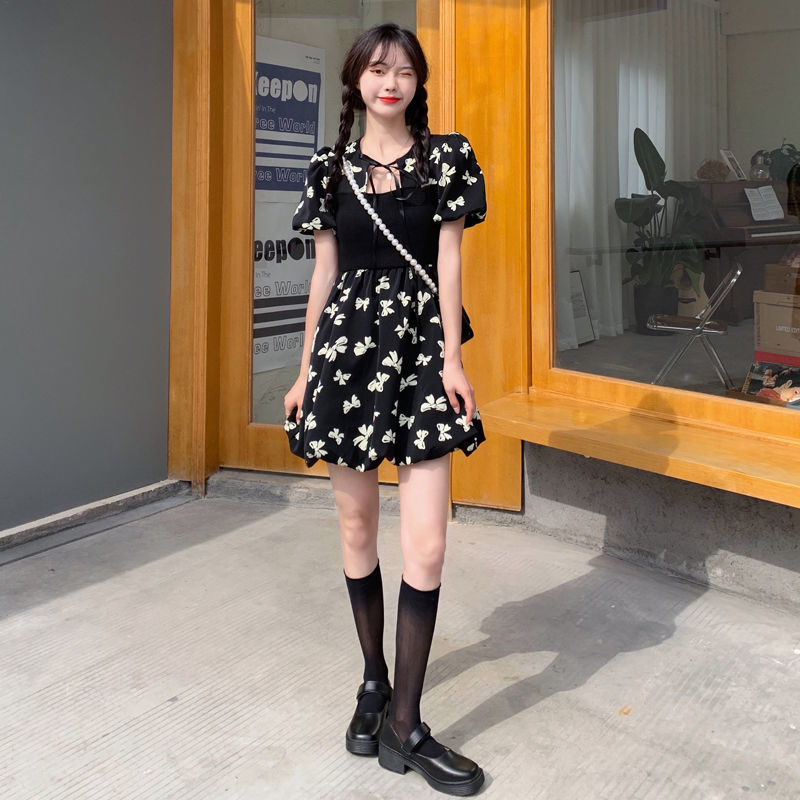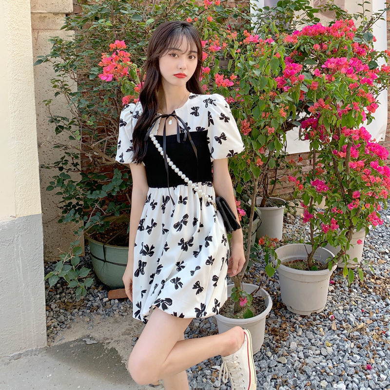 黛唯梵法式初恋甜美连衣裙女夏小清新蝴蝶结辣妹裙系带高腰显瘦蓬蓬裙子国庆清明出游