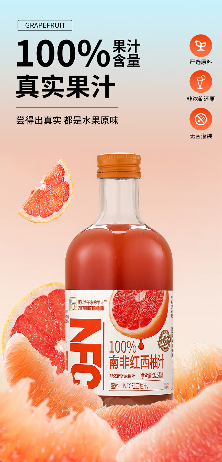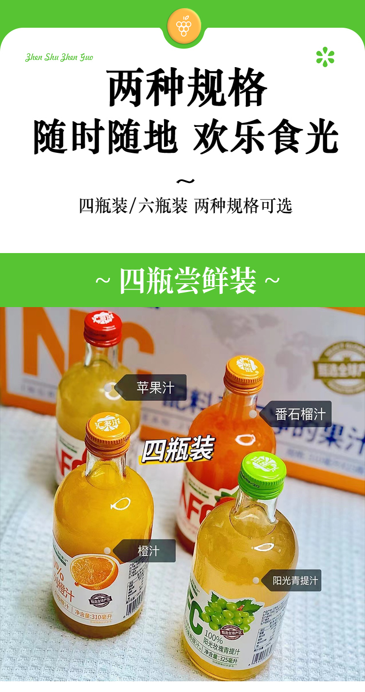 【NFC鲜果汁】100%纯果汁,配料干净无添加,多款风味