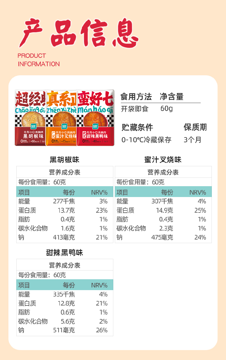 鲜嫩鸡小胸 优形小Q即食鸡胸肉 21袋装