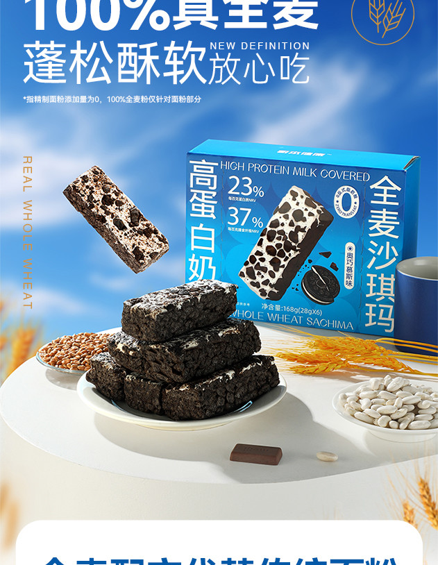 心选丨【怕糖怕碳·定制款】哥本优选·高蛋白奶盖全麦沙琪玛奥巧慕斯味 奥巧+奶盖 美味控卡