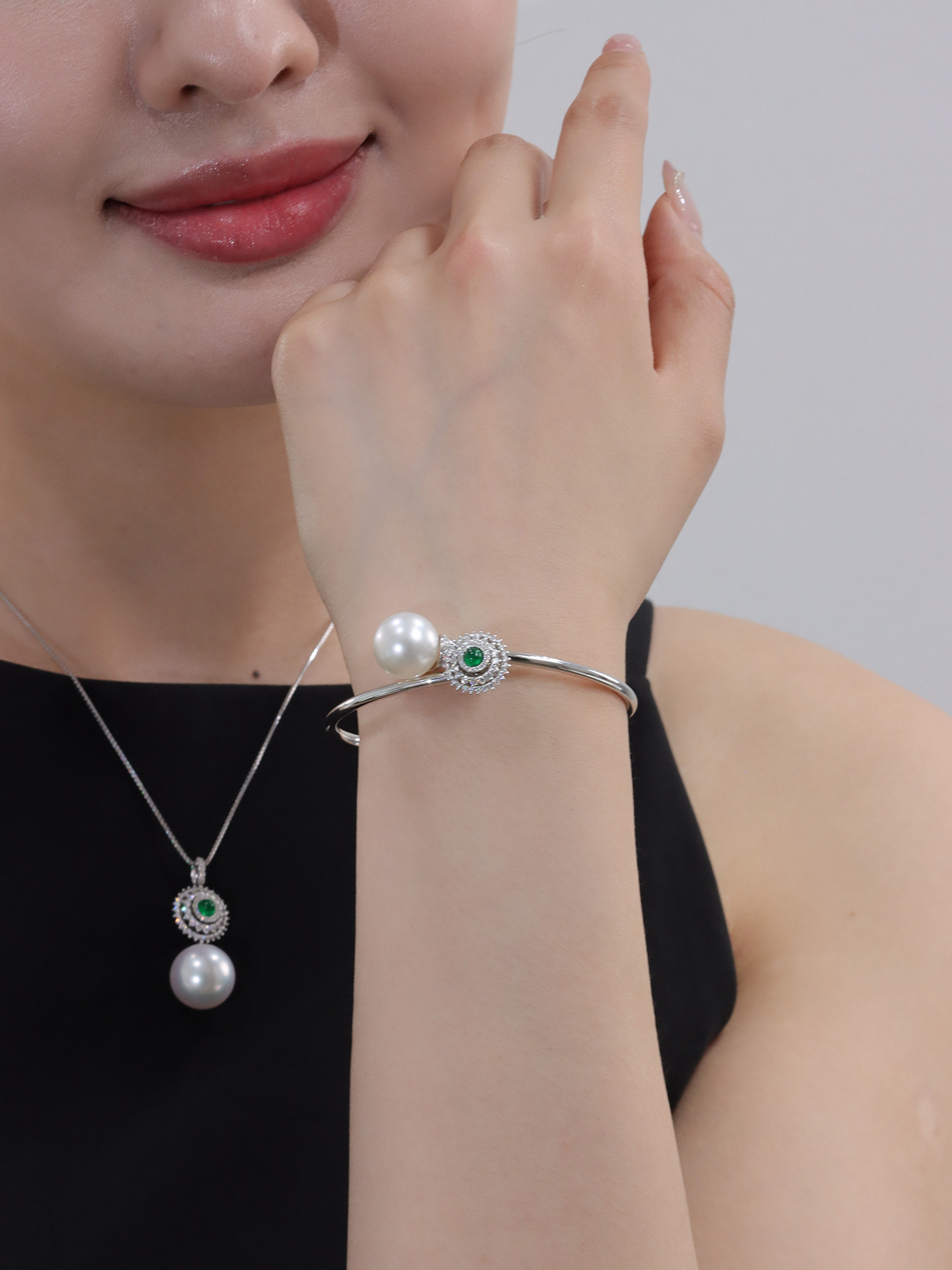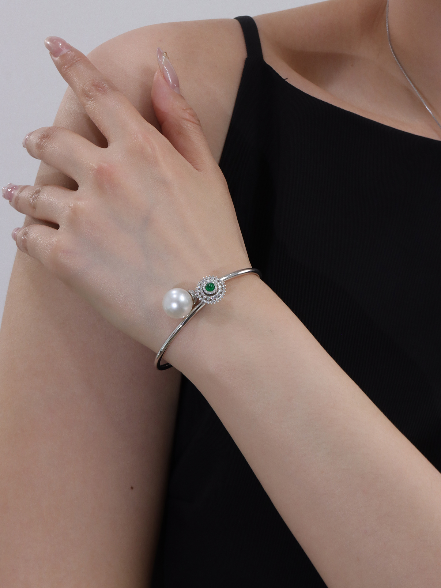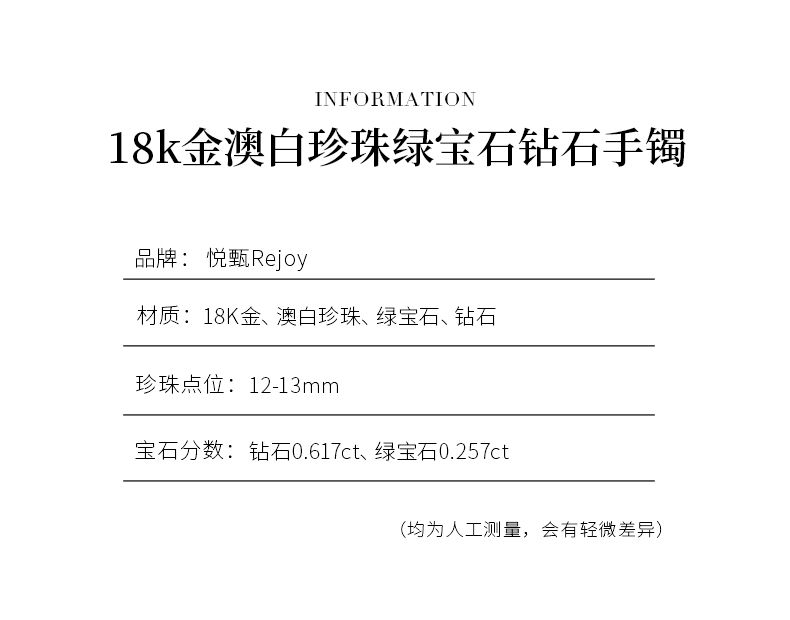 【挚友限定】时来运转-18K金澳白珍珠绿宝石钻石手镯 12-13mm