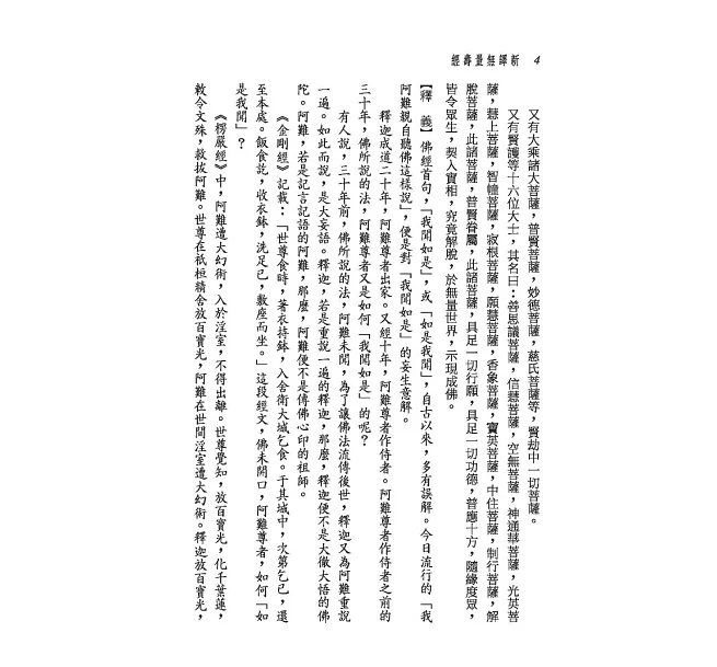 《無量壽經》所說的無量壽,即是諸人的自性法身。自性法身,不生不滅,永恆常在,故名無量壽。法藏比丘,即是諸人的始覺。無量壽佛,即是諸人的本覺。始覺歸向本覺,即是法藏歸向自性。《新譯無量壽經》一書,遵循「是心作佛,是心是佛」這一宗旨,詳細地闡釋了《無量壽經》的深層含義。
