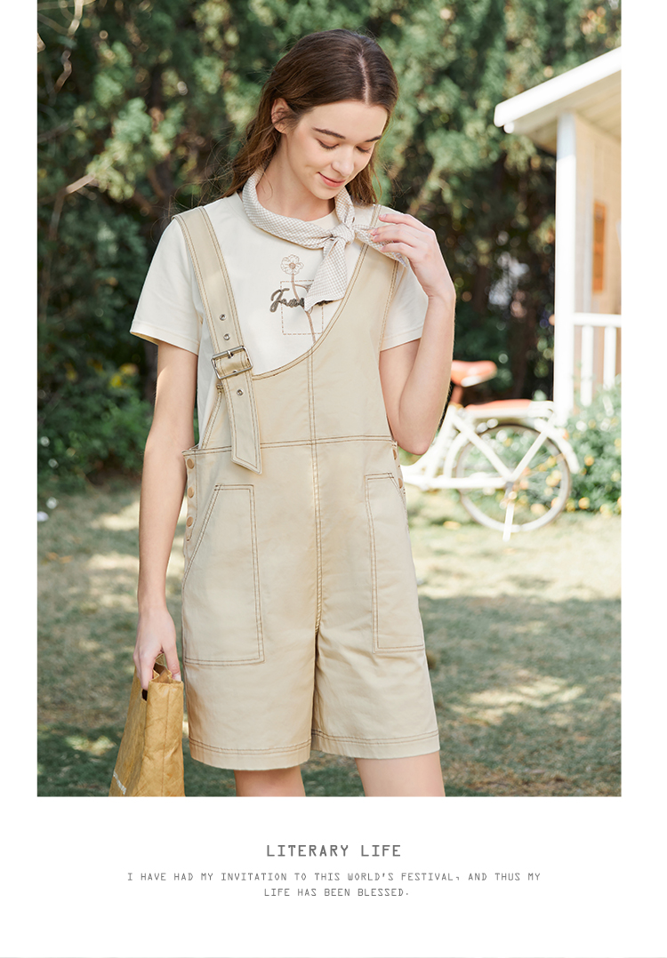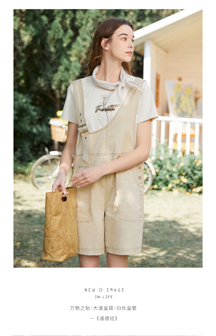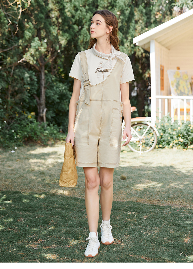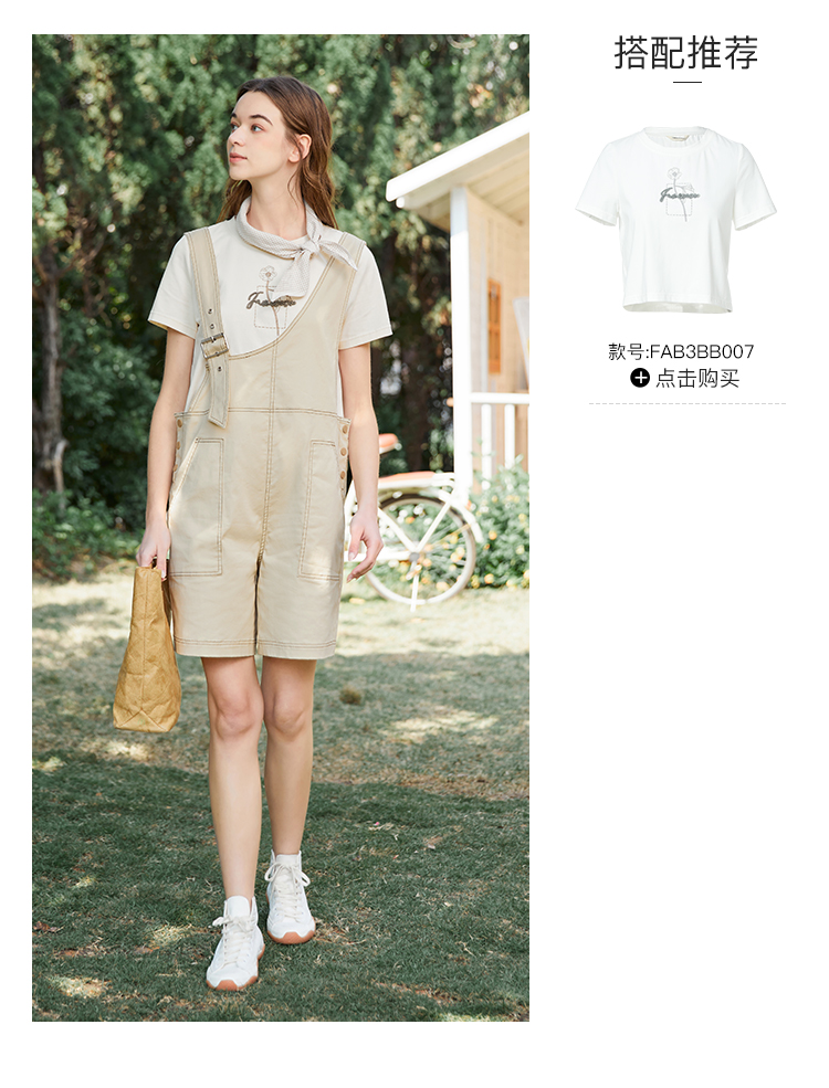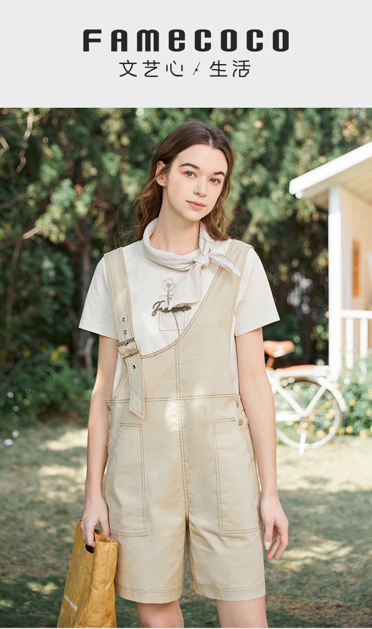 Famecoco范可儿不对称背带裤女夏季新款设计感休闲五分阔脚裤FAB3GF003