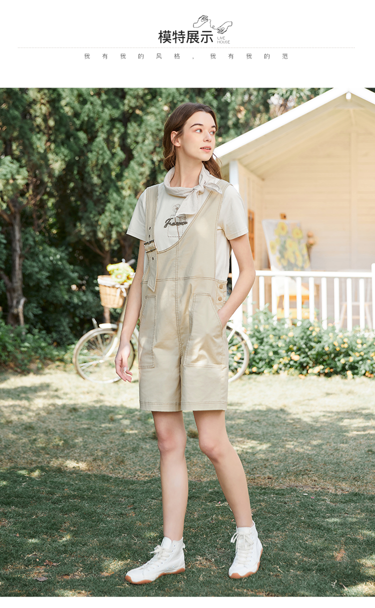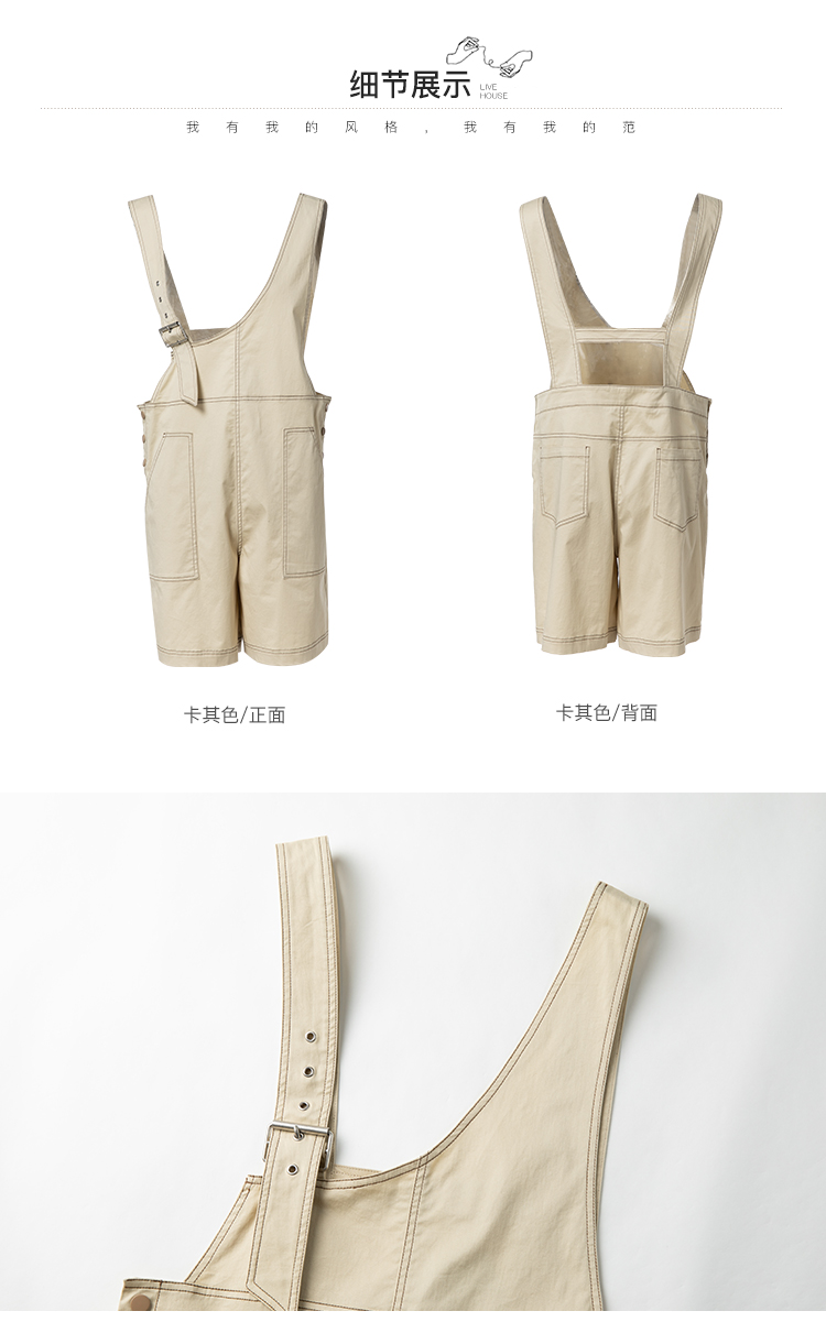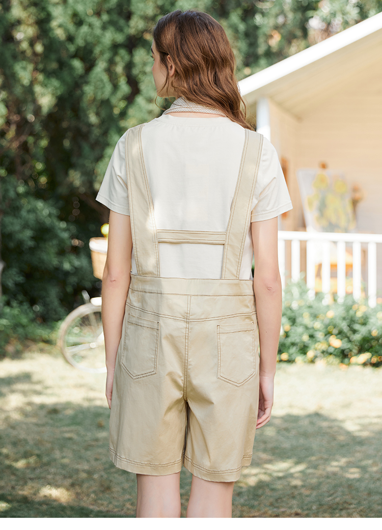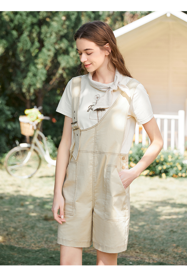 Famecoco范可儿不对称背带裤女夏季新款设计感休闲五分阔脚裤FAB3GF003
