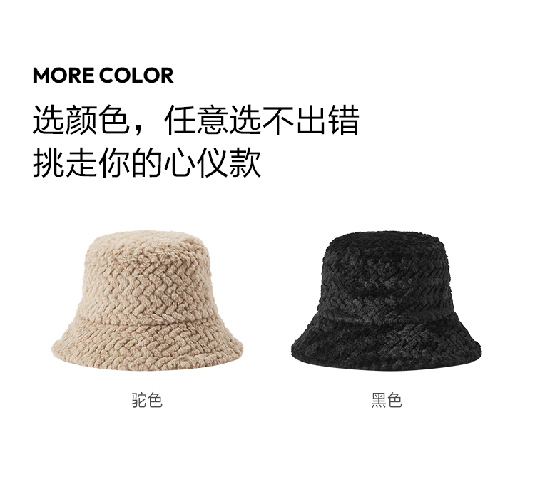 森马渔夫帽女2024新款保暖毛绒绒帽子秋冬显脸小水桶帽纯色盆帽