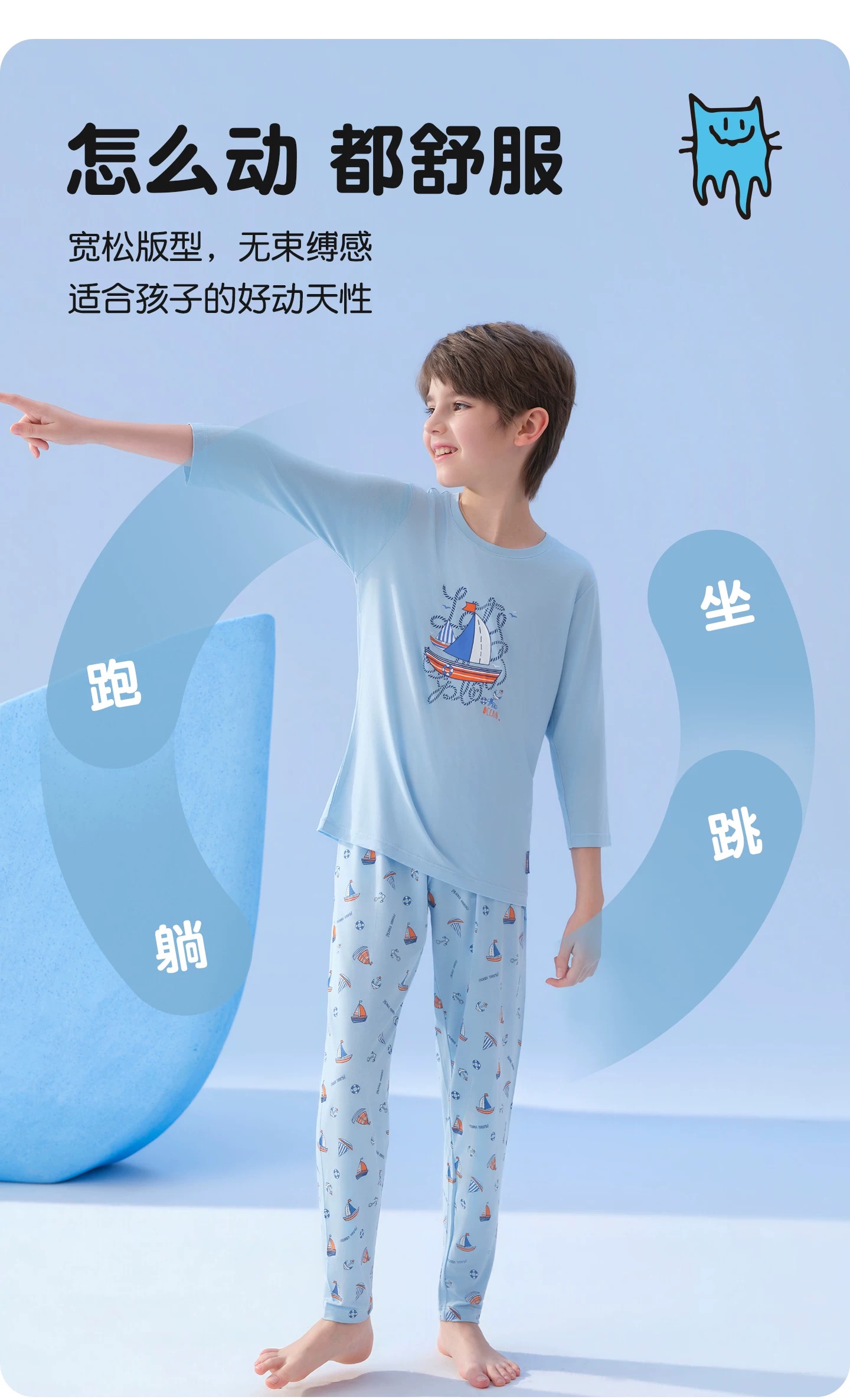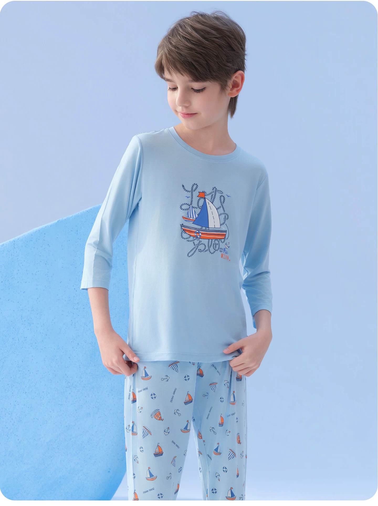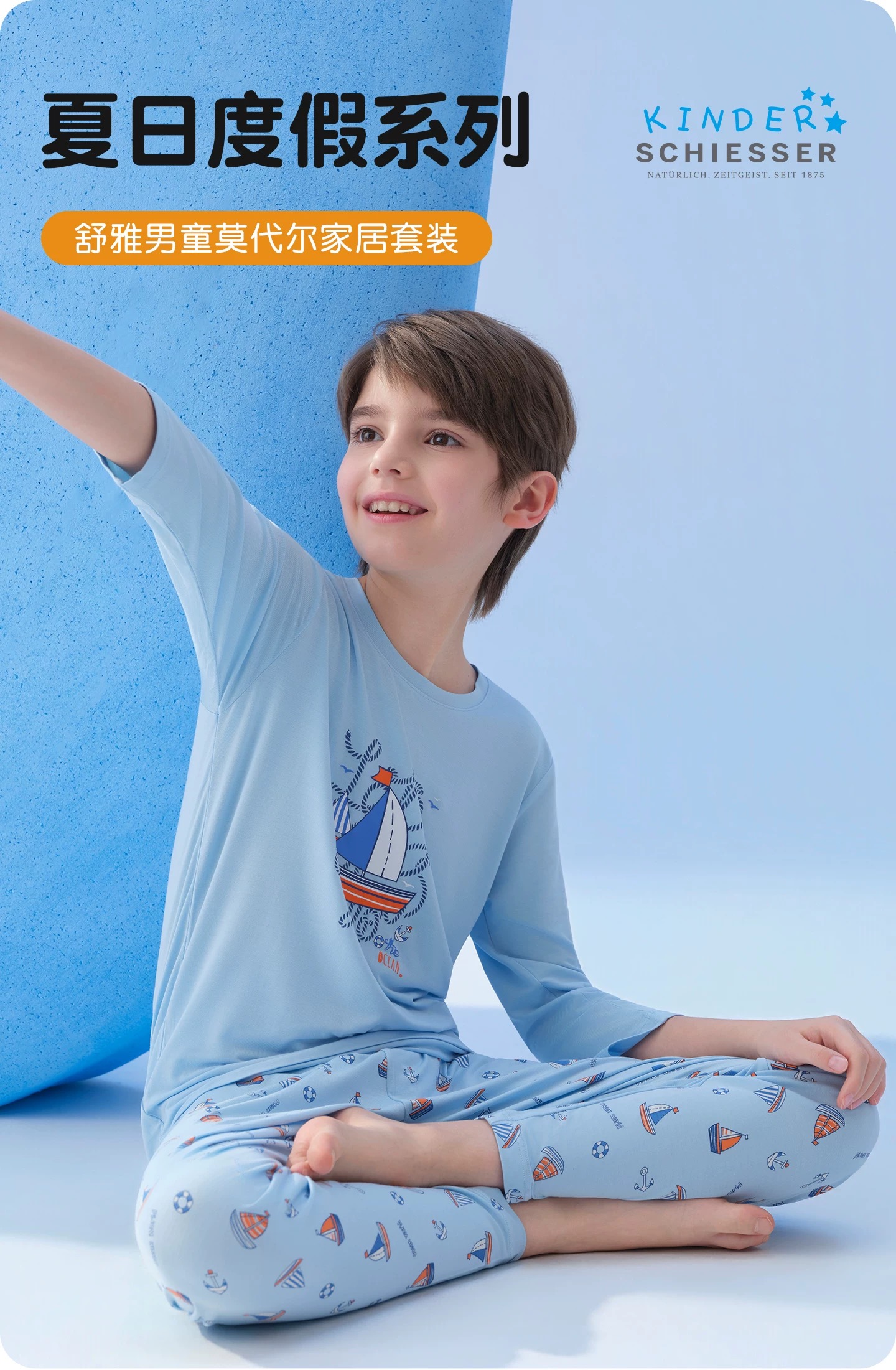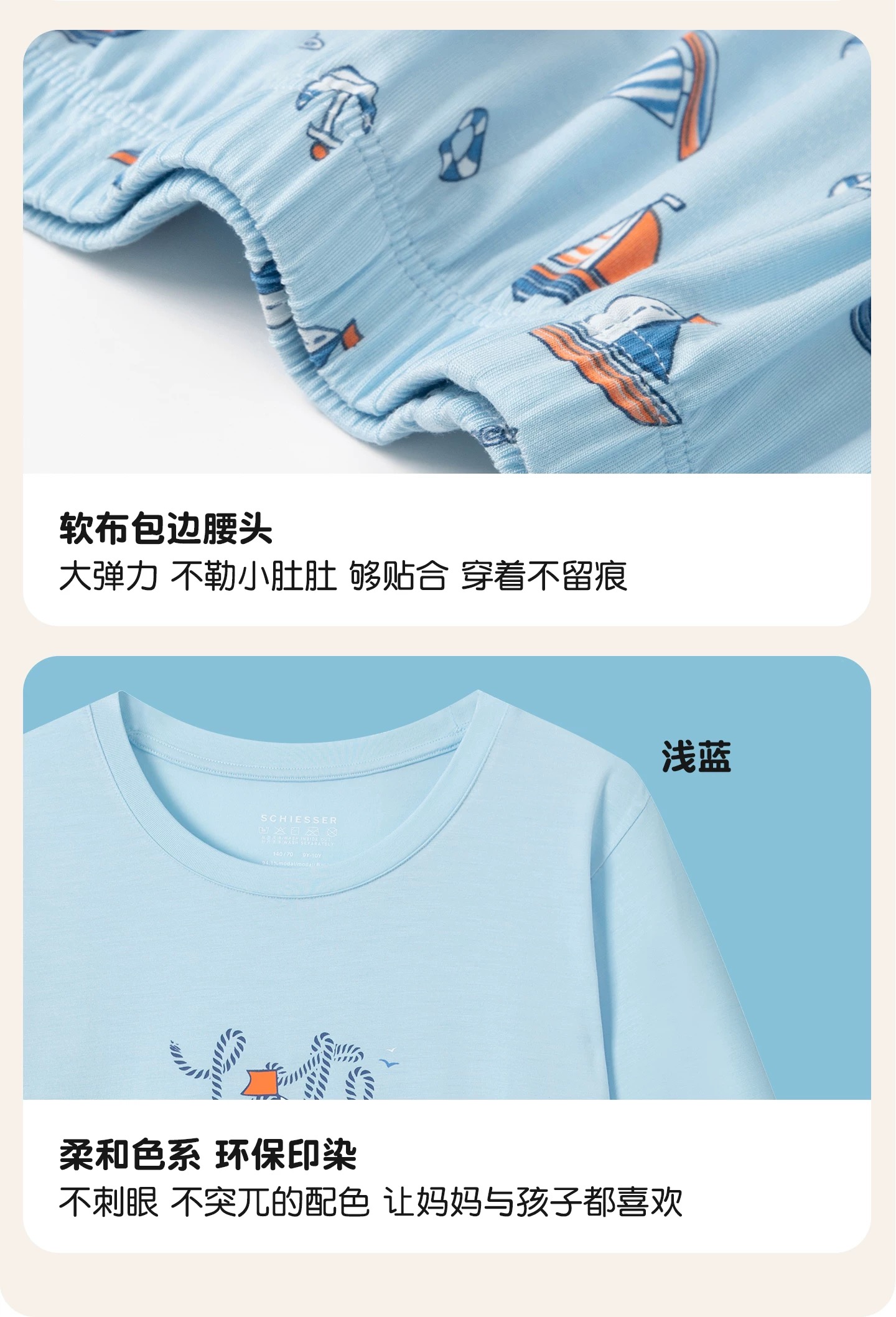【夏日度假】SCHIESSER德国舒雅男童莫代尔轻柔舒适度假风家居套装(110码-160码)3B/27269H