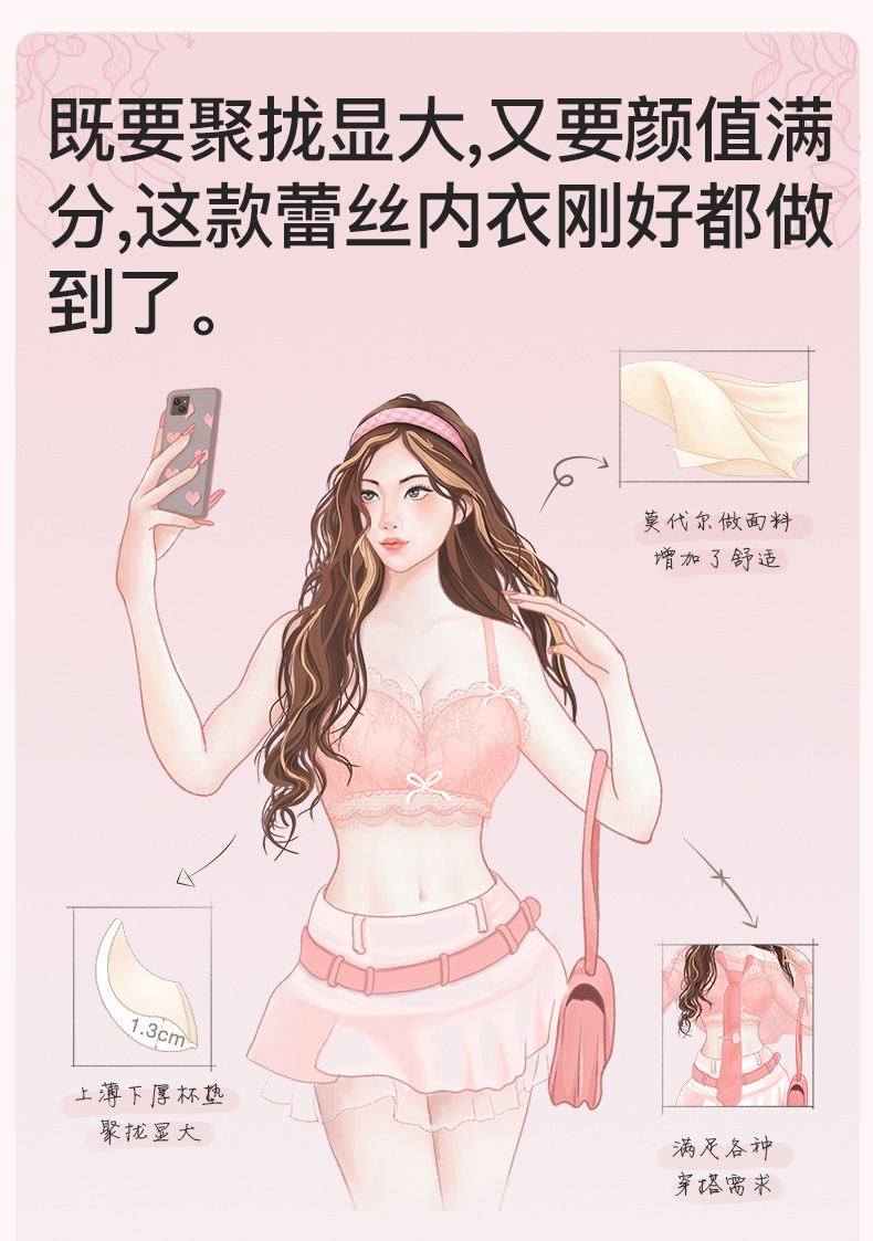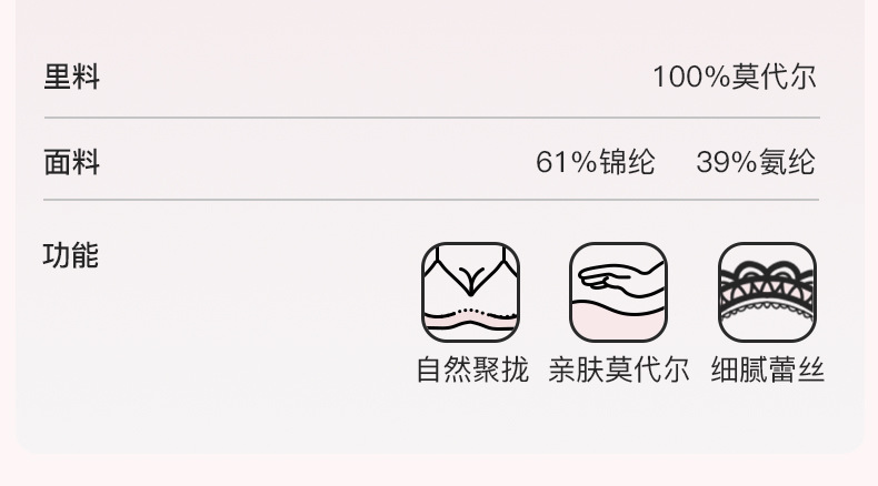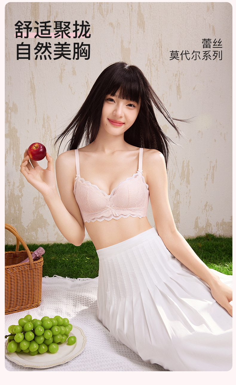 【109元/2件】【专柜大牌同款】春夏小胸聚拢性感蕾丝内衣 100%莫代尔舒适文胸