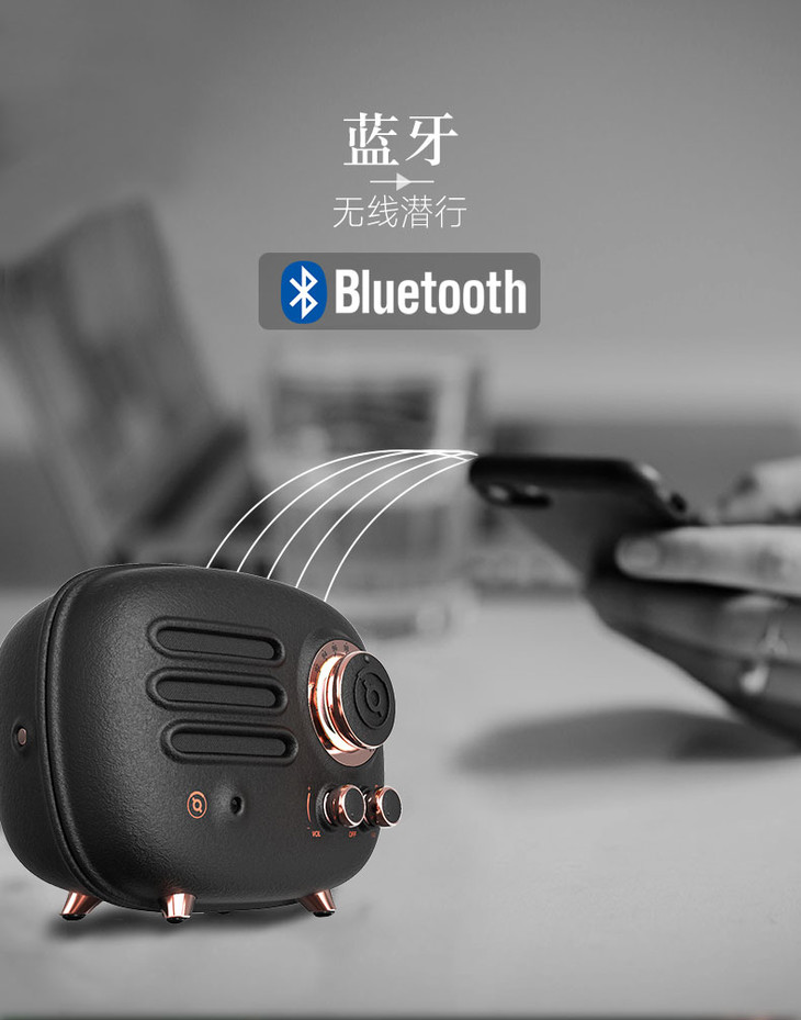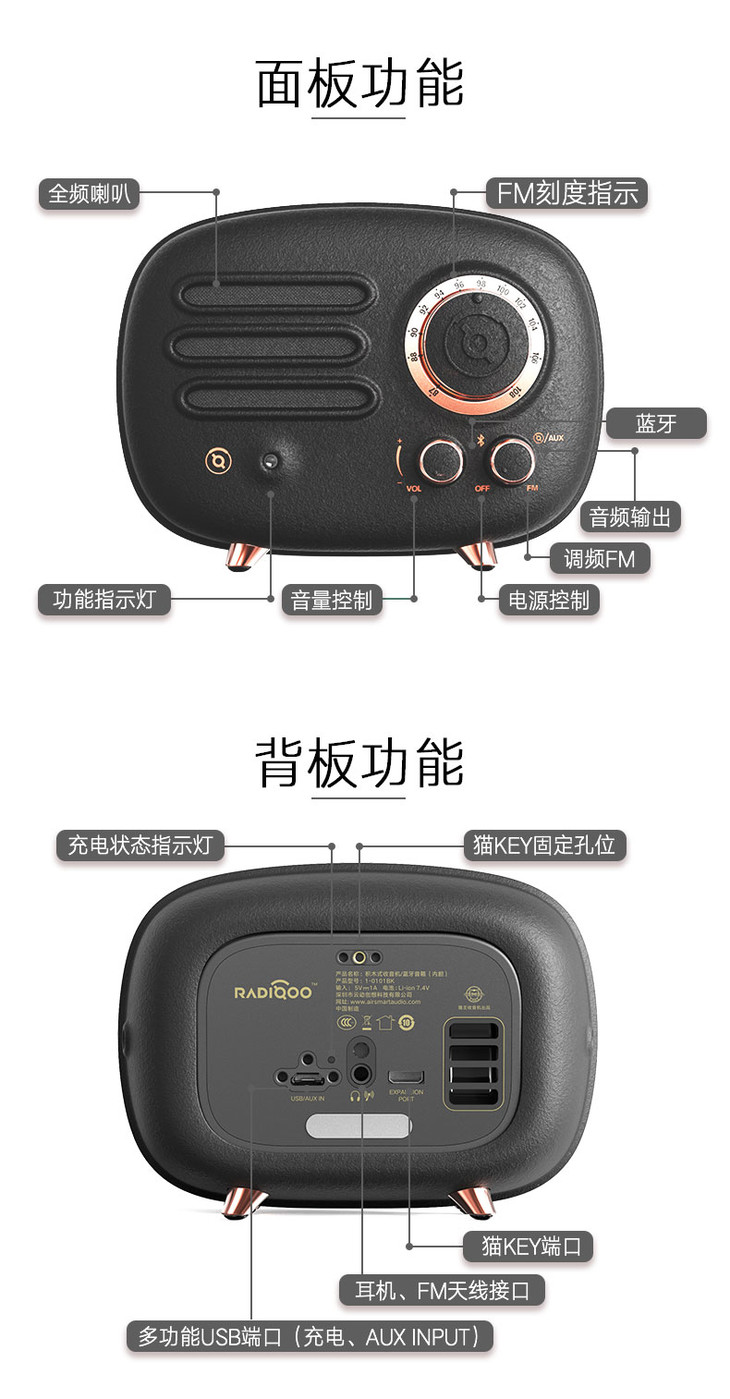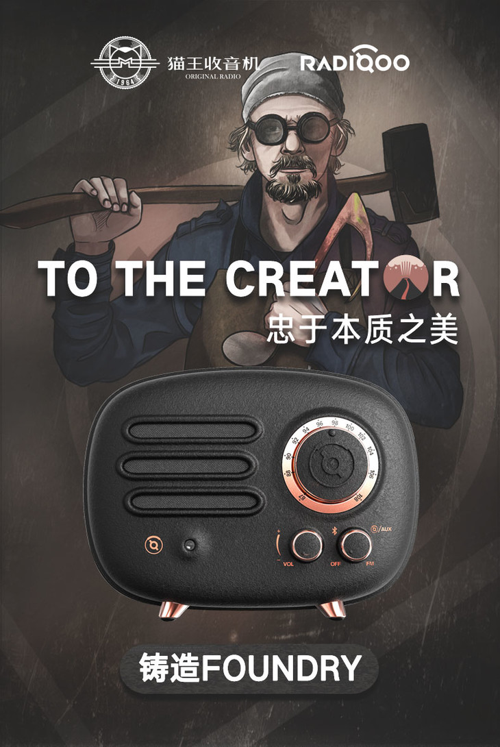 猫王收音机FY101BK猫王radiooo铸造黑无线蓝牙音箱音响复古收音机便携式低音炮创意小音响蓝牙播放器家用户外