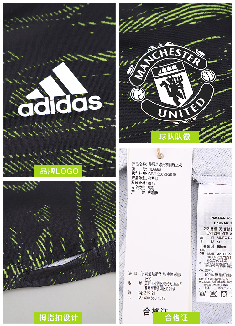 ADIDAS/阿迪达斯 MUFC EU TR TOP曼联足球长袖训练上衣HE6686
