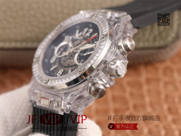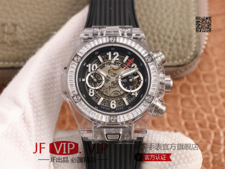 透明宇舶BIG BANG系列411.NM.1170.RX腕表,7750机芯机械改装HUB1241Unico 表径45.5毫米 振频28800 动力,男士腕表