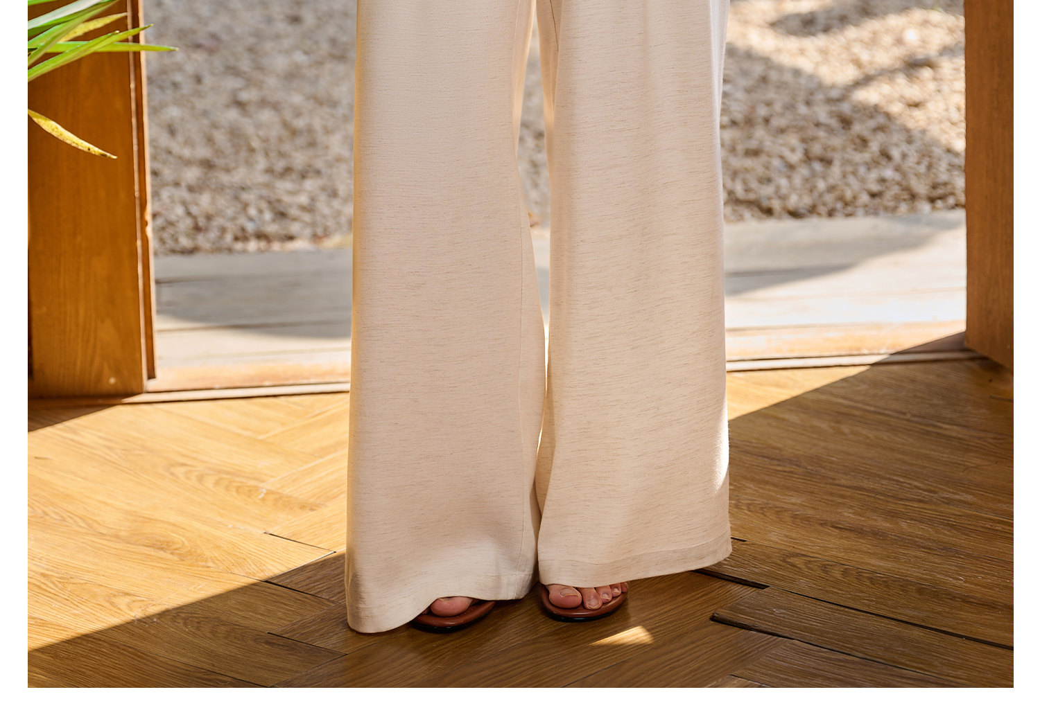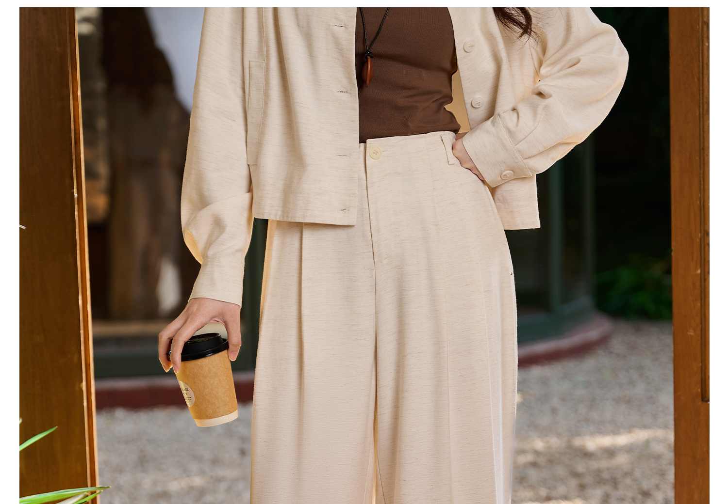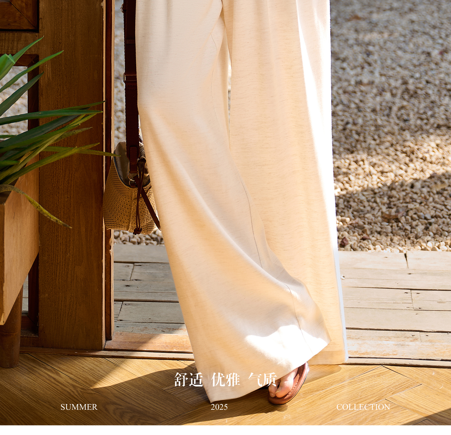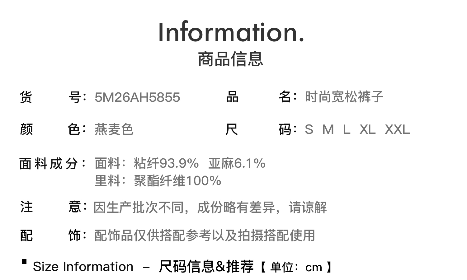 米思阳2026春新款休闲感垂顺亚麻混纺透气舒适休闲裤直筒裤子女5855