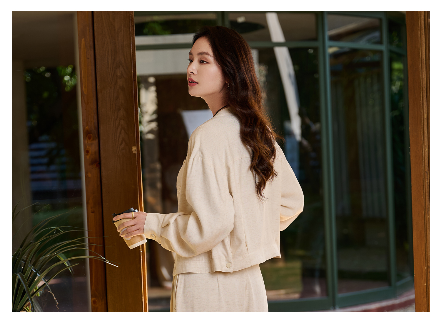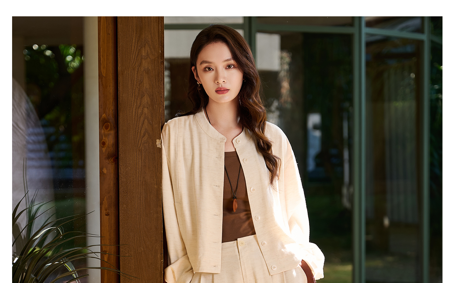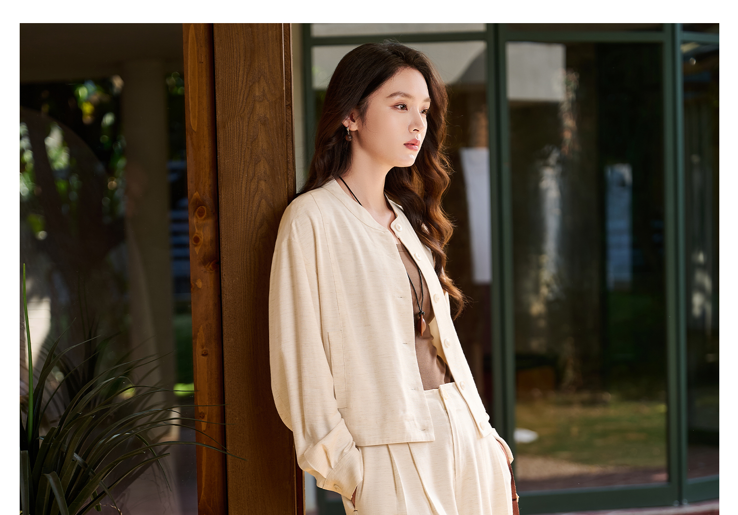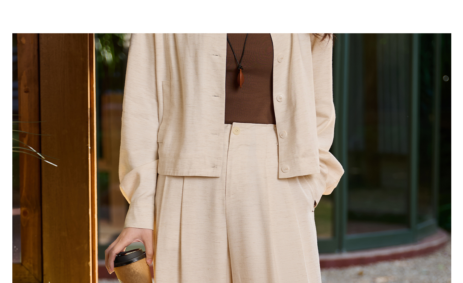 米思阳2026春新款休闲感垂顺亚麻混纺透气舒适休闲裤直筒裤子女5855