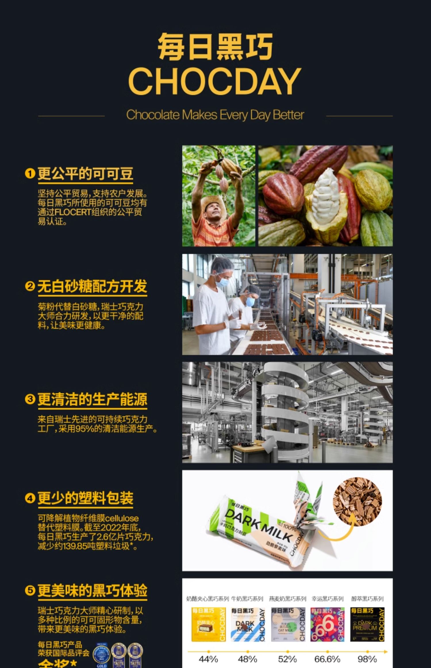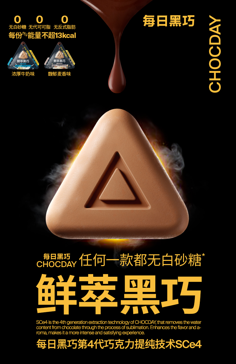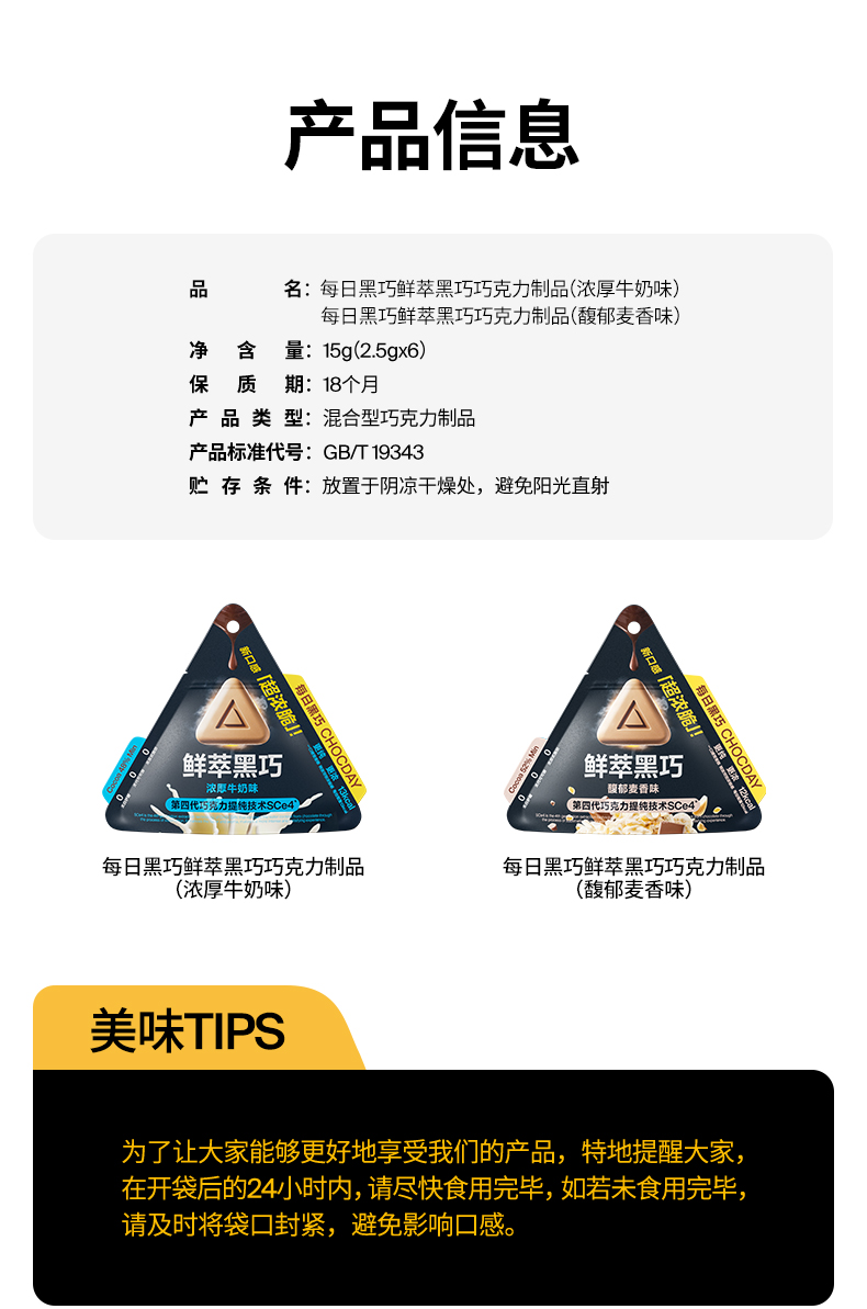 每日黑巧鲜萃黑巧6袋 无白砂糖浓脆黑巧克力零食小吃