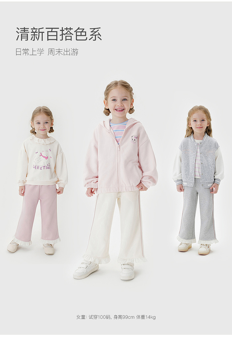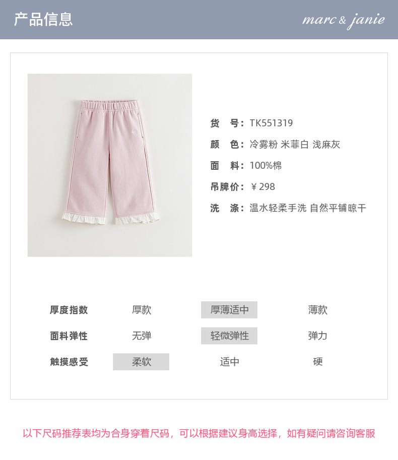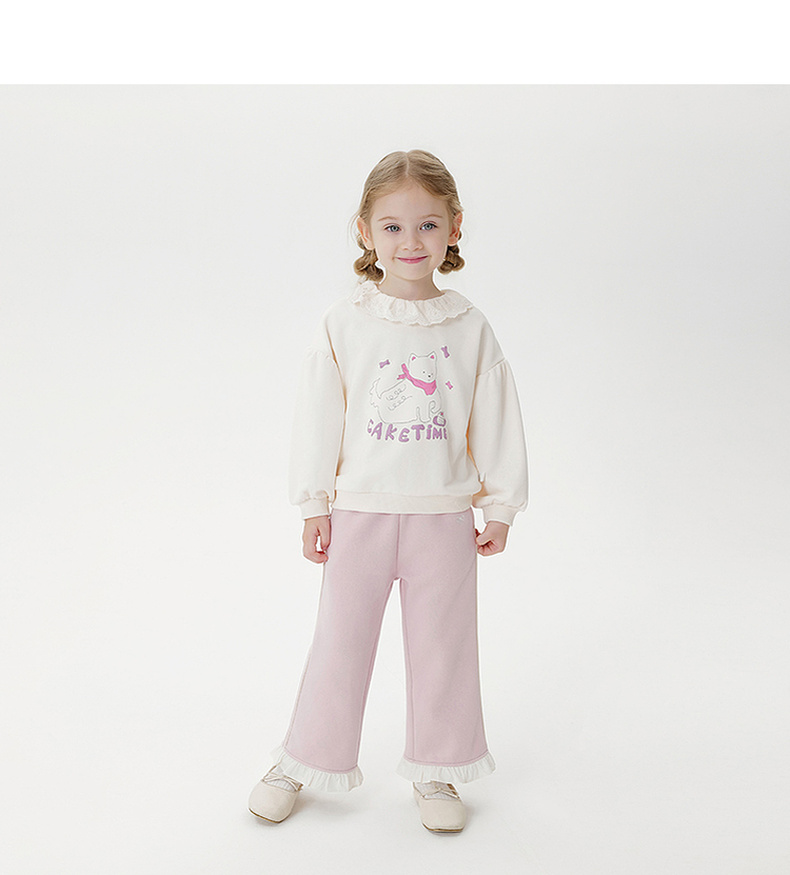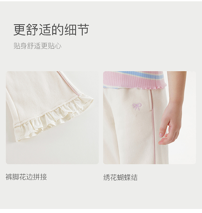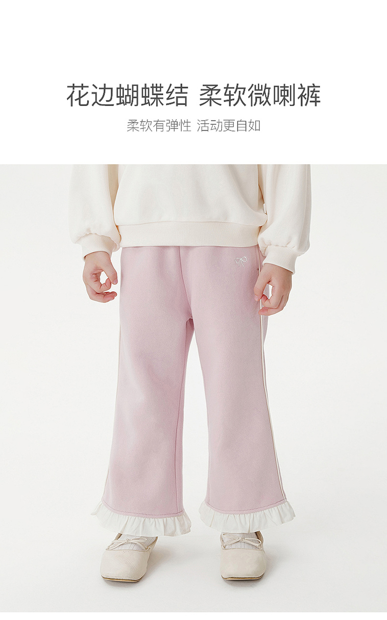 马克珍妮女童花边蝴蝶结柔软微喇裤2025年秋装新款551319
