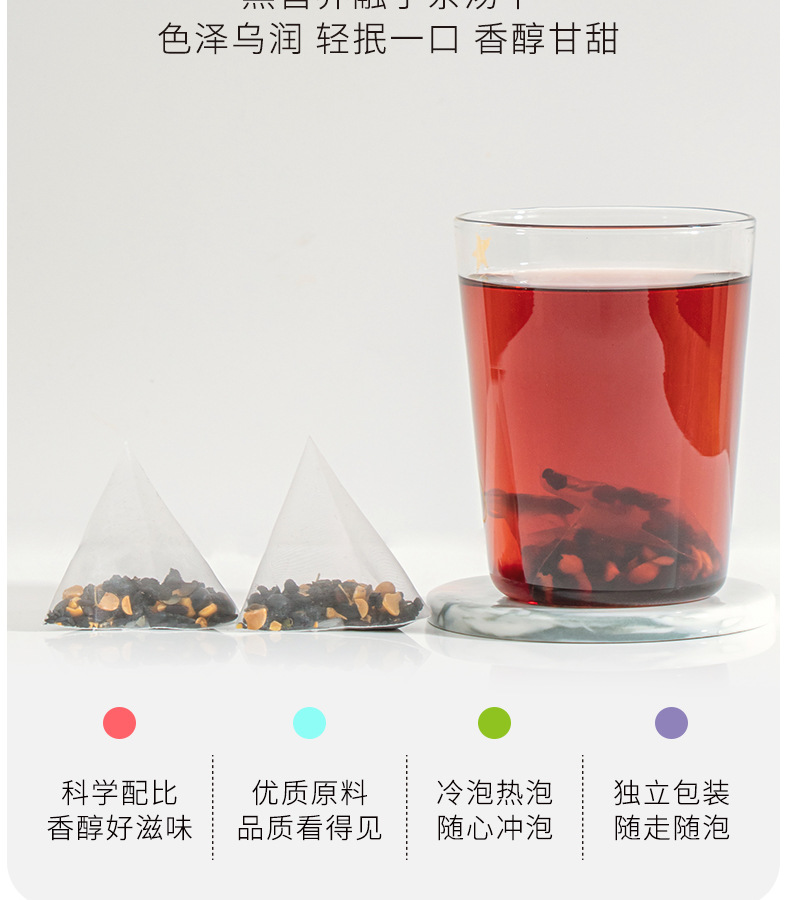 【悦黑靓茶❗️润养免煮五黑茶】甄选黑米、黑豆、桑葚、黑枸杞、黑芝麻!真材实料,以黑养黑,悦发滋养谷物袋泡茶包养健康
