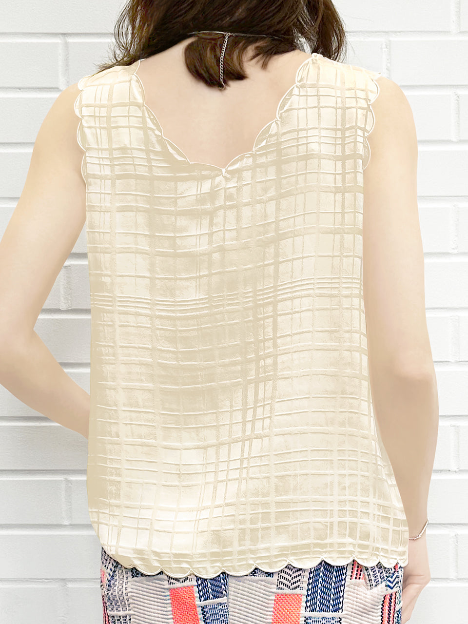 TYNVIE 深蓝色薄纱荷叶边无袖西装外套