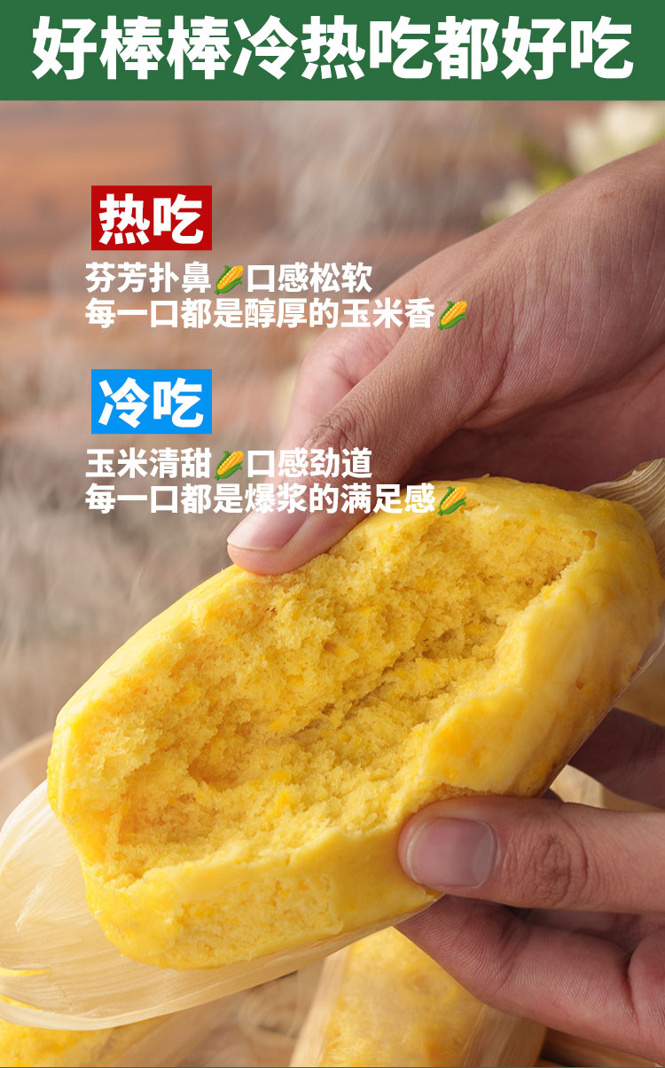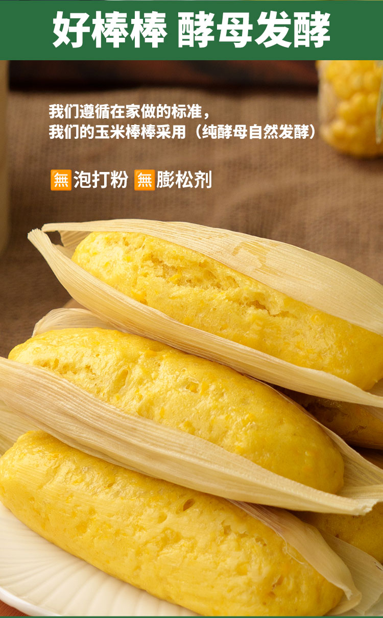 【甜玉米棒棒】精选鲜玉米和有机面粉,保留玉米颗粒,玉米叶垫底蒸制,配料干净【AA】