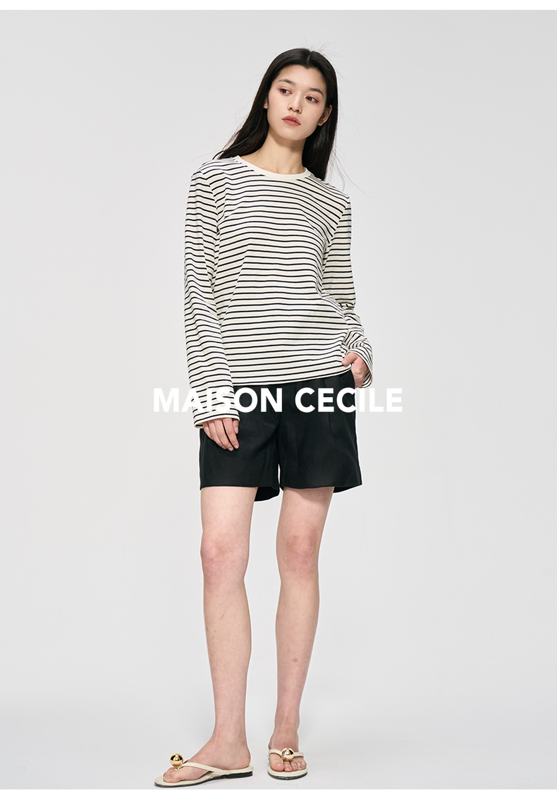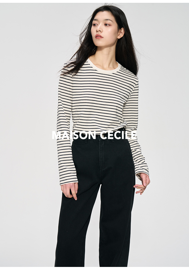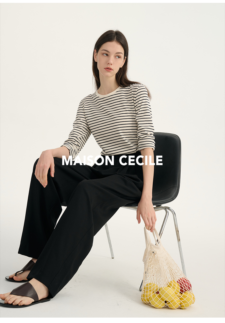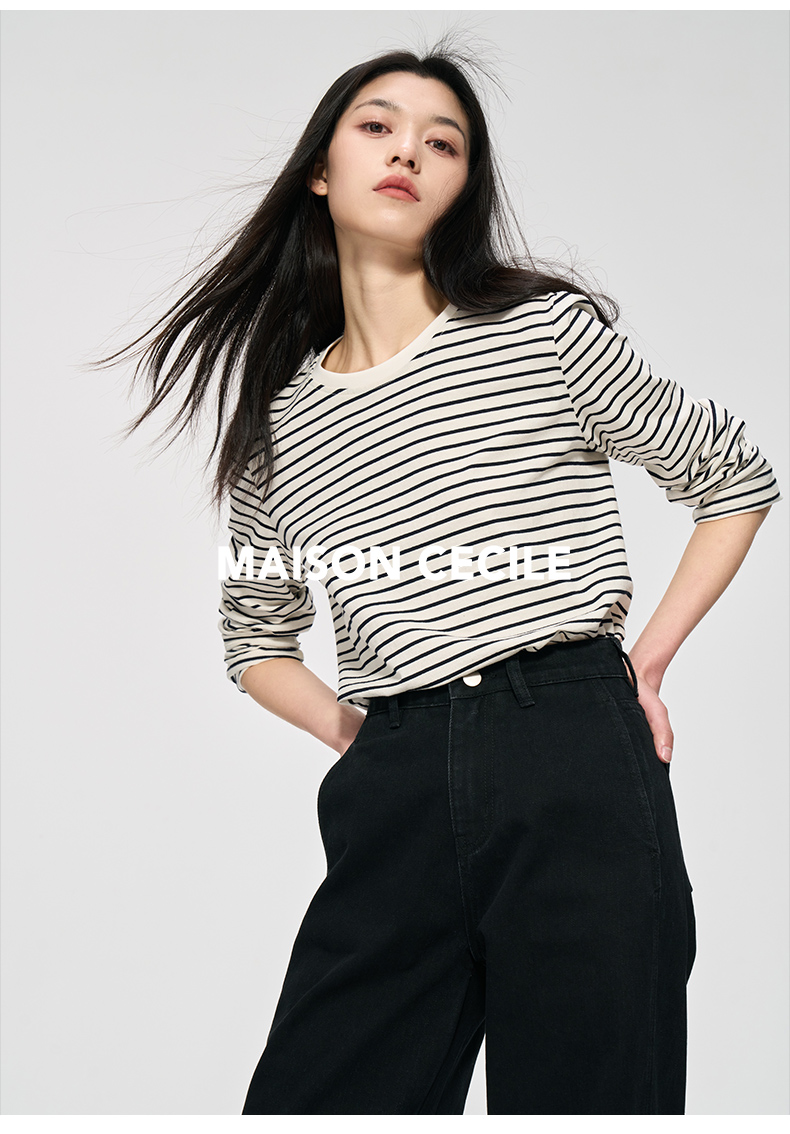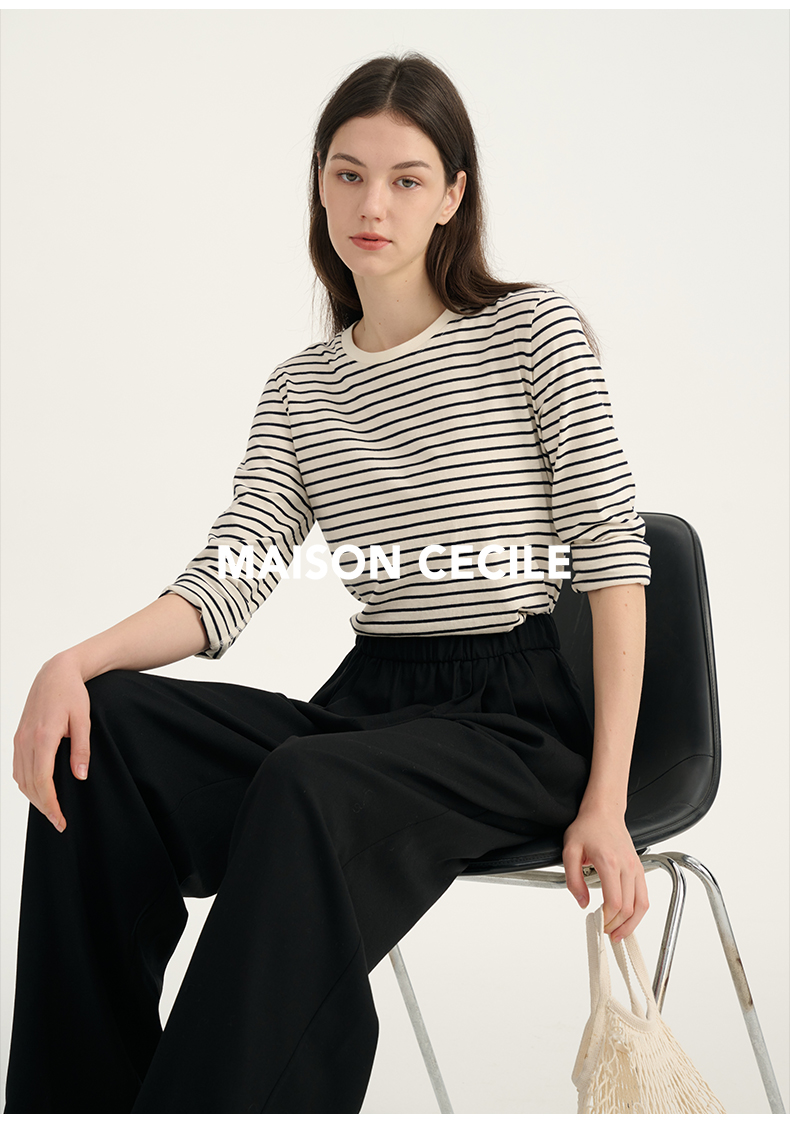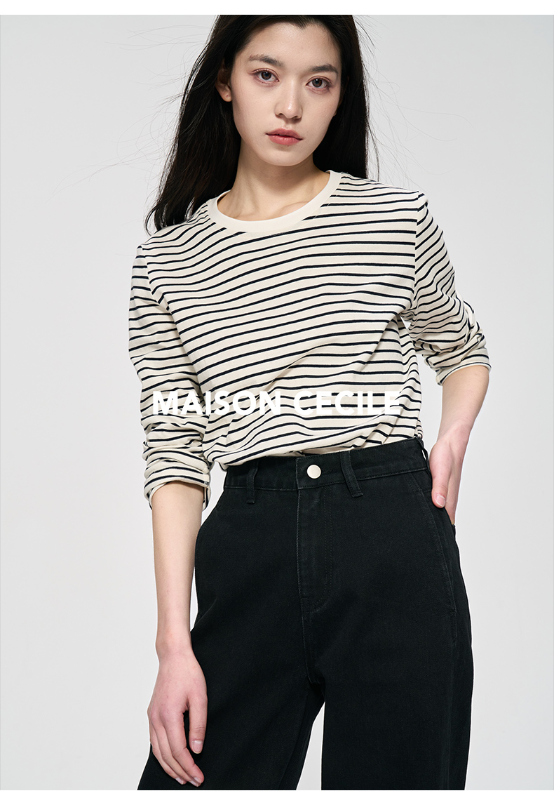 MAISON CECILE经典法式黑白条纹全棉长袖上衣