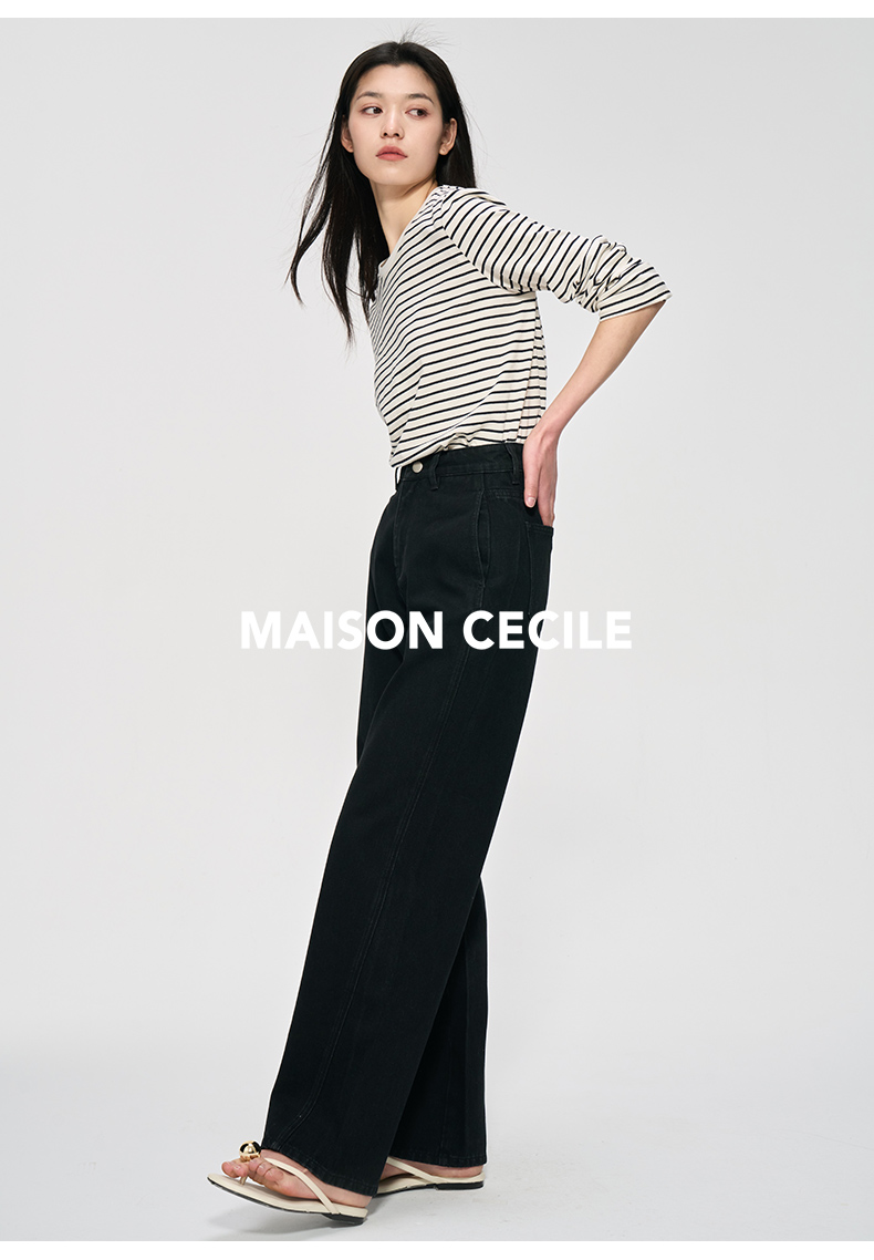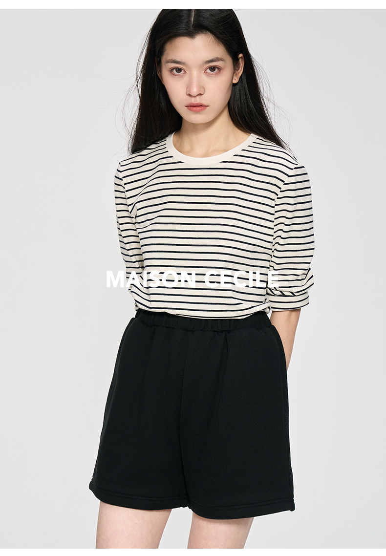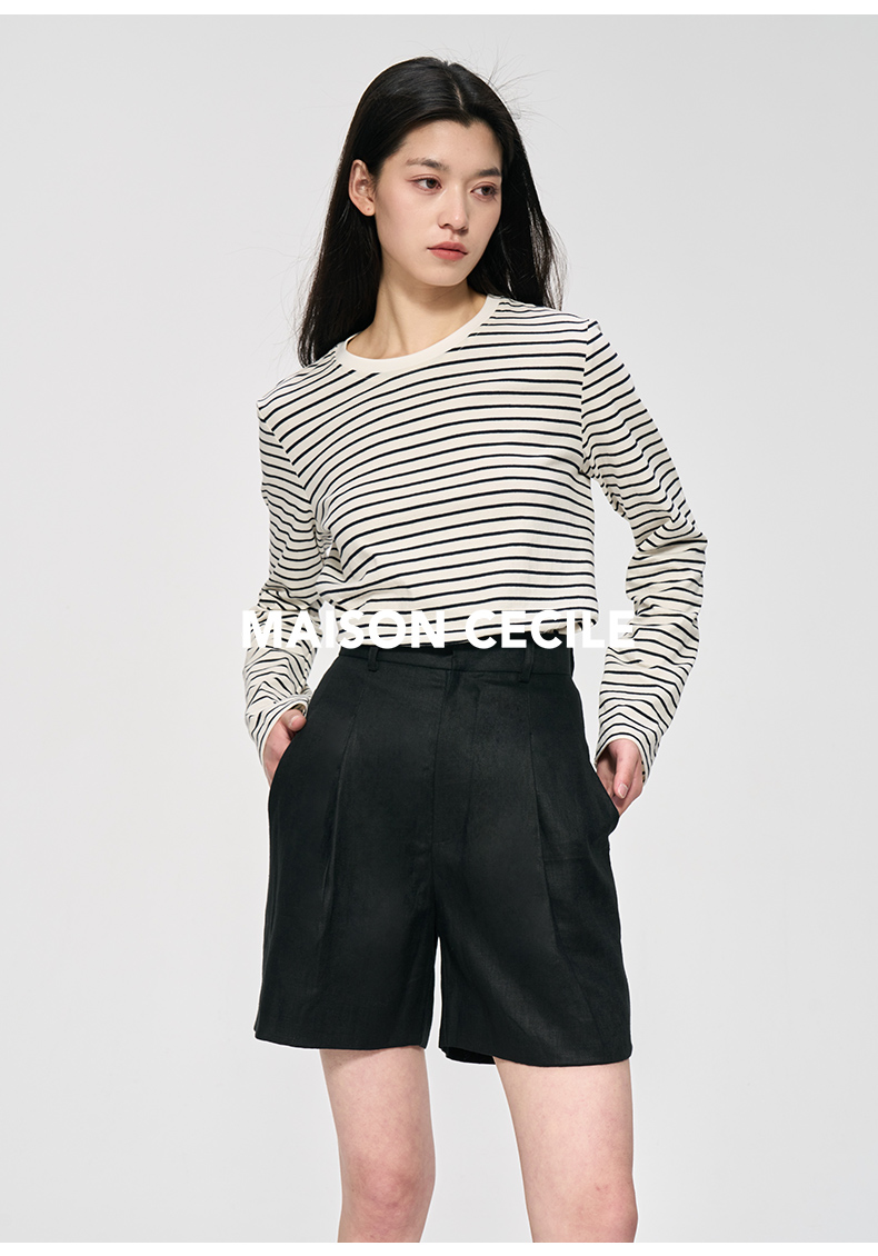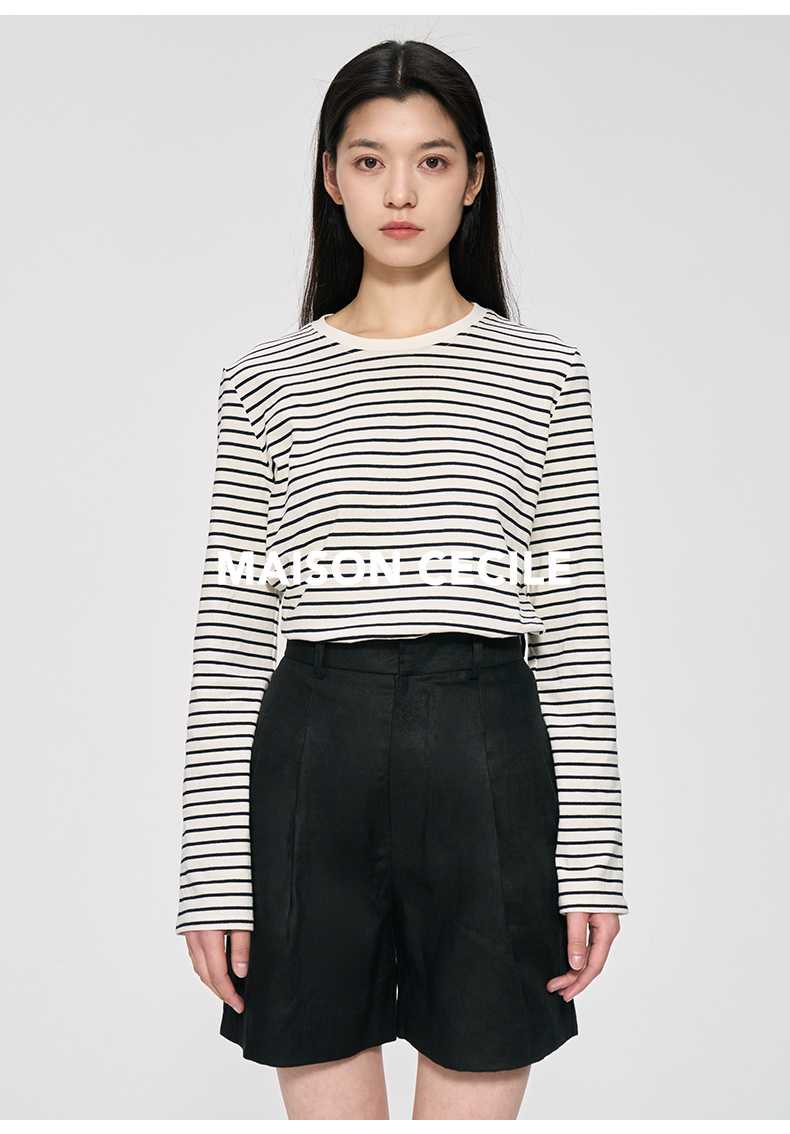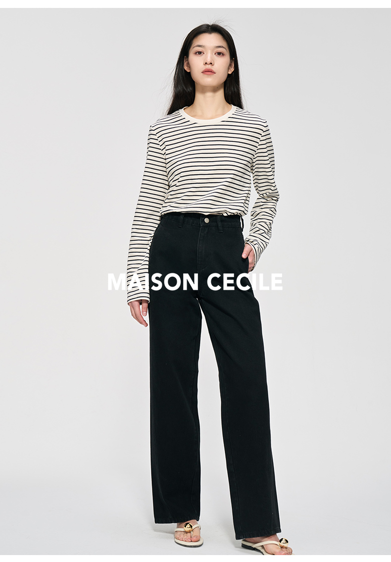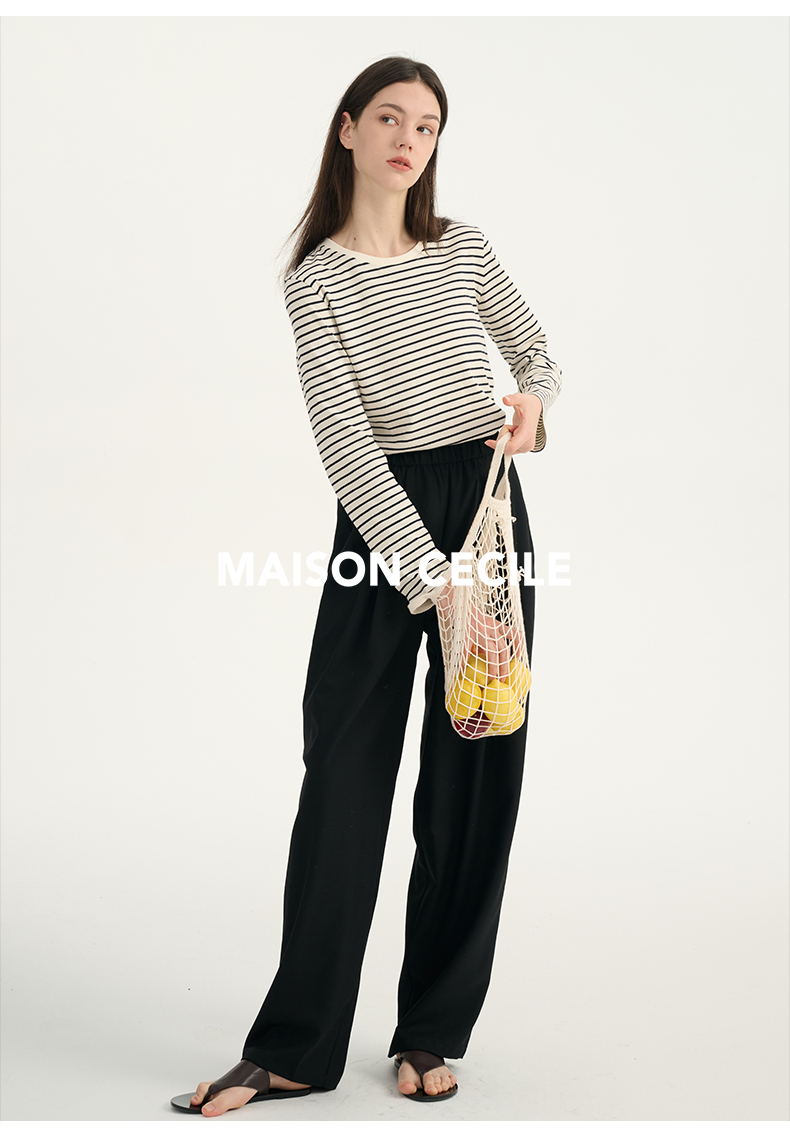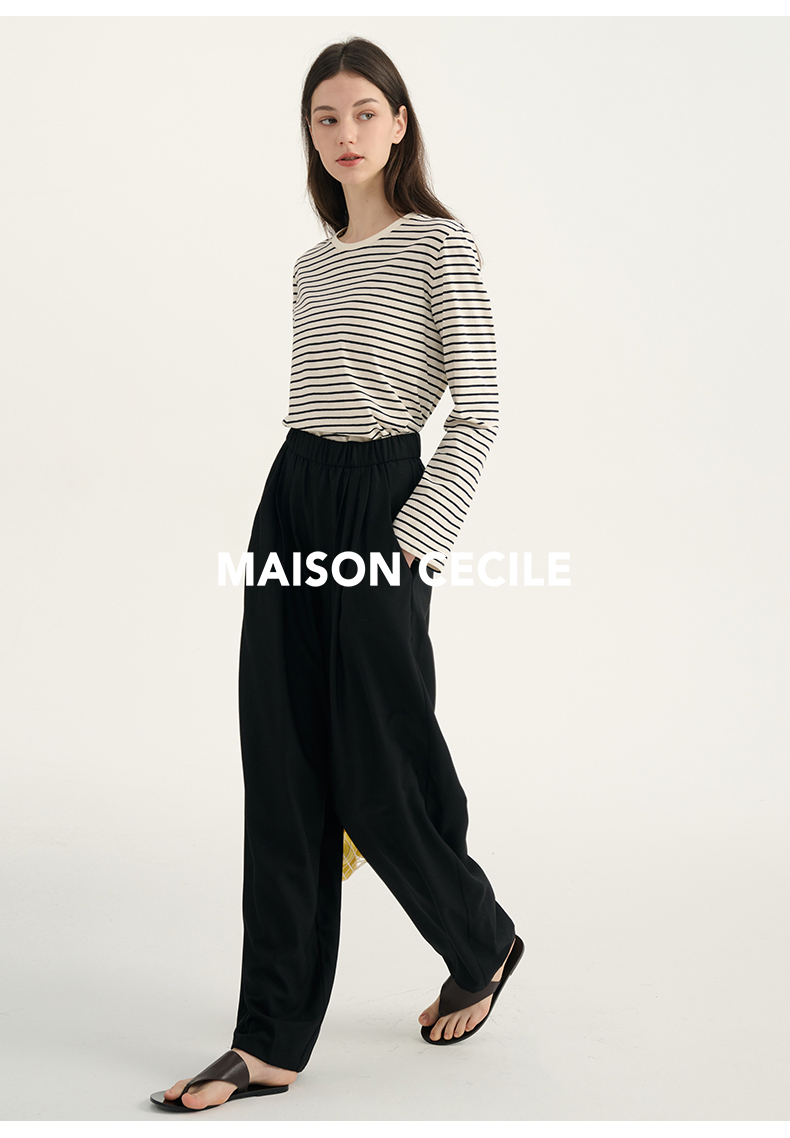 MAISON CECILE经典法式黑白条纹全棉长袖上衣