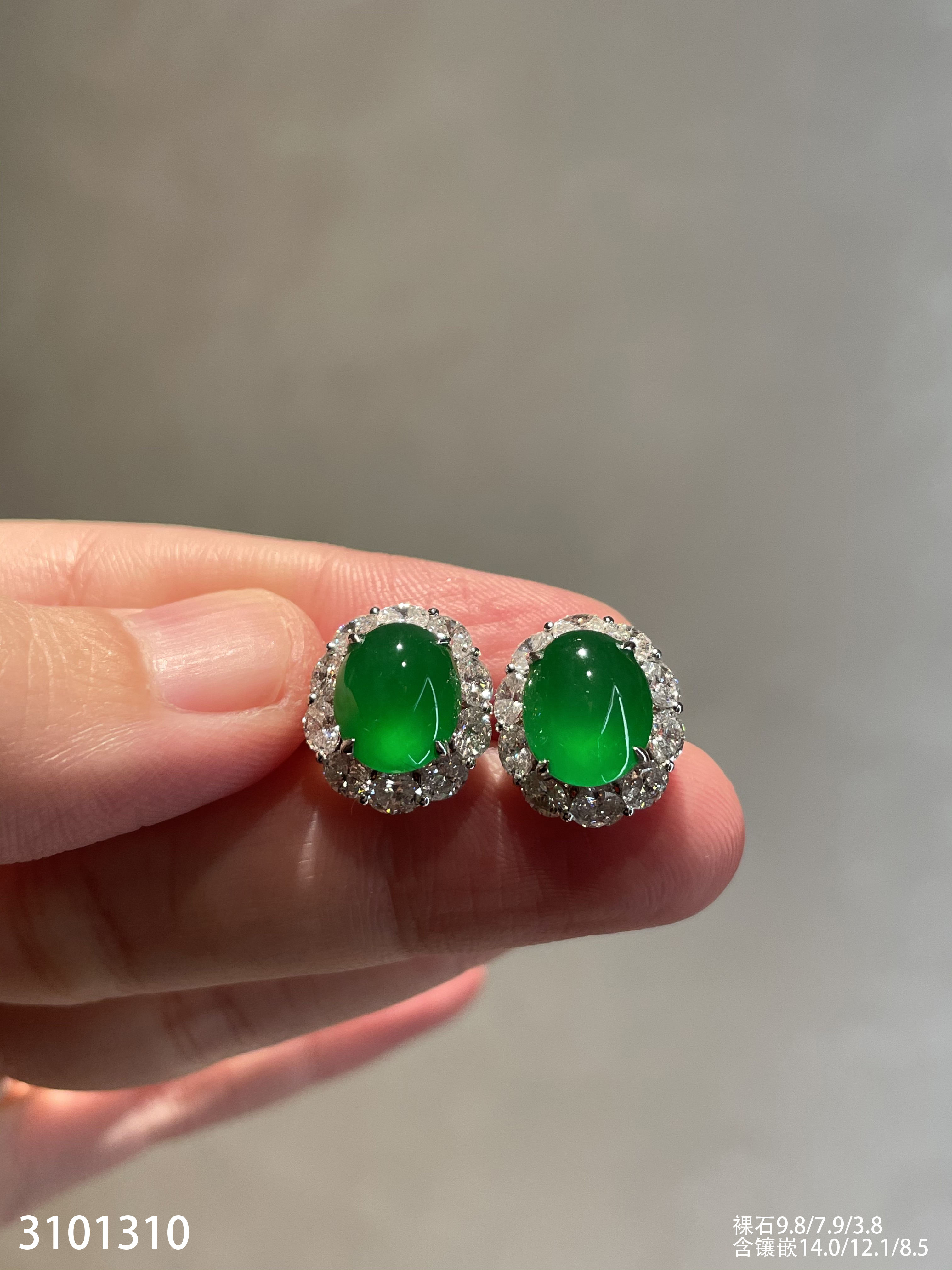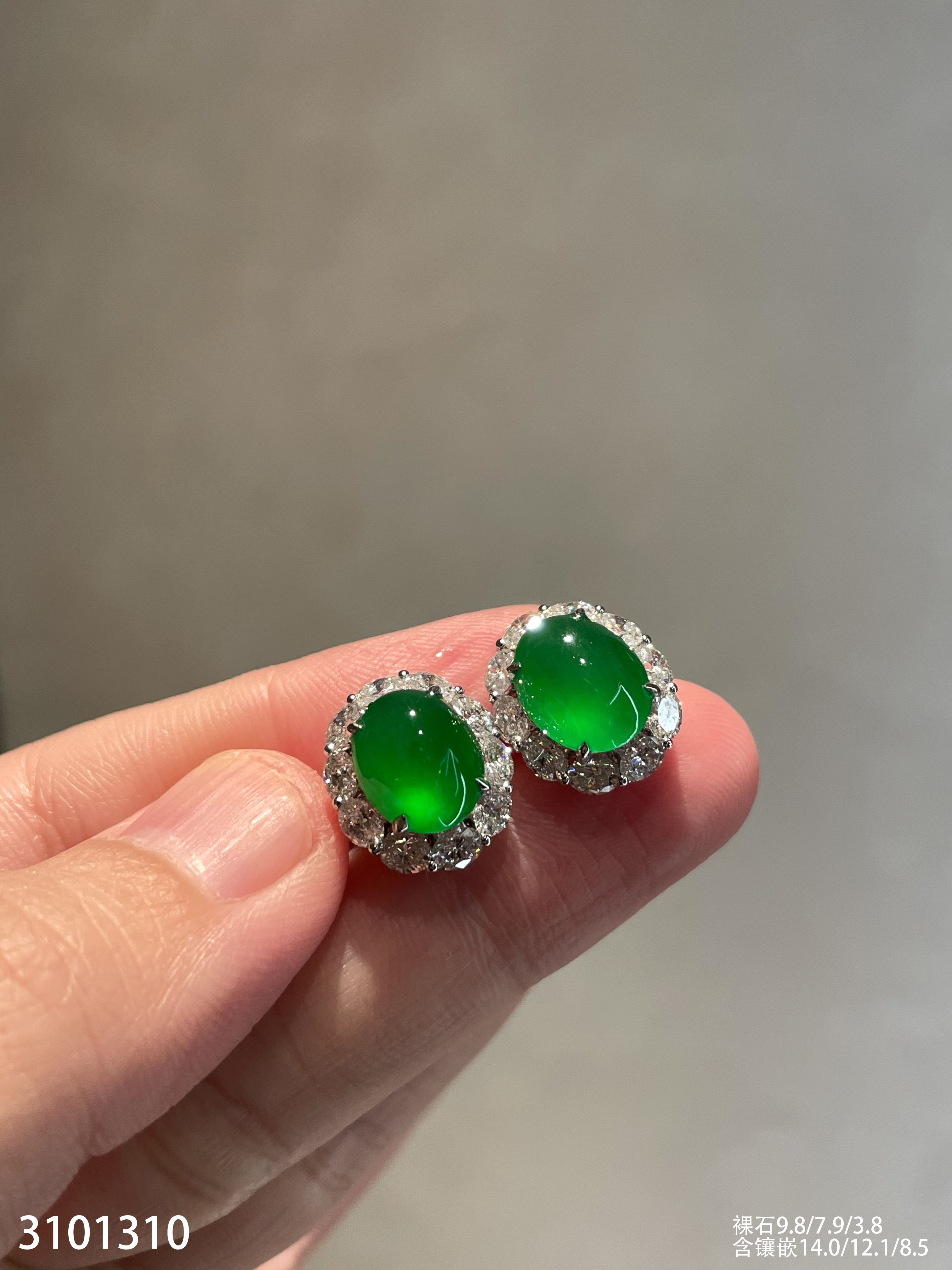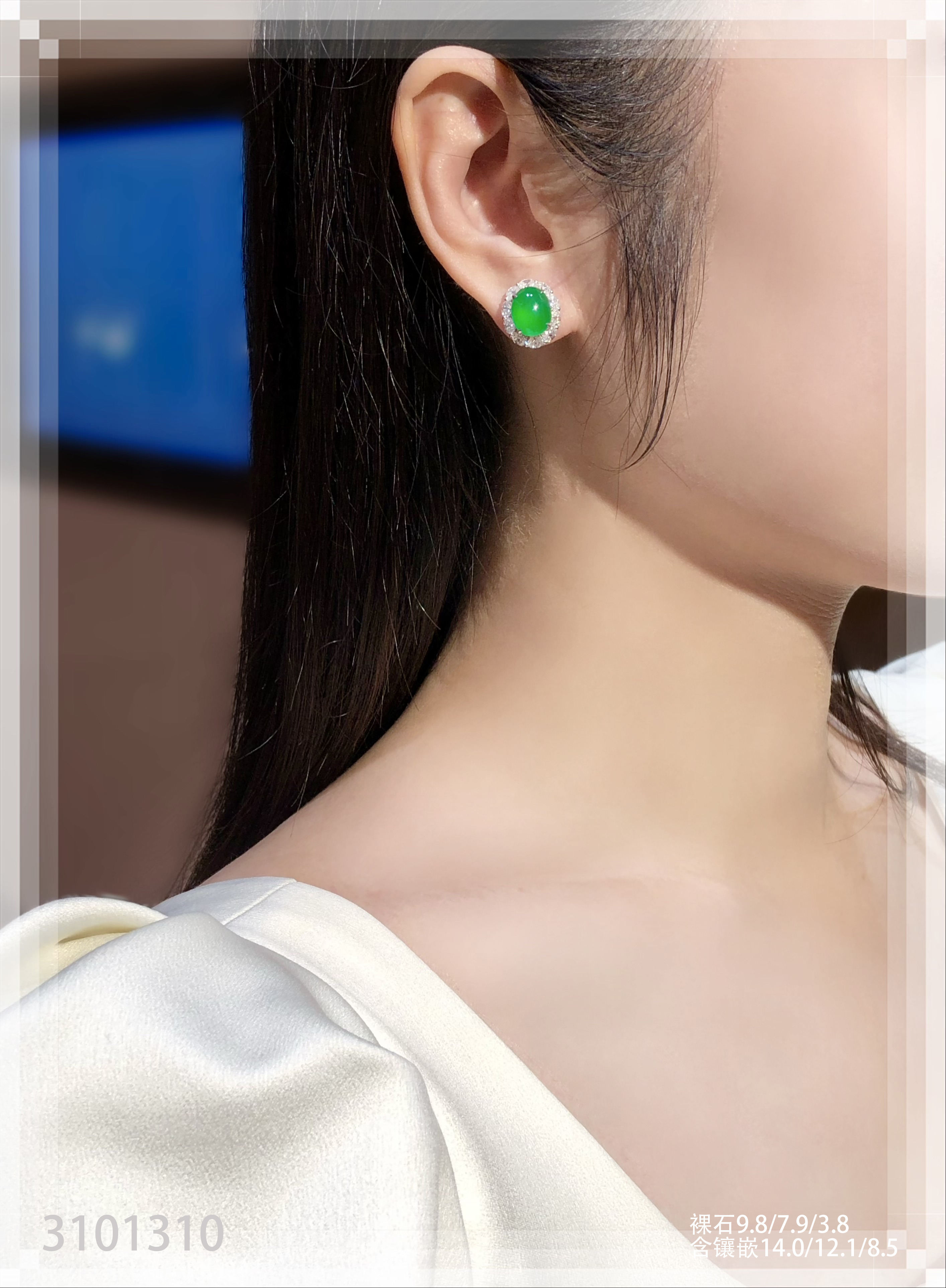 玻璃种艳绿蛋面耳钉【3101310】具体价格微信咨询
