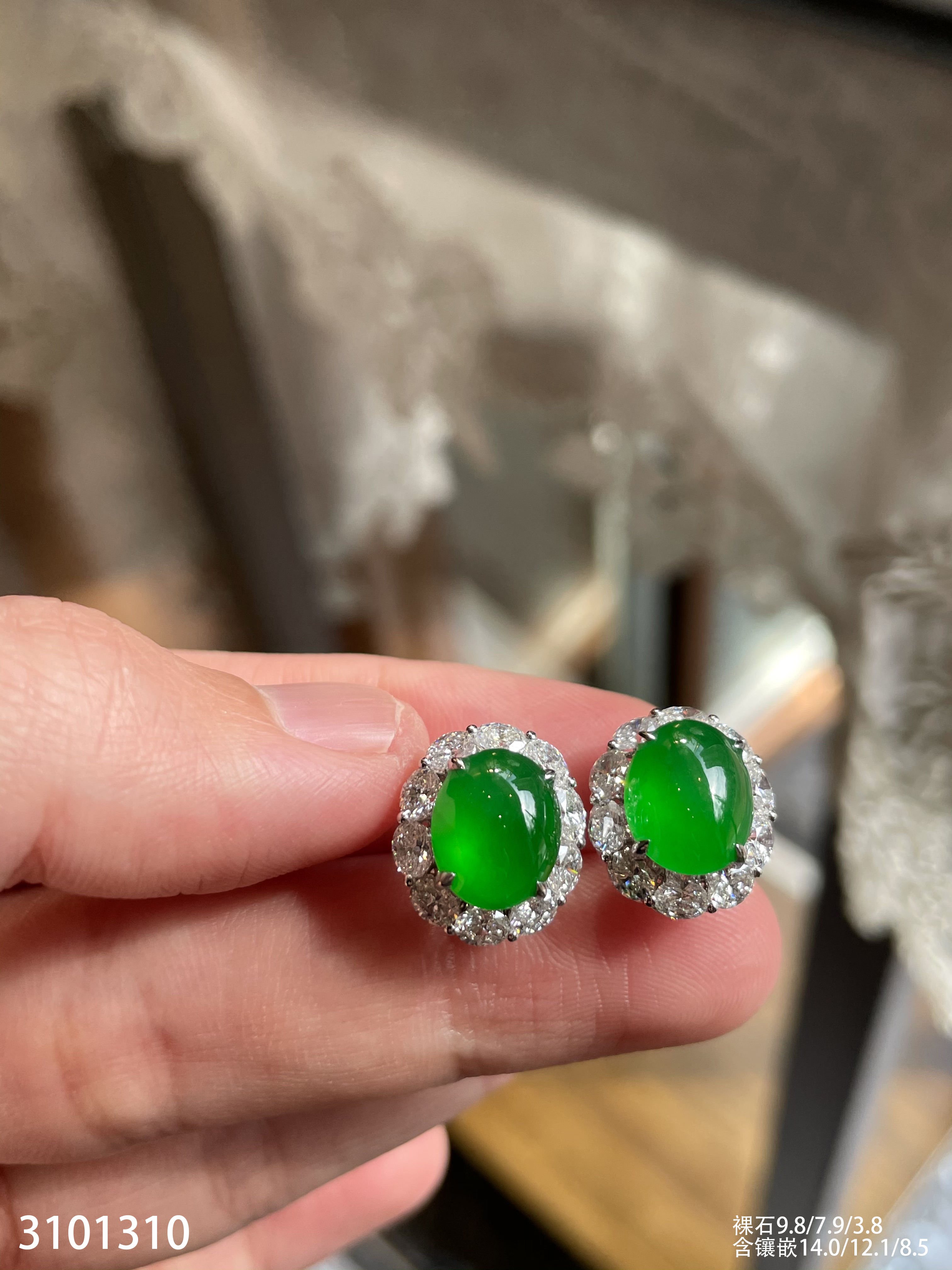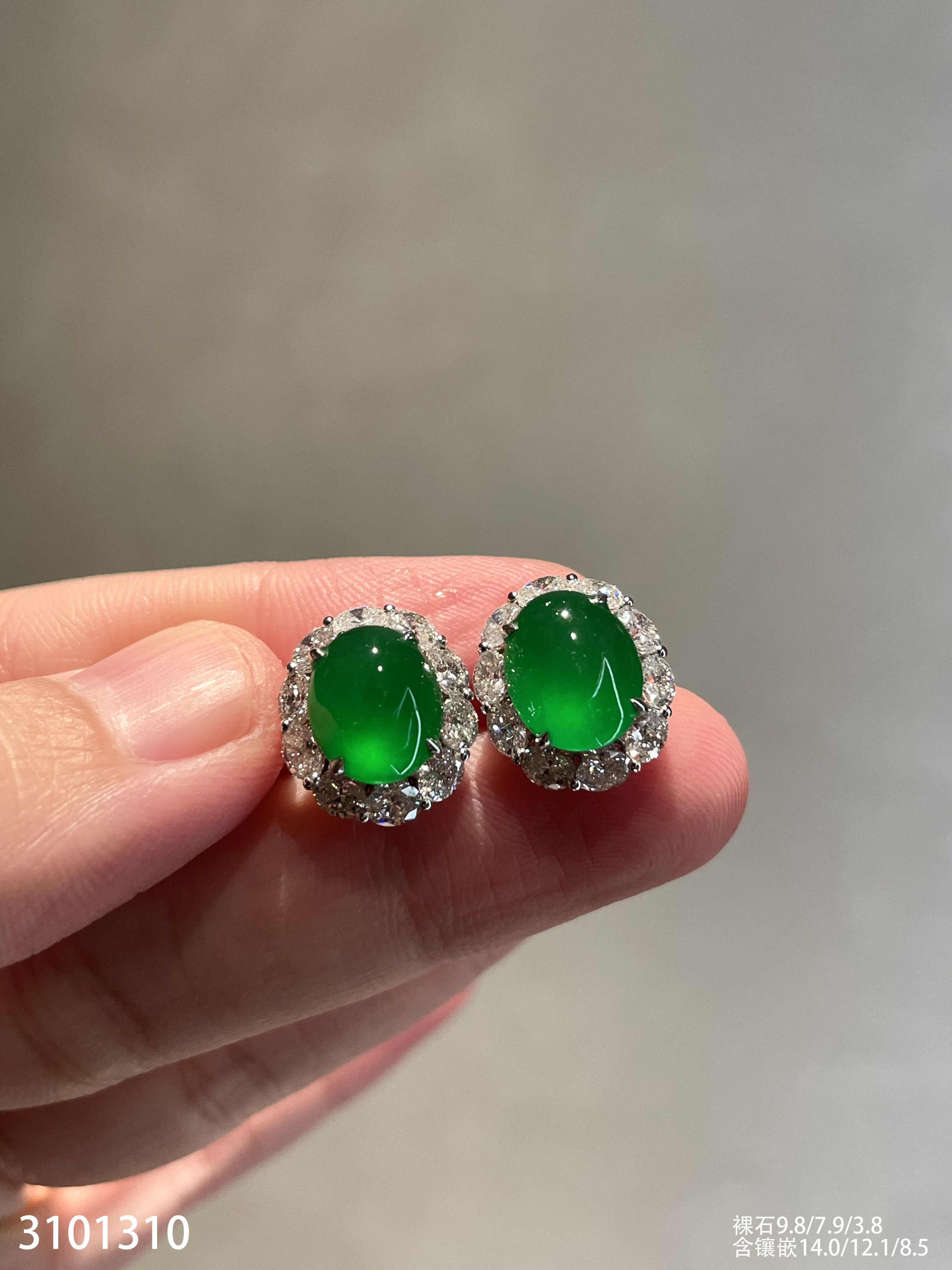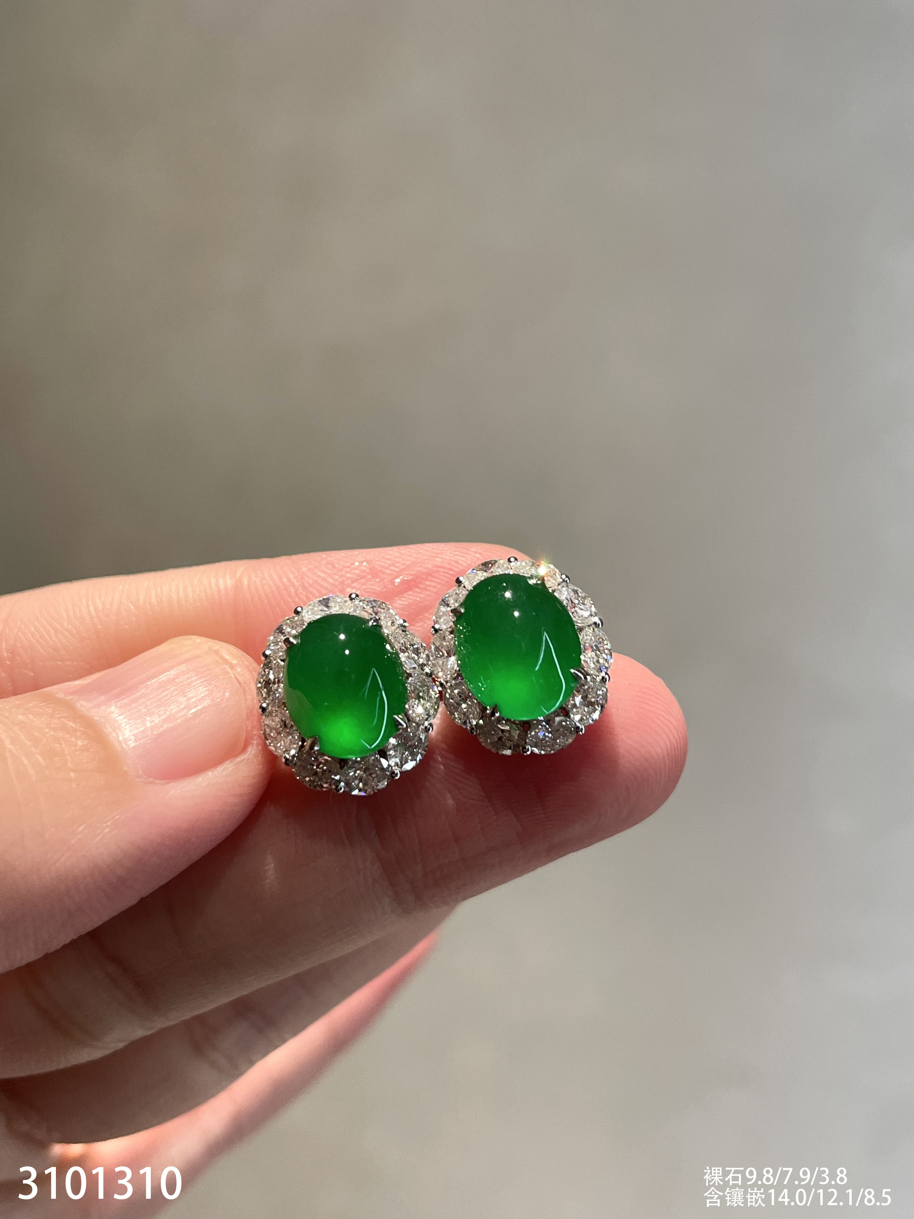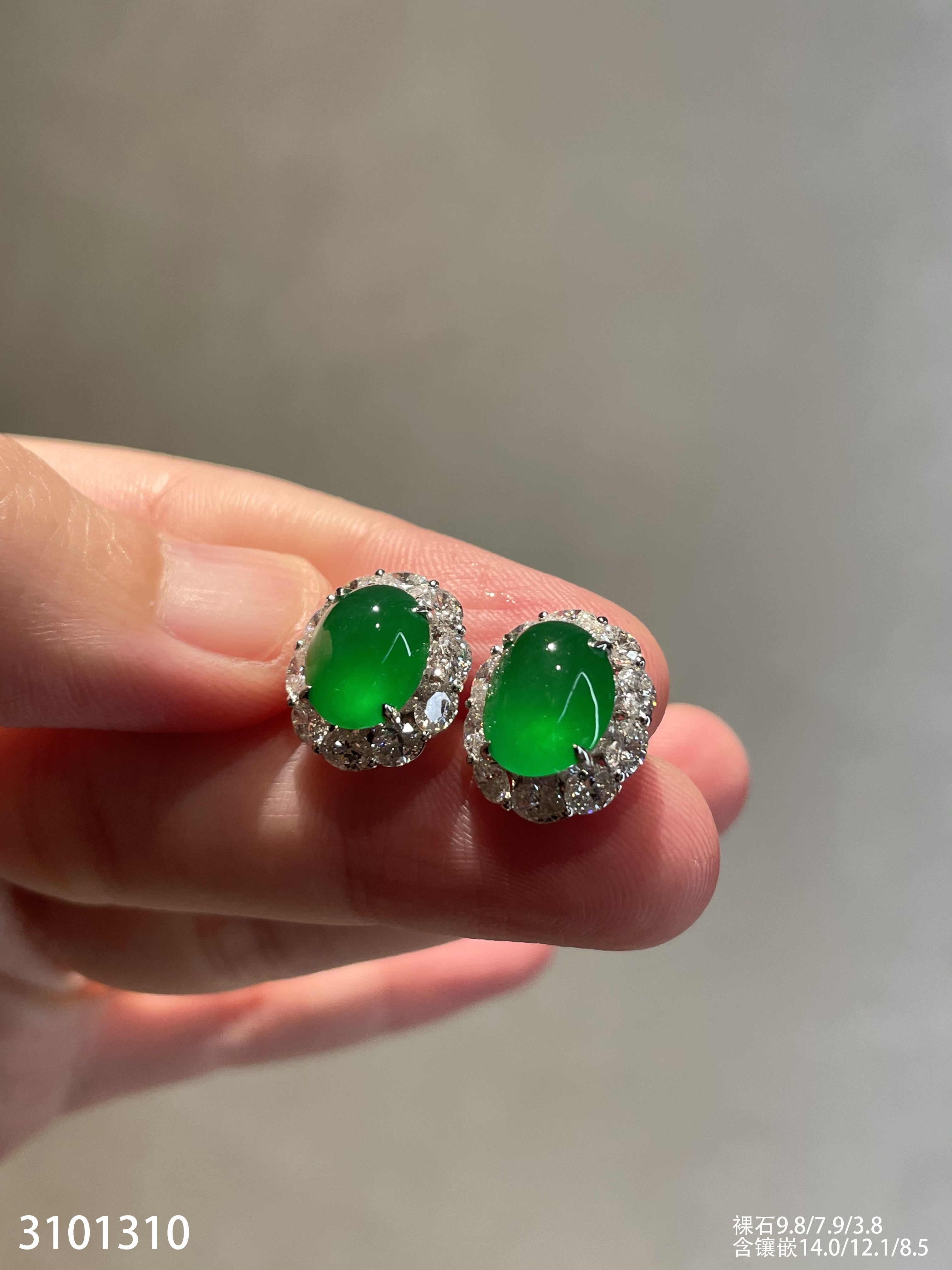 玻璃种艳绿蛋面耳钉【3101310】具体价格微信咨询