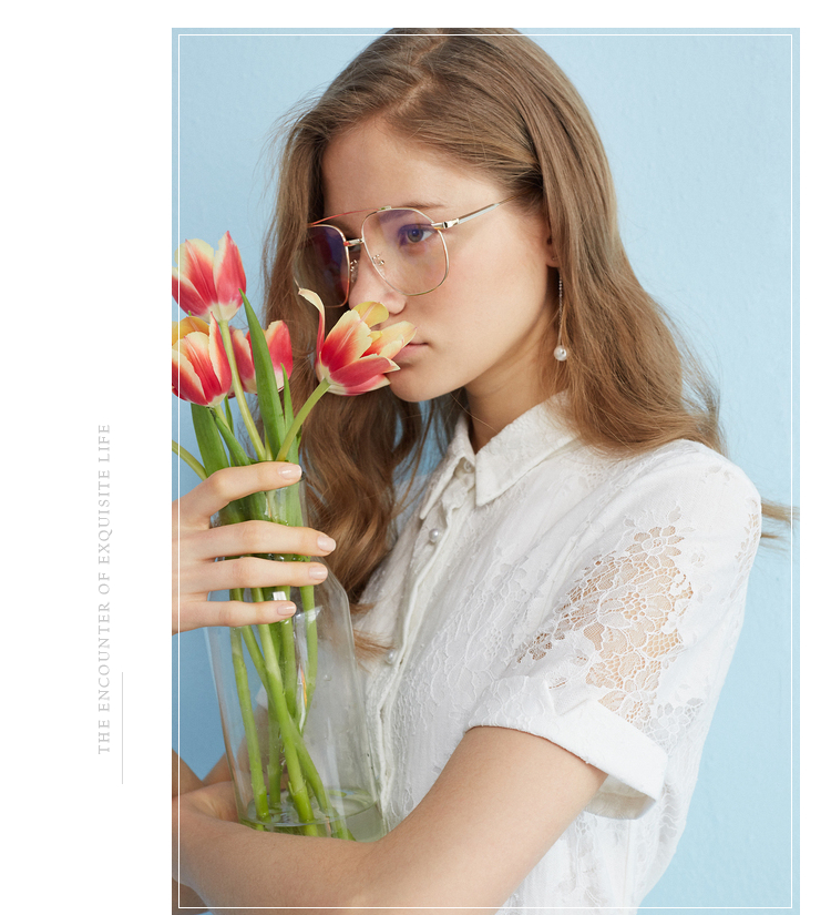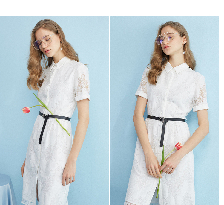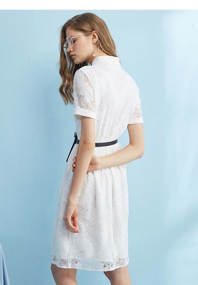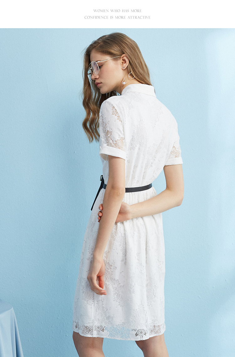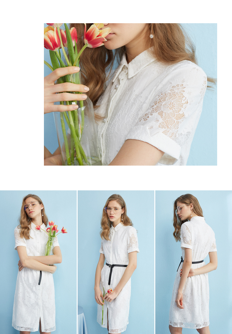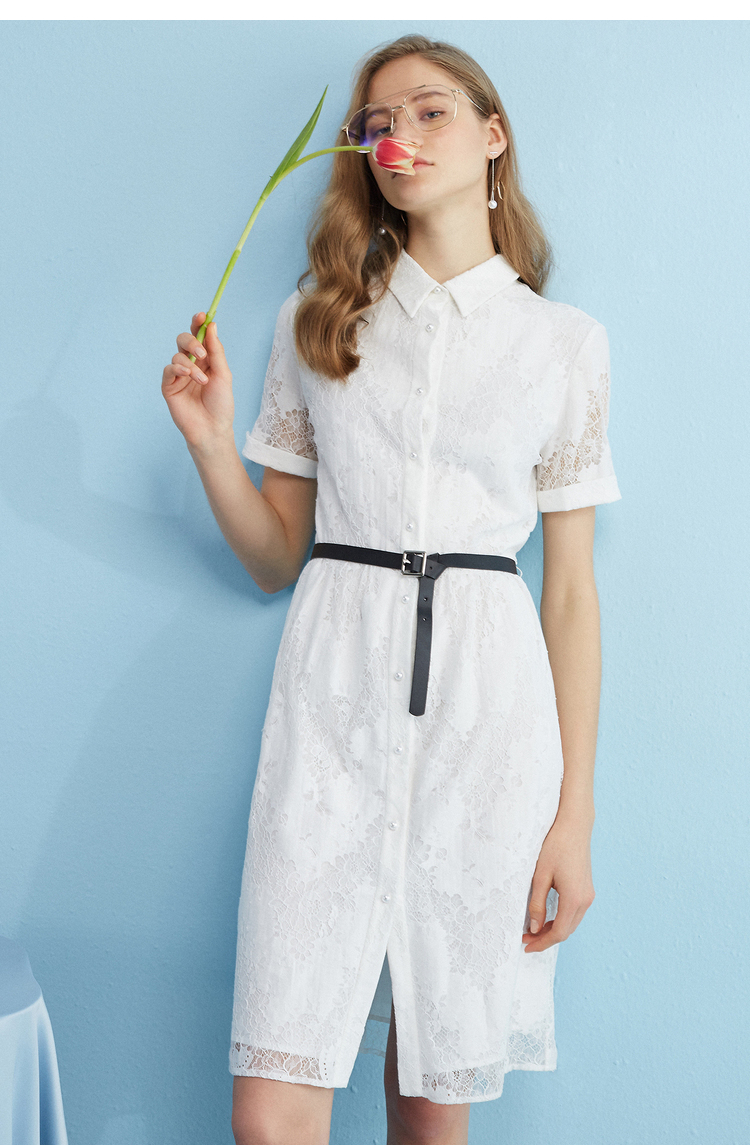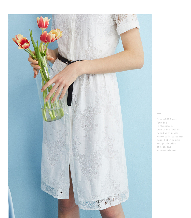 【孤品捡漏】【不退不换】【瑕疵品不发货】欧芮儿2018夏镂空绣花衬衫裙女白色蕾丝连衣裙女中长款