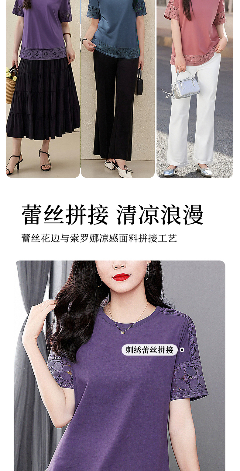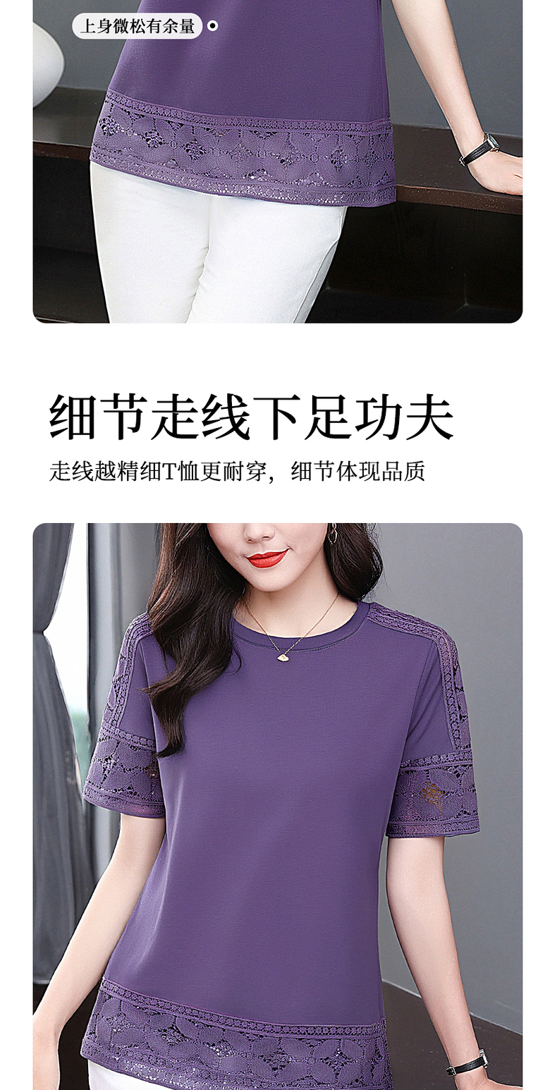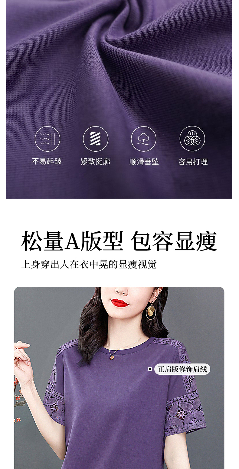 圆领短袖女t恤夏季2025新款胖mm大码女装宽松紫色女士上衣高级感