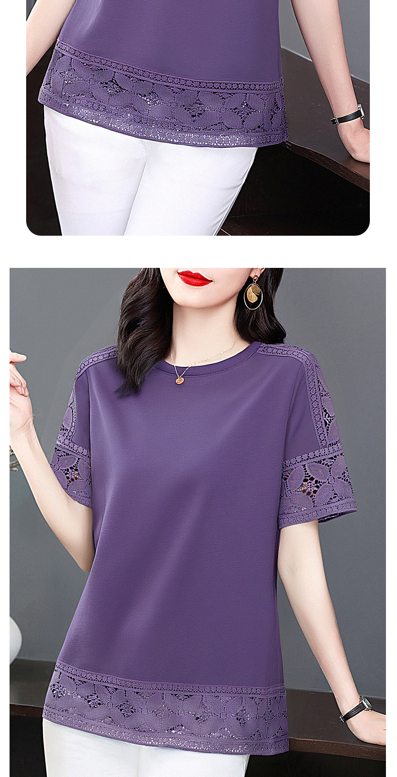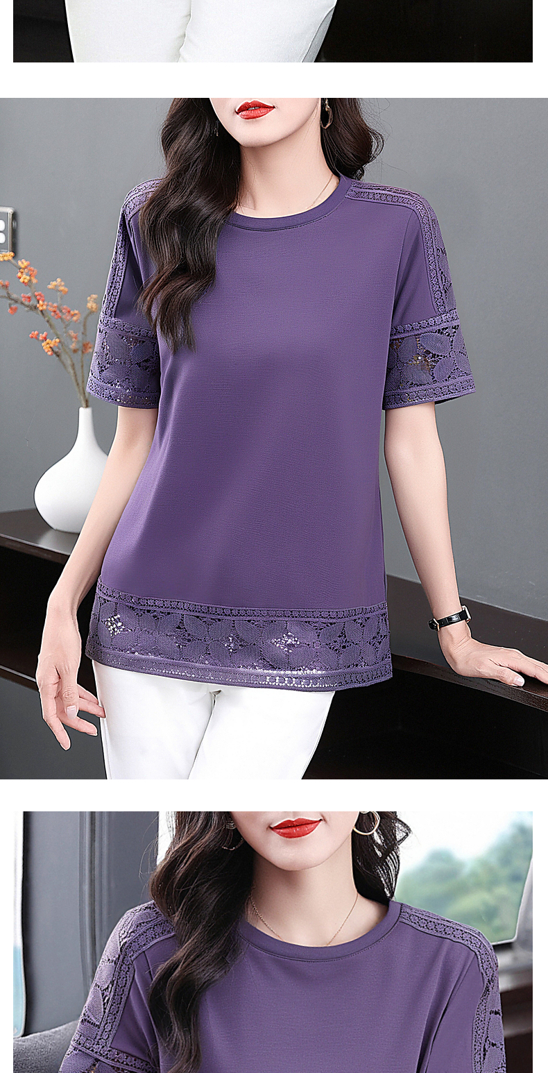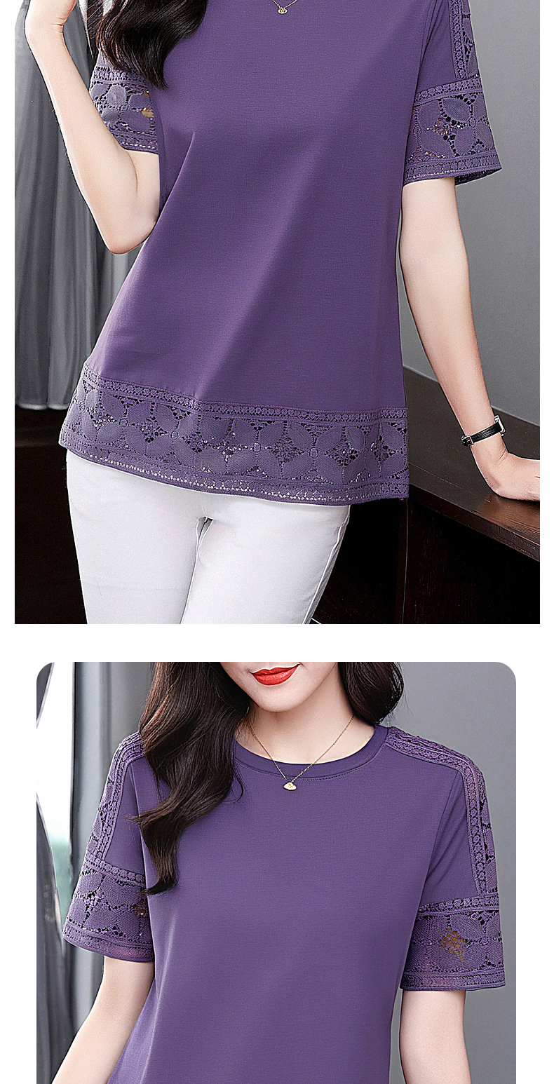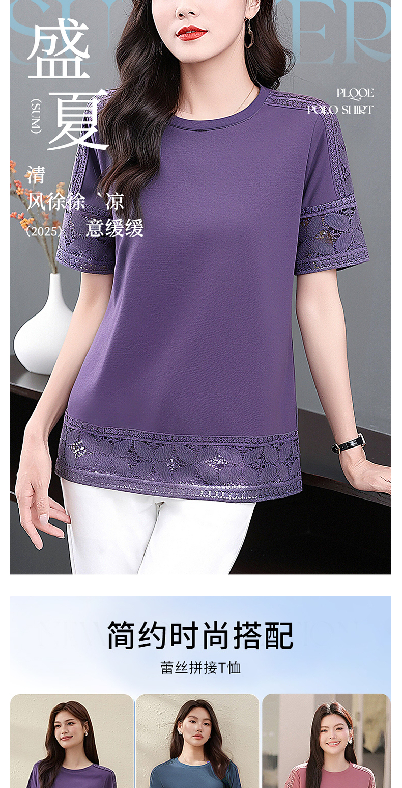 圆领短袖女t恤夏季2025新款胖mm大码女装宽松紫色女士上衣高级感