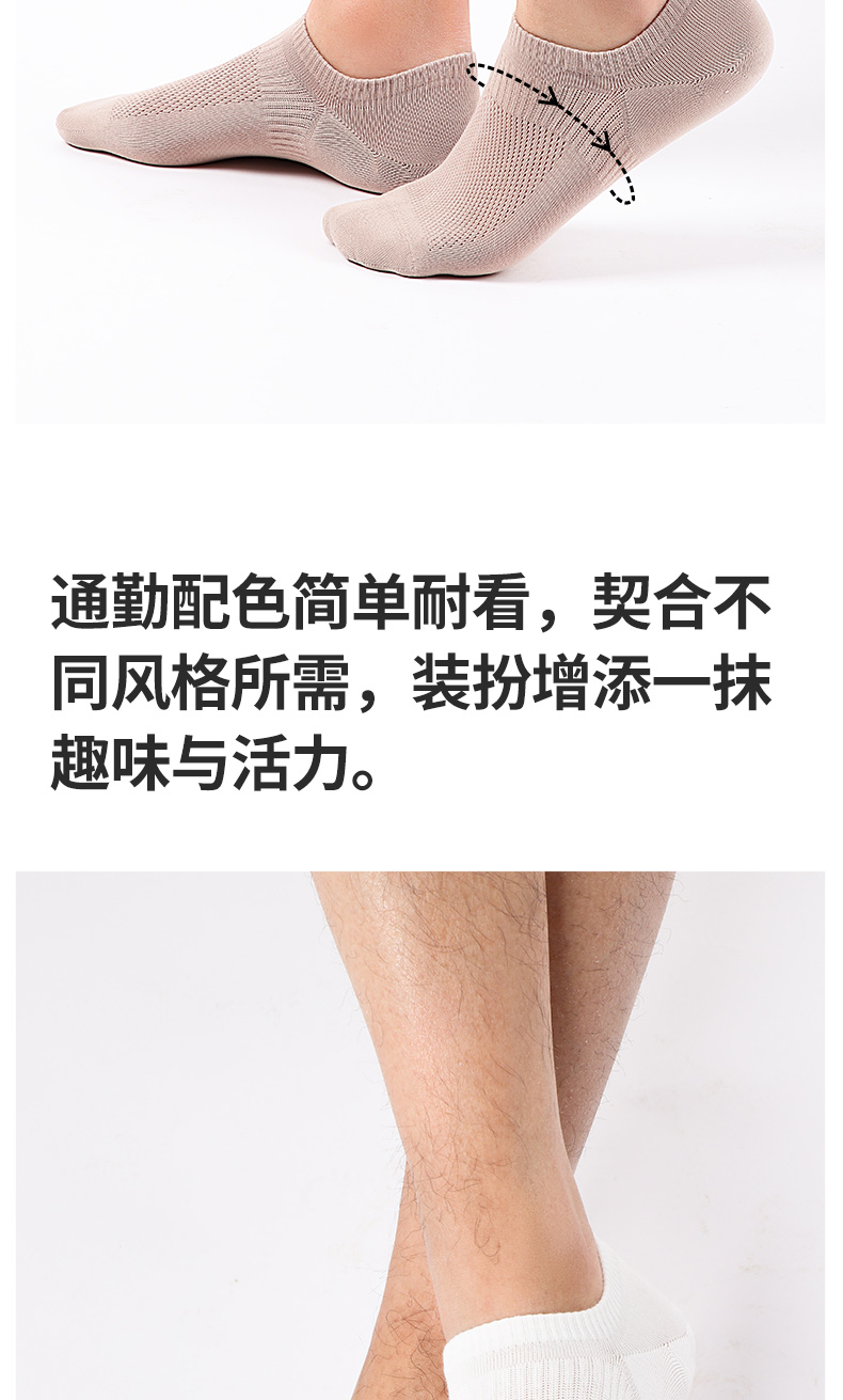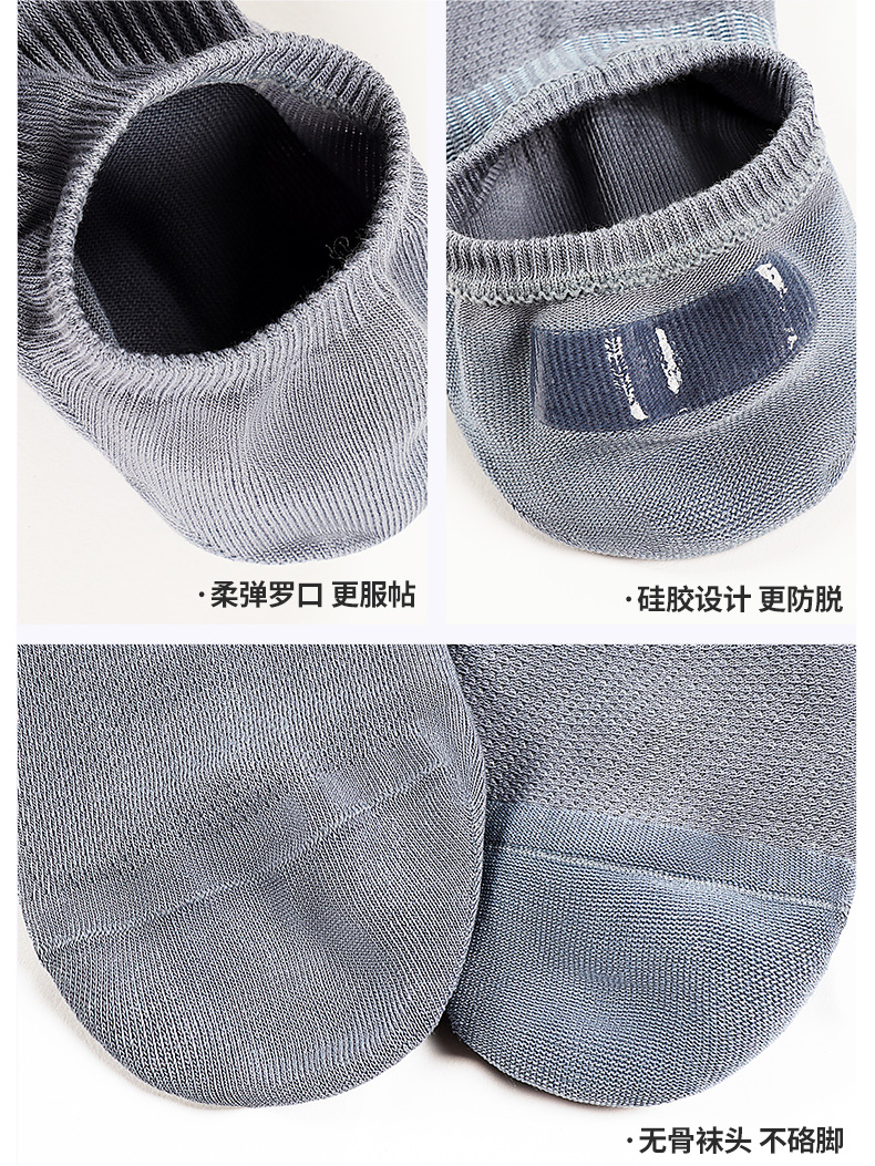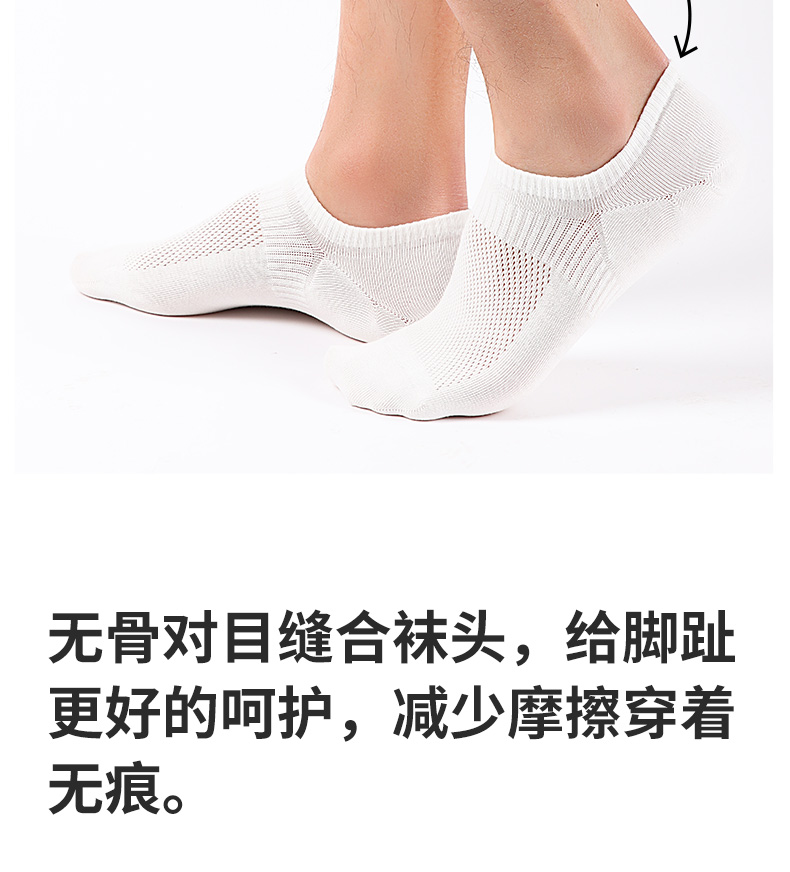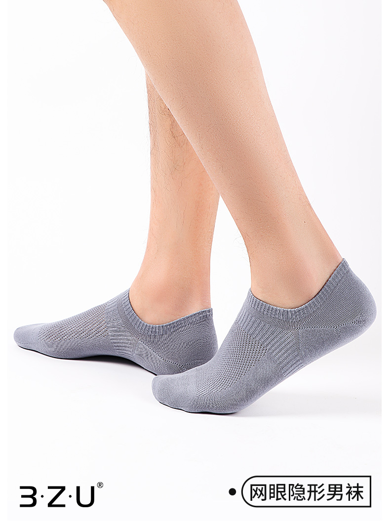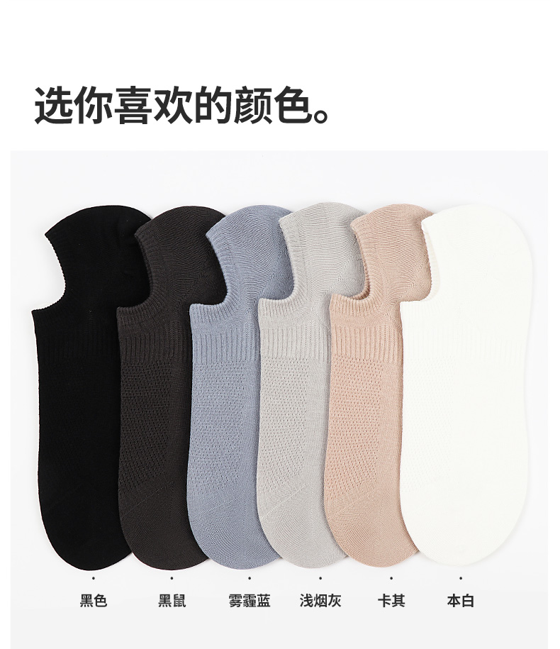5双 足装秀高棉男士网眼隐形袜春夏无骨防臭高弹纯色吸汗透气短袜