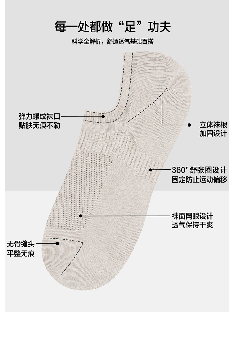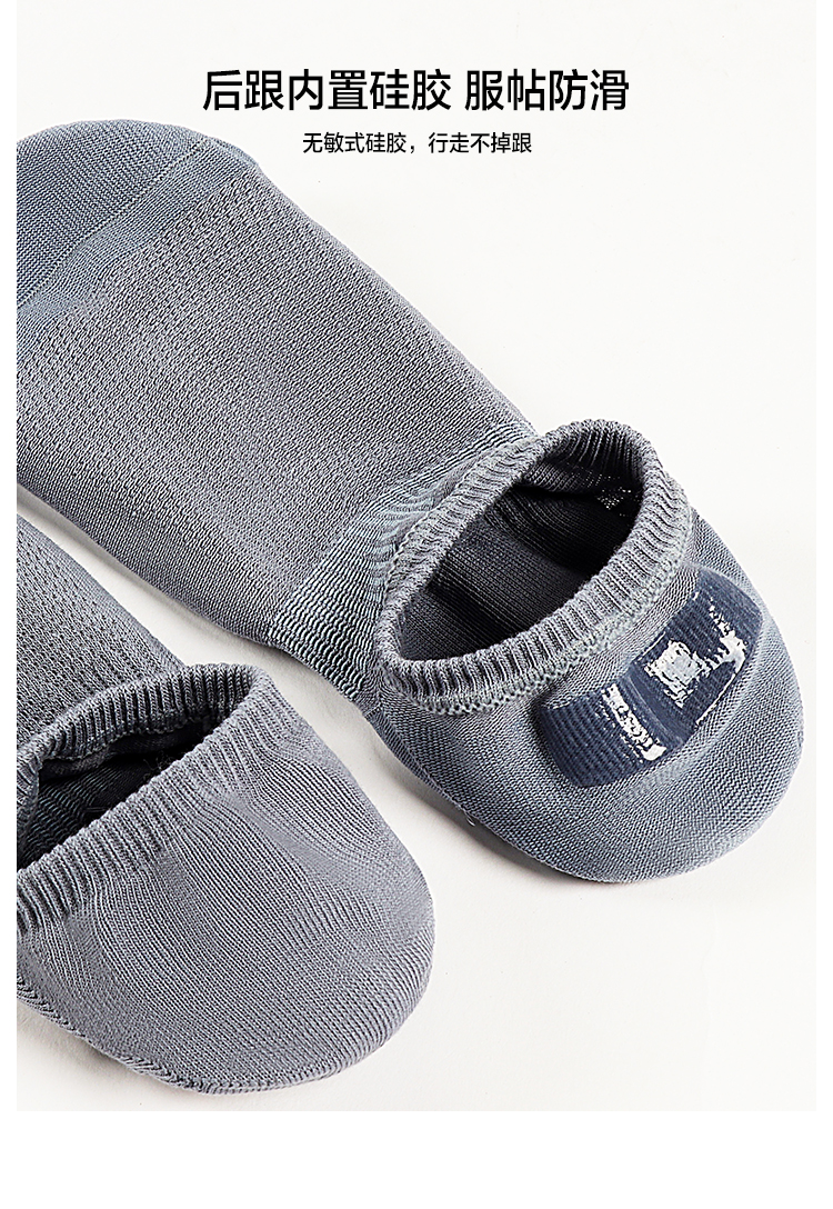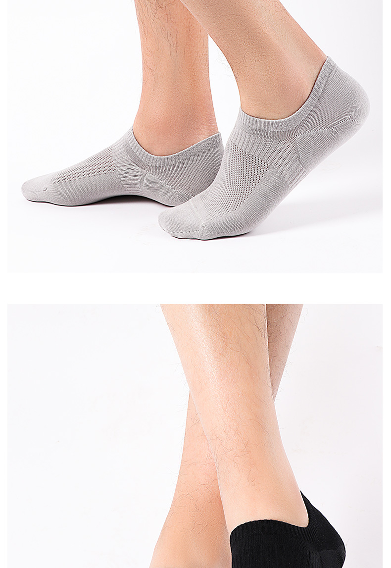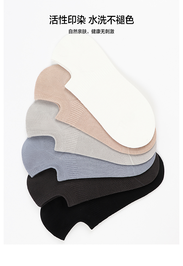 5双 足装秀高棉男士网眼隐形袜春夏无骨防臭高弹纯色吸汗透气短袜