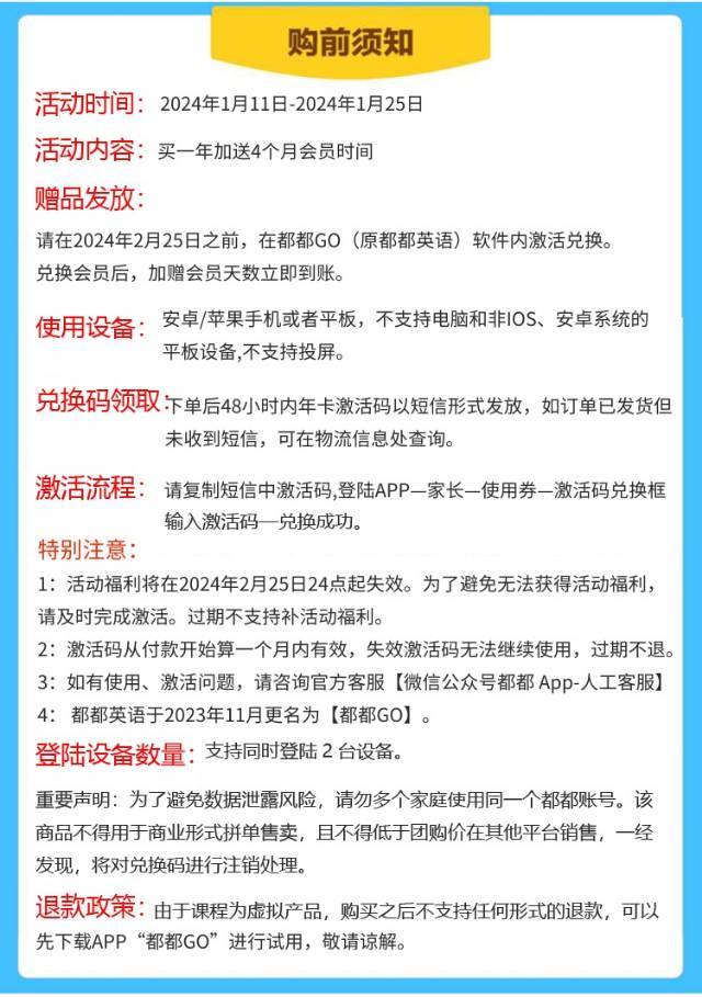 一年卡 加赠 4 个月都都英语会员时间,团购销售价 699 元