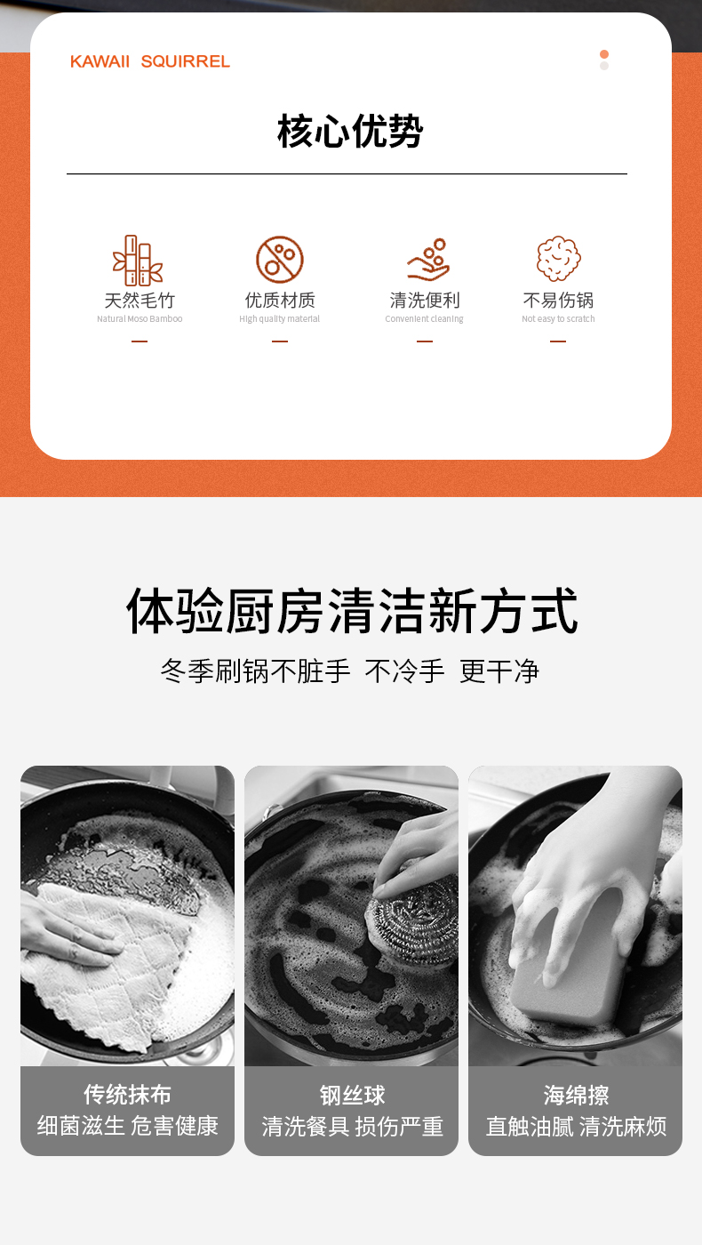 萌萌松鼠刷锅神器长柄锅刷家用厨房专用不伤锅刷碗洗锅刷