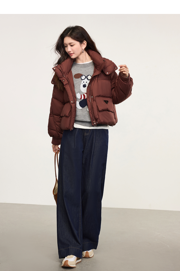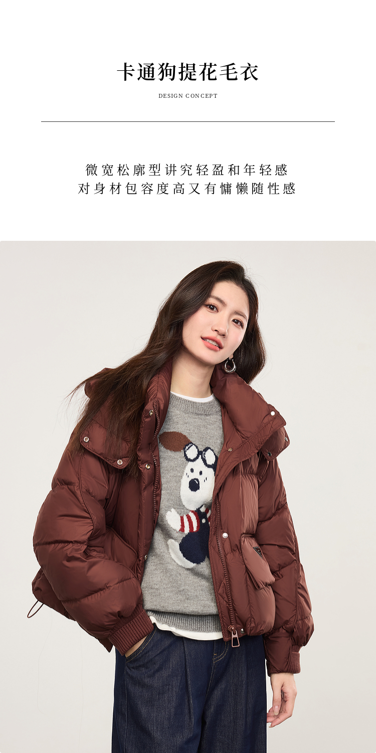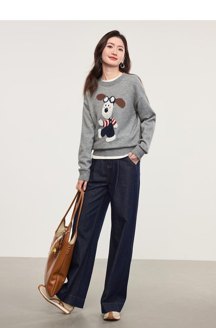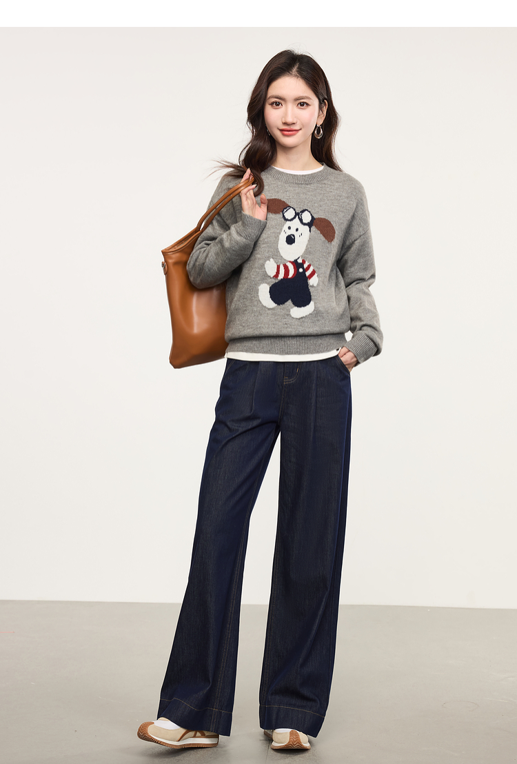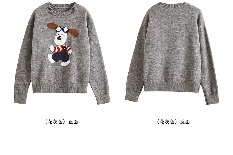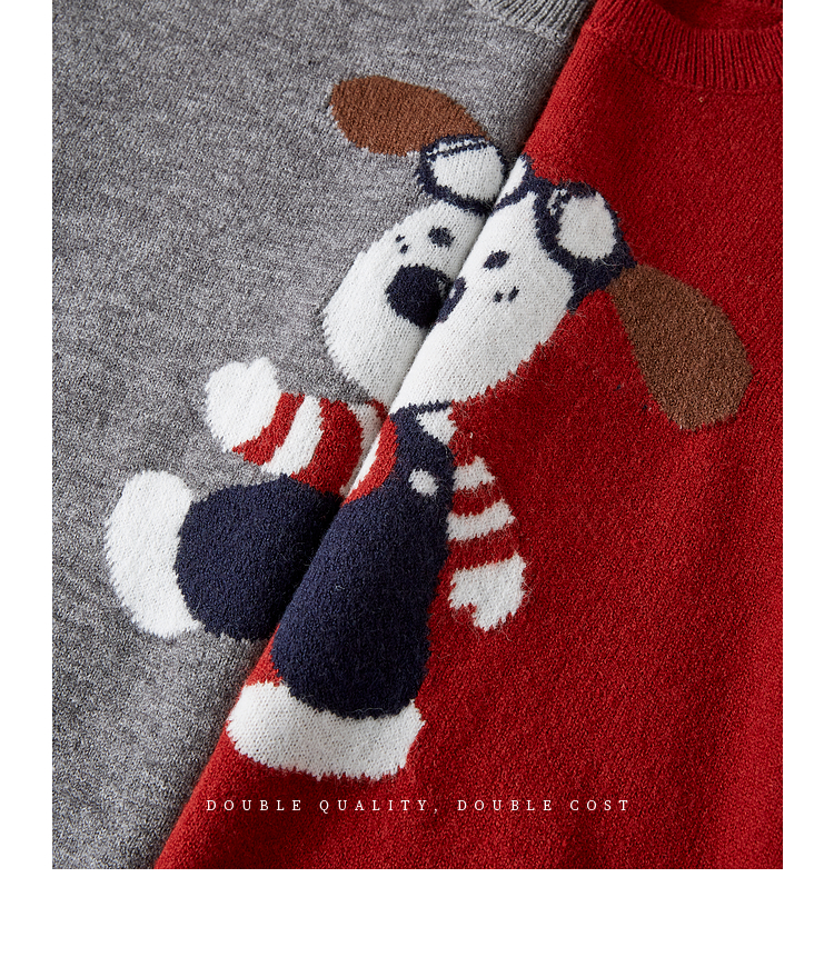 【专属特价】熙世界卡通小狗圆领毛衣2025春秋新款时尚减龄氛围感红色针织衫