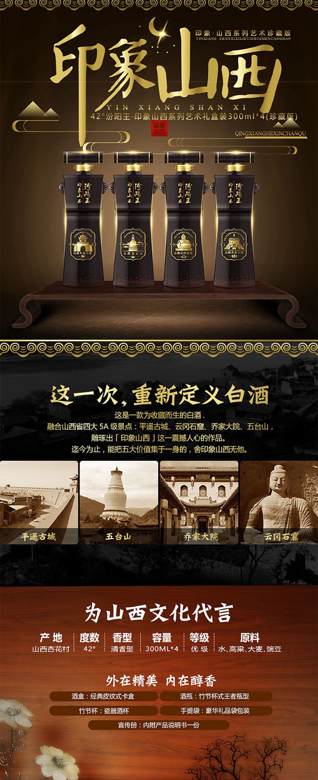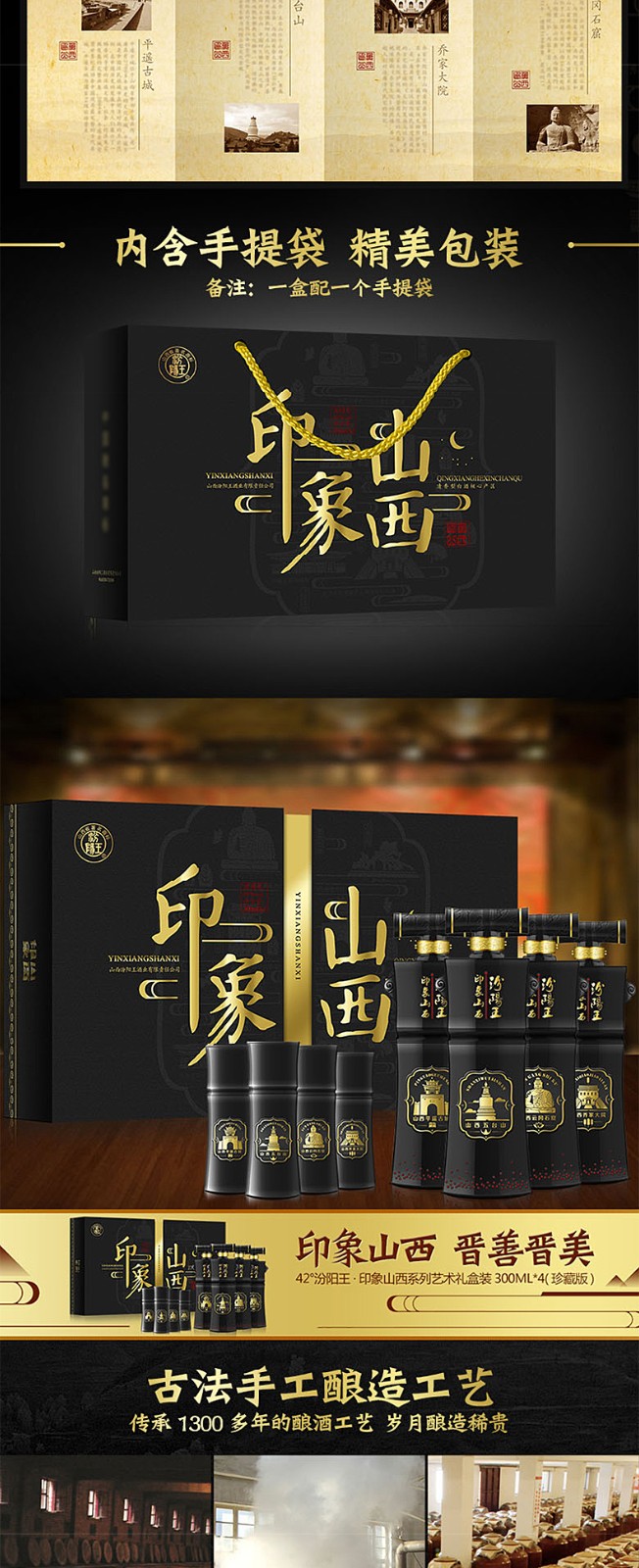 汾阳王42度印象山西300ML*4礼盒装包邮清香型送礼白酒特惠