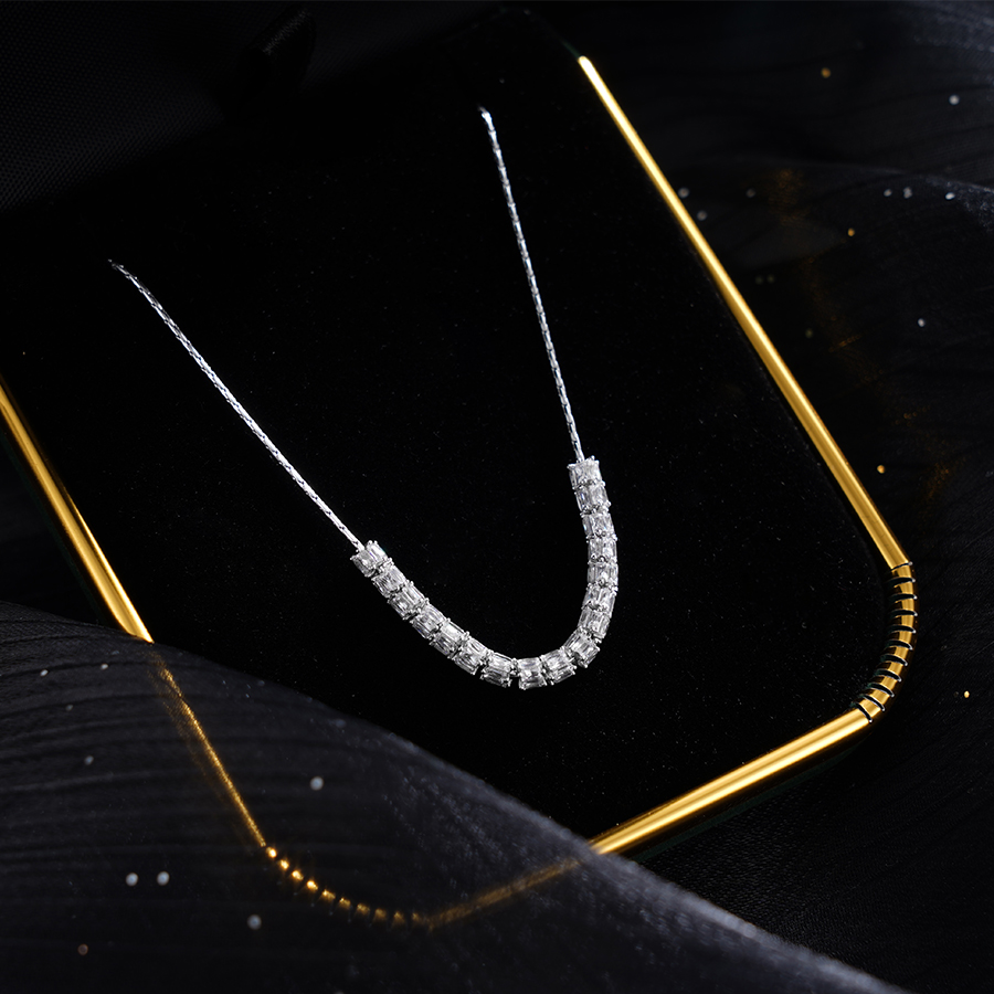 【寓意】:不加修饰的银白亮色项链,纯净高雅,细腻梦幻。点与线精妙串联,气质简约,尽显灵妙。