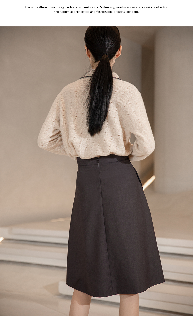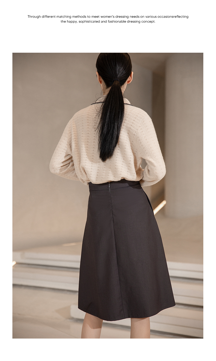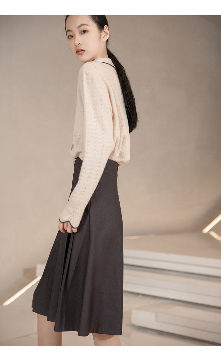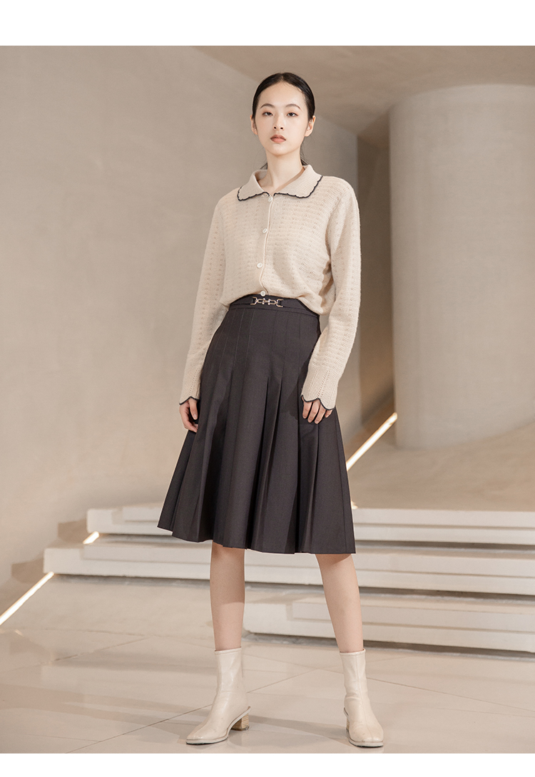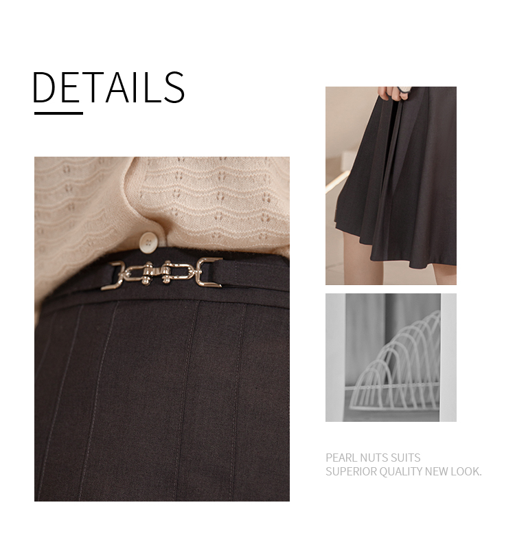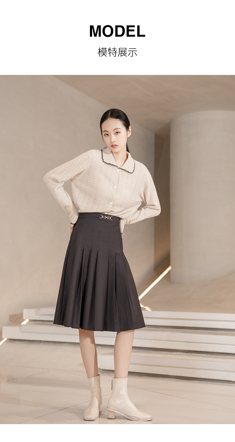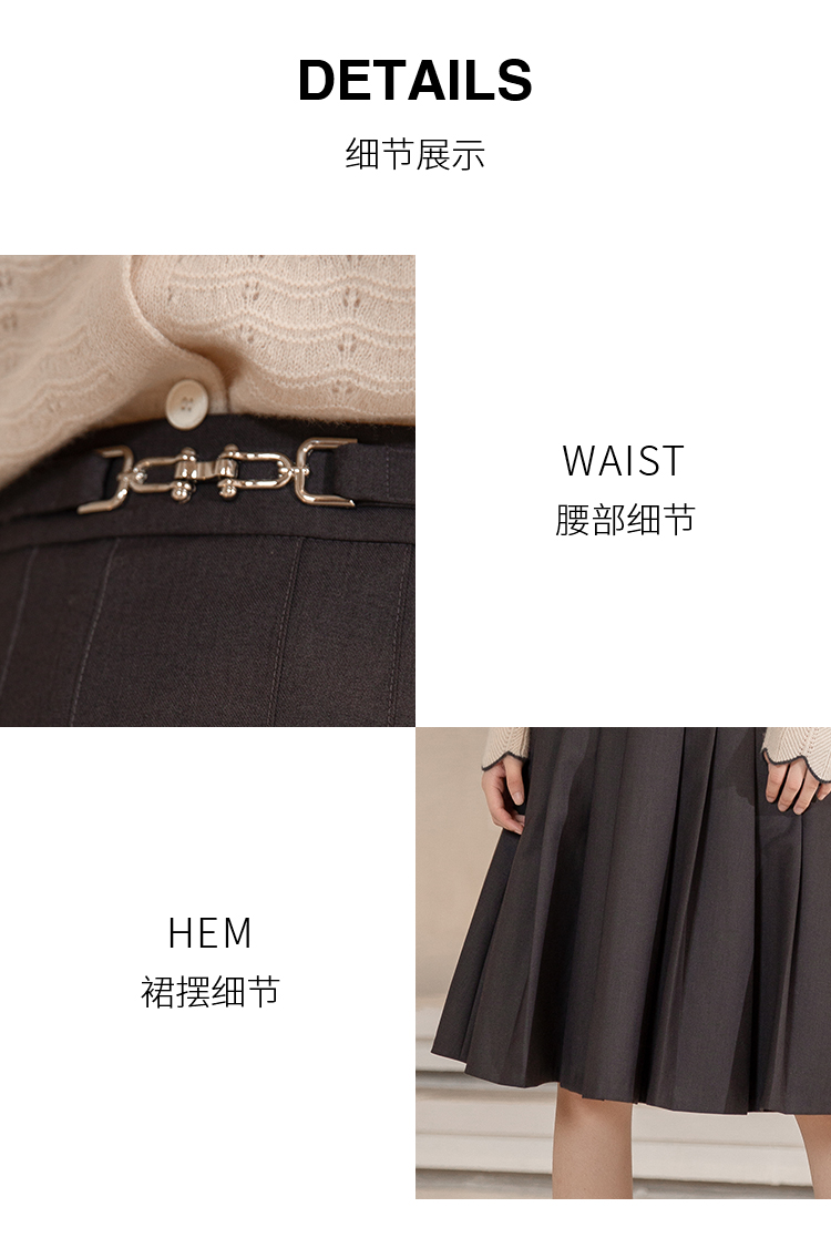 NUTS秋冬款高腰设计感气质A字遮肉显瘦百褶中长裙女241063060B