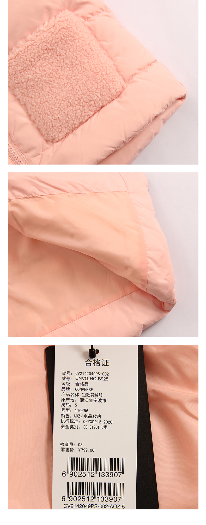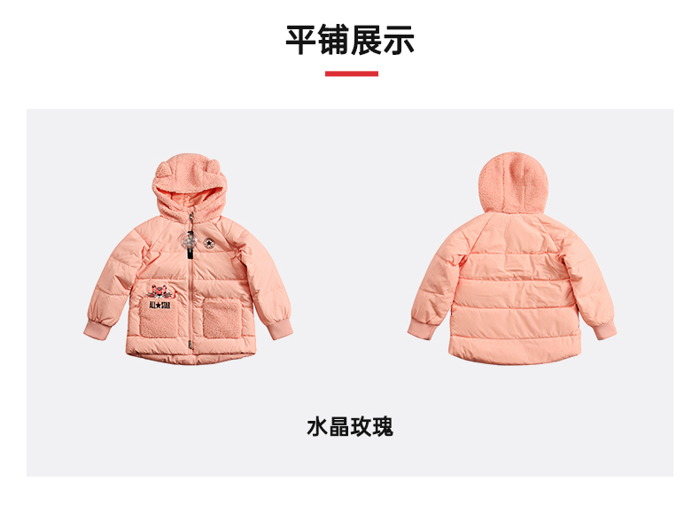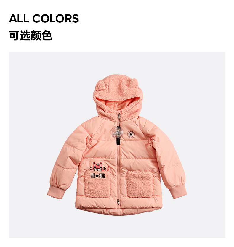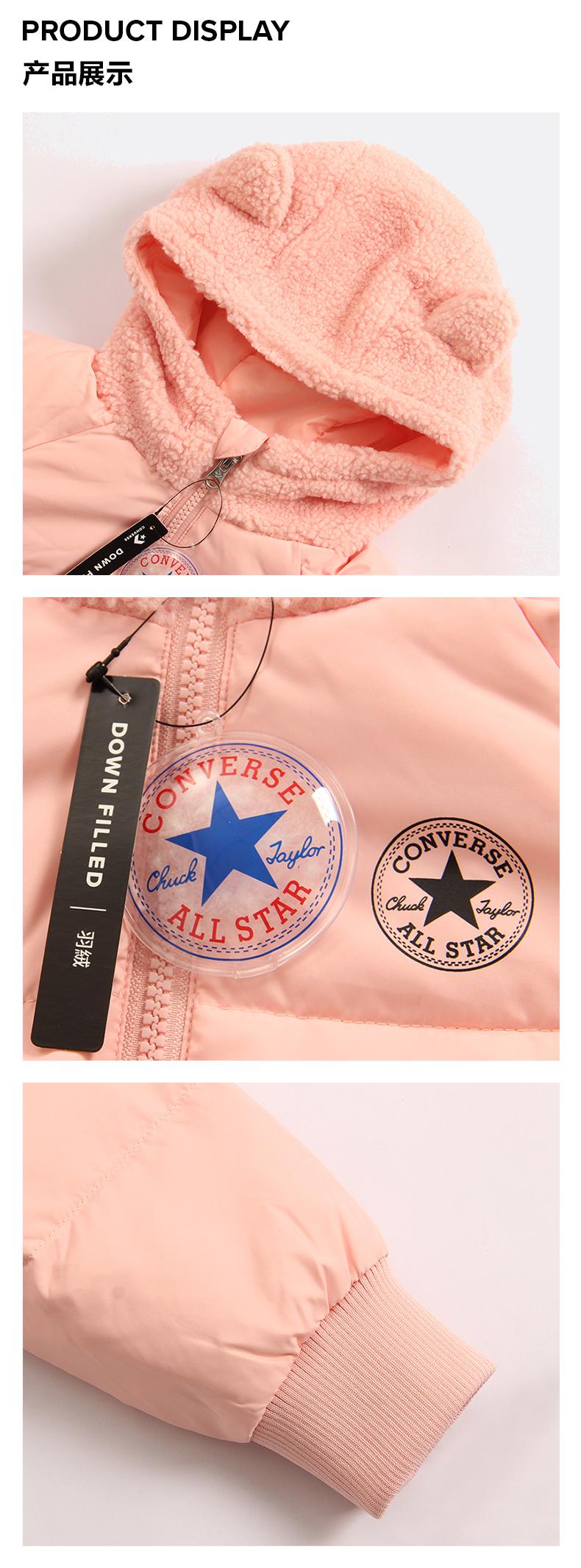 Converse匡威童衣冬女童中长款加厚保暖连帽粉羽绒服外套CV2142049