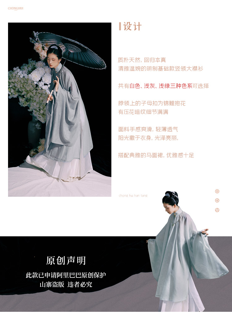 明镜台明制竖领大襟大袖衫正品原创春季汉服女中国风薄款