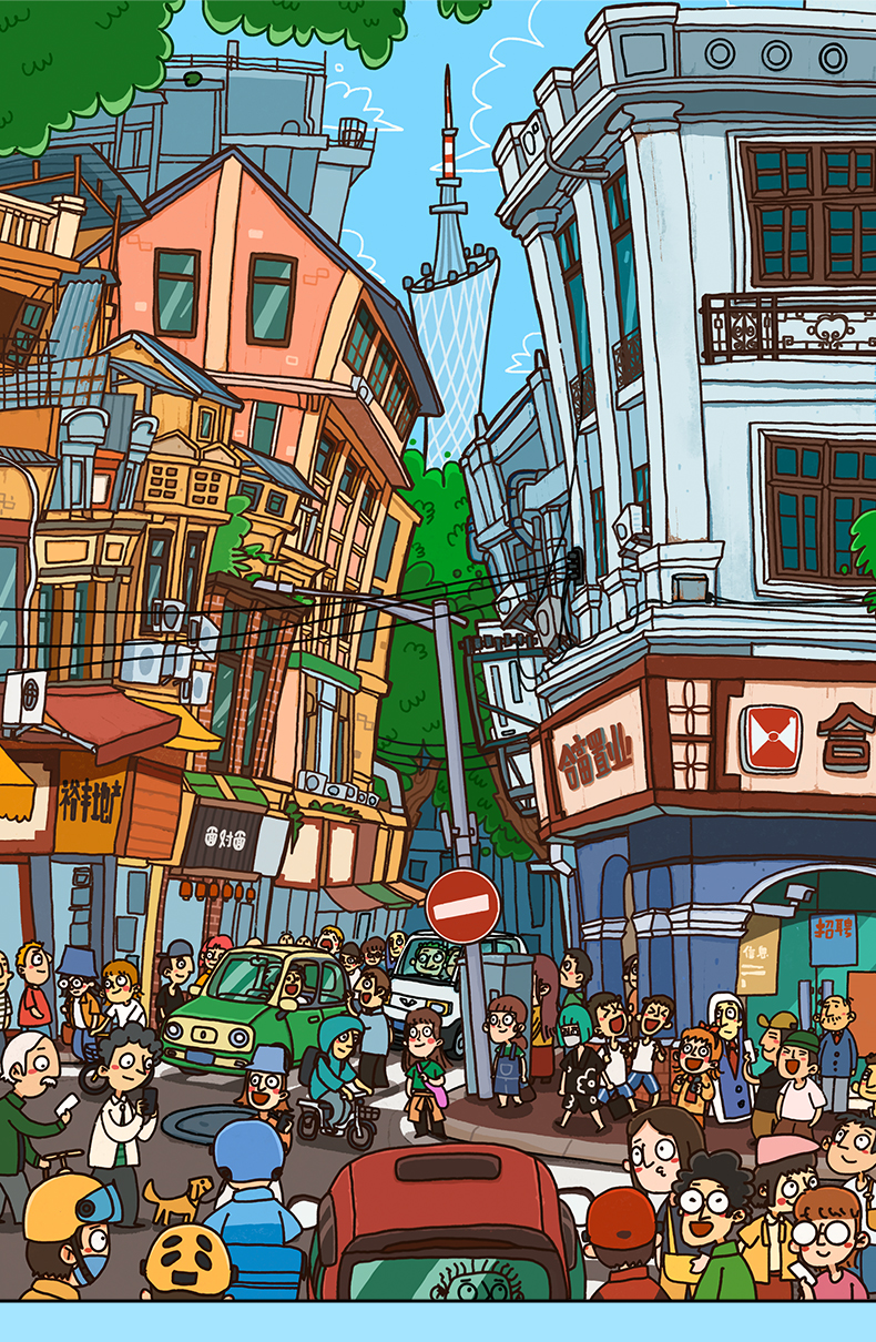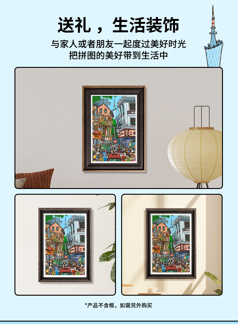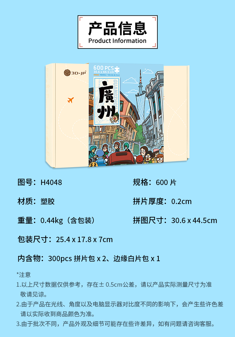 【折扣商品 不退不换】600片 平面塑料拼图 H4048 阿普食饭仙-广州的大街小巷·东山口