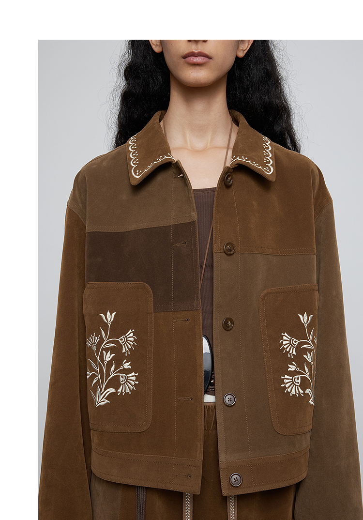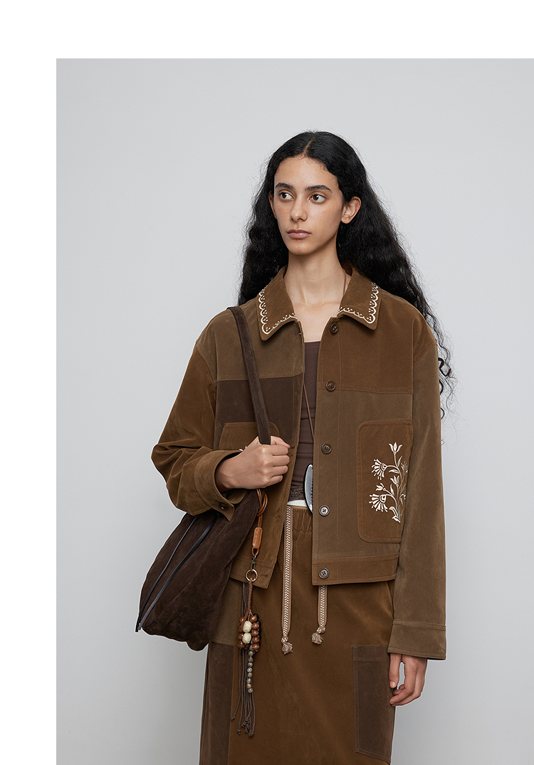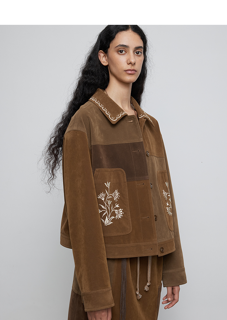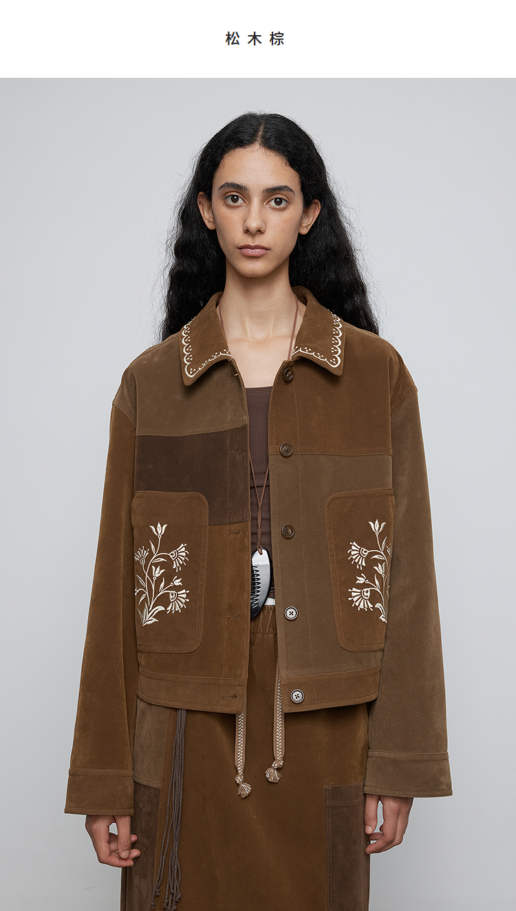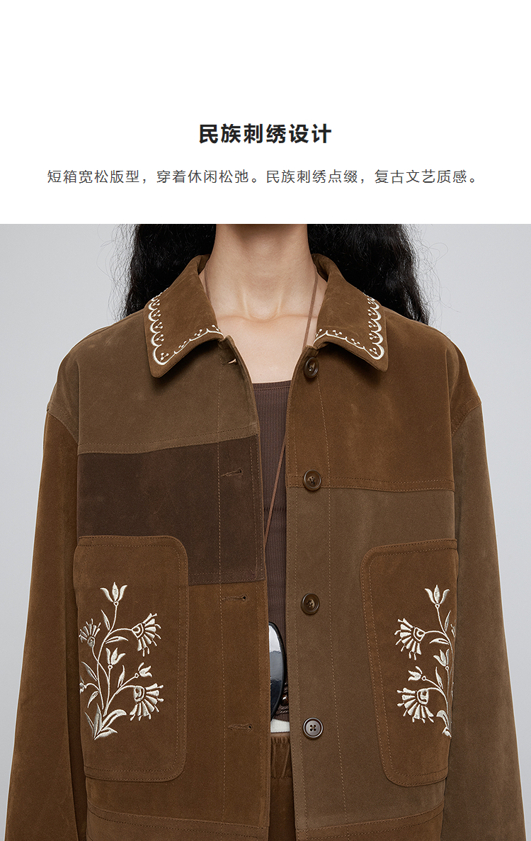 半圆/Q5231842/短款宽松休闲撞色绣花外套