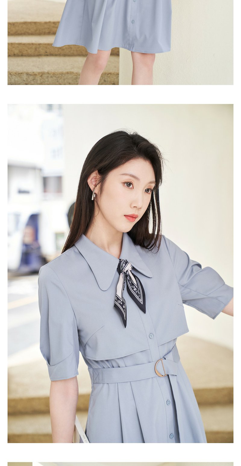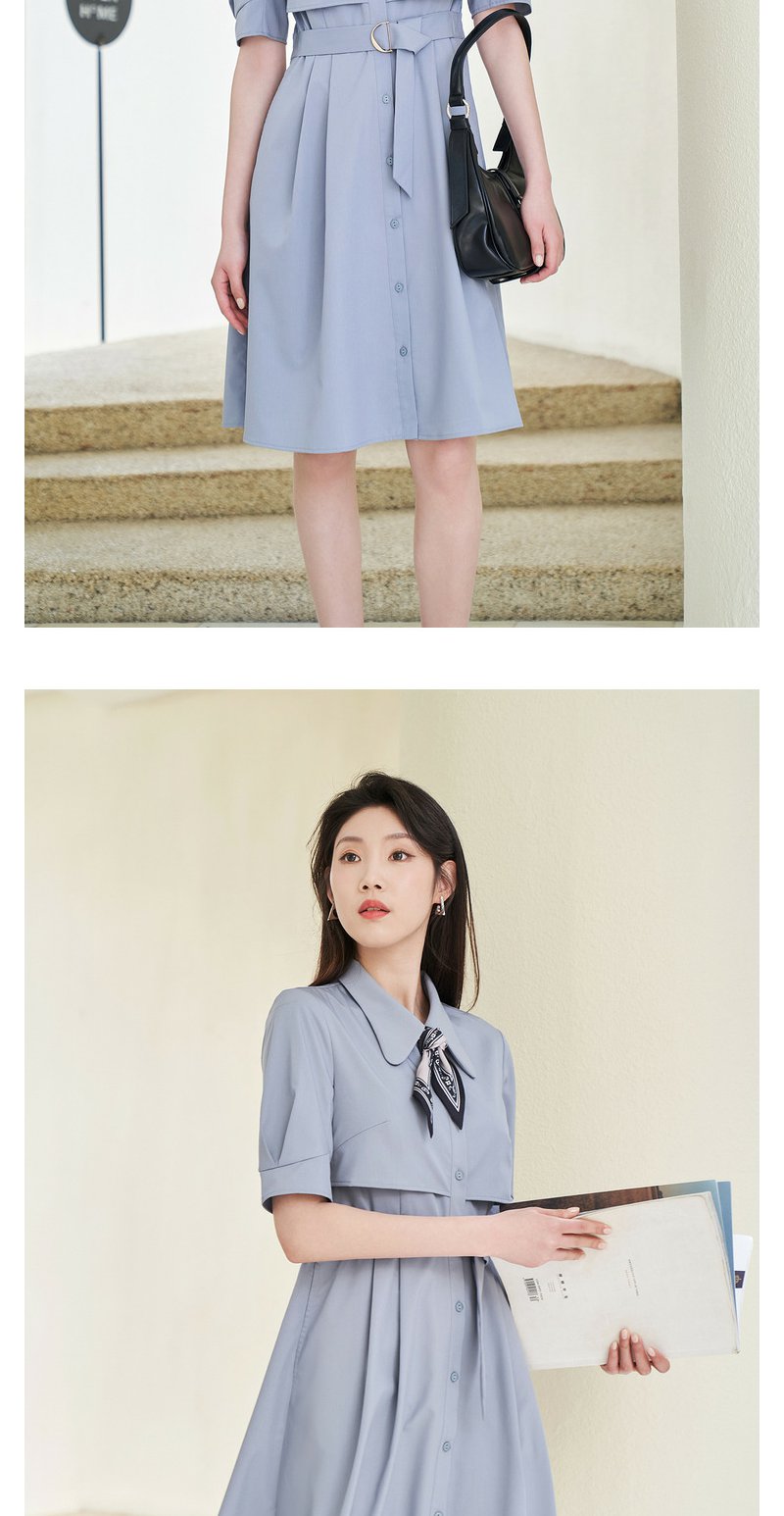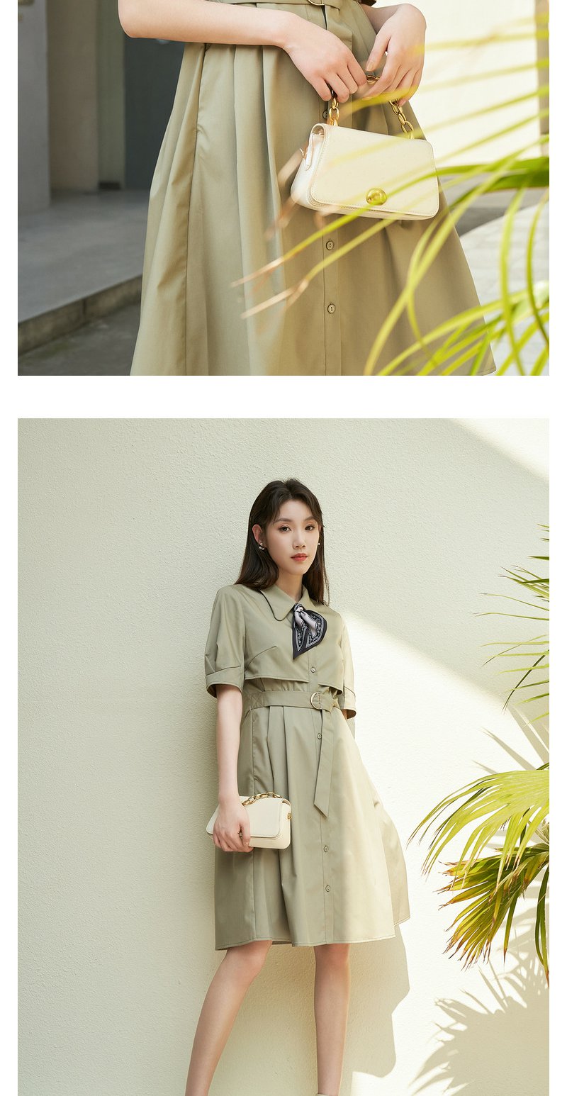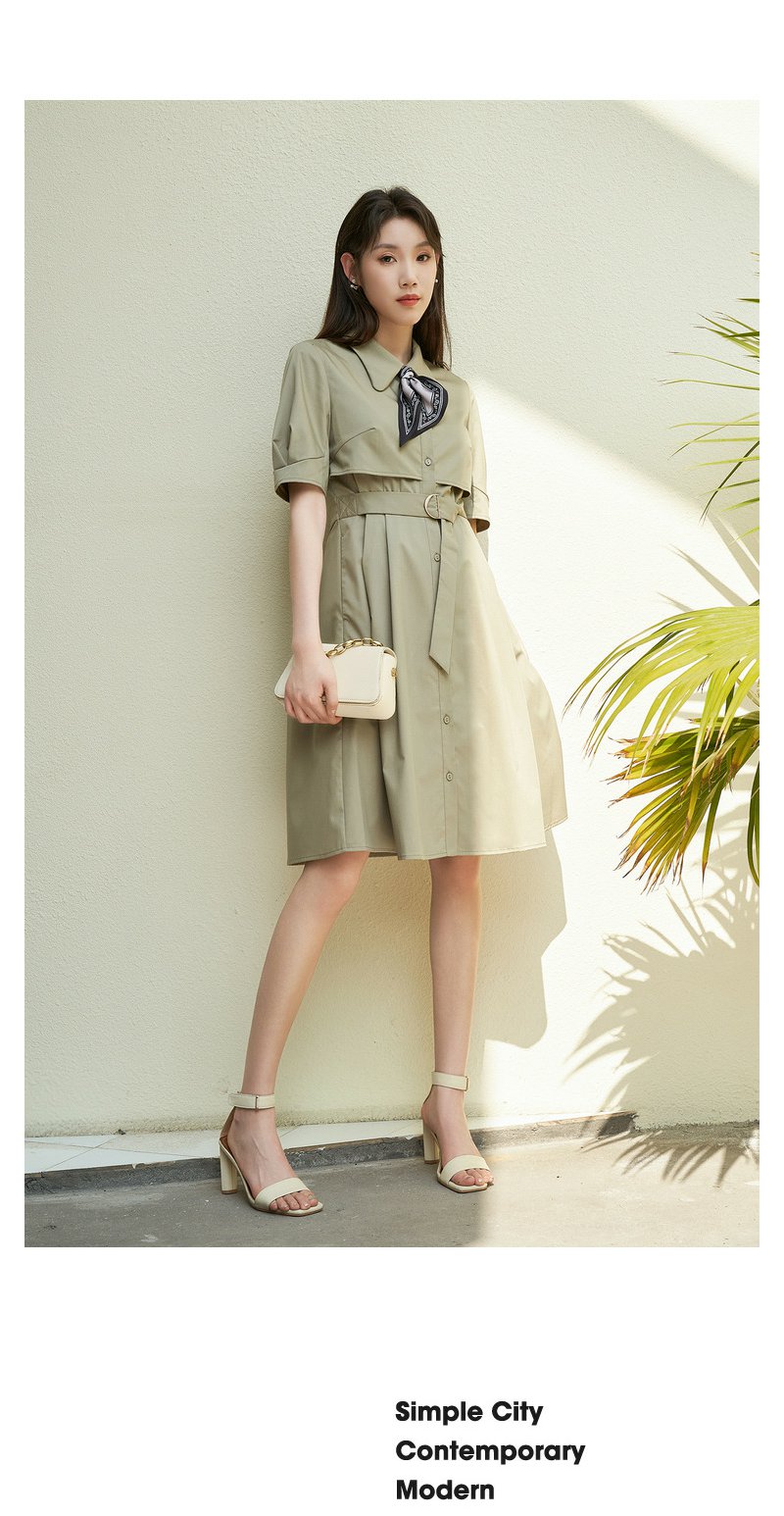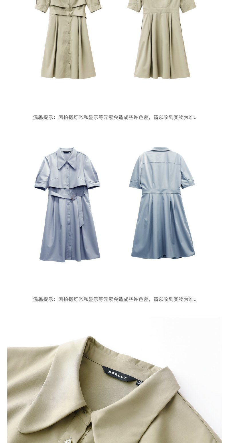 NEELLY纳俪商场同款夏新款简约通勤连衣裙女单排扣收腰系带A字裙N25044Y04582