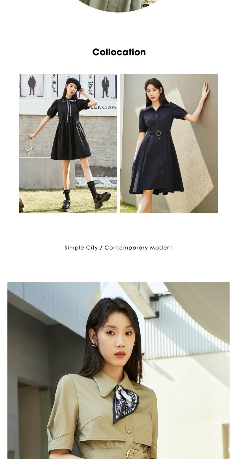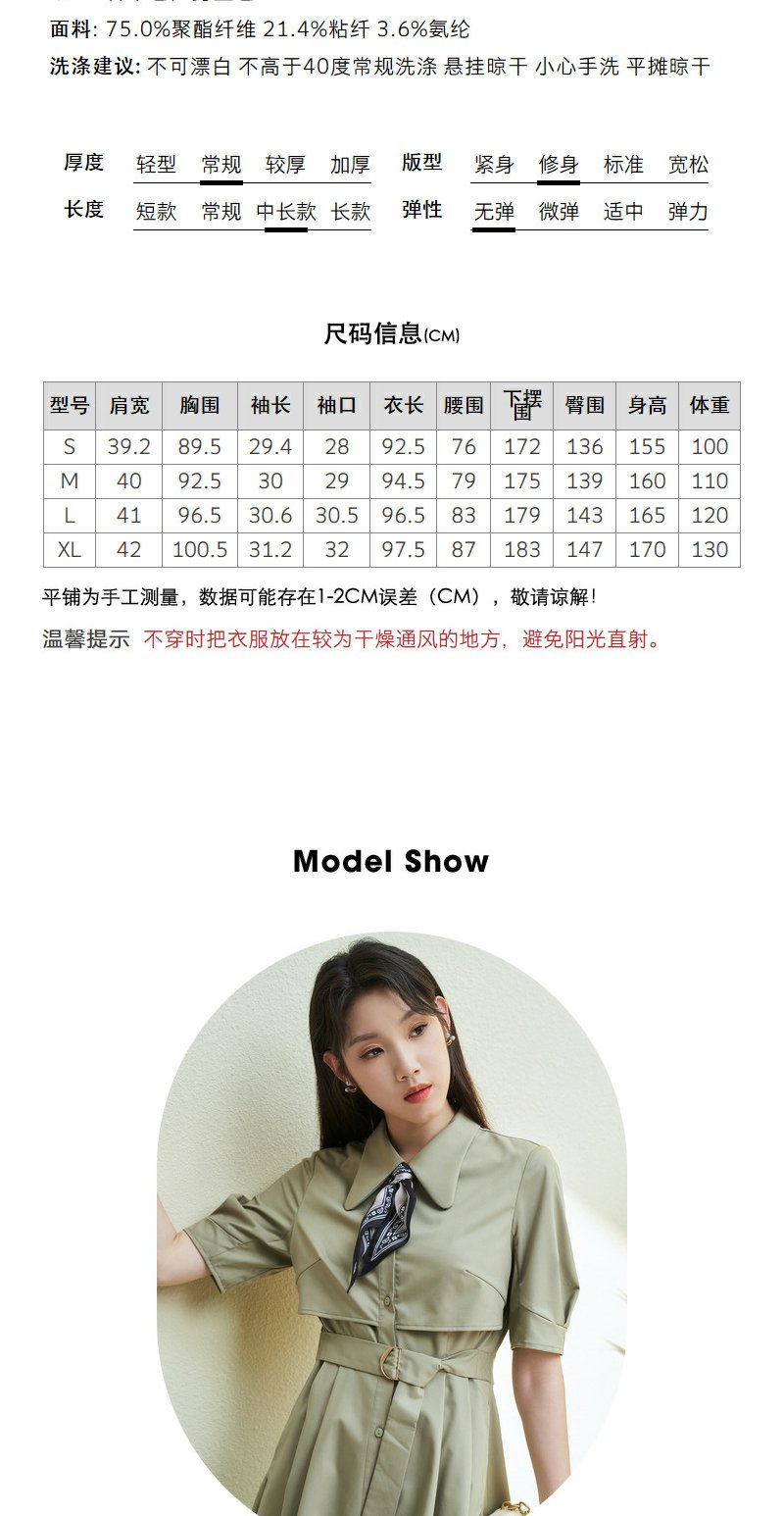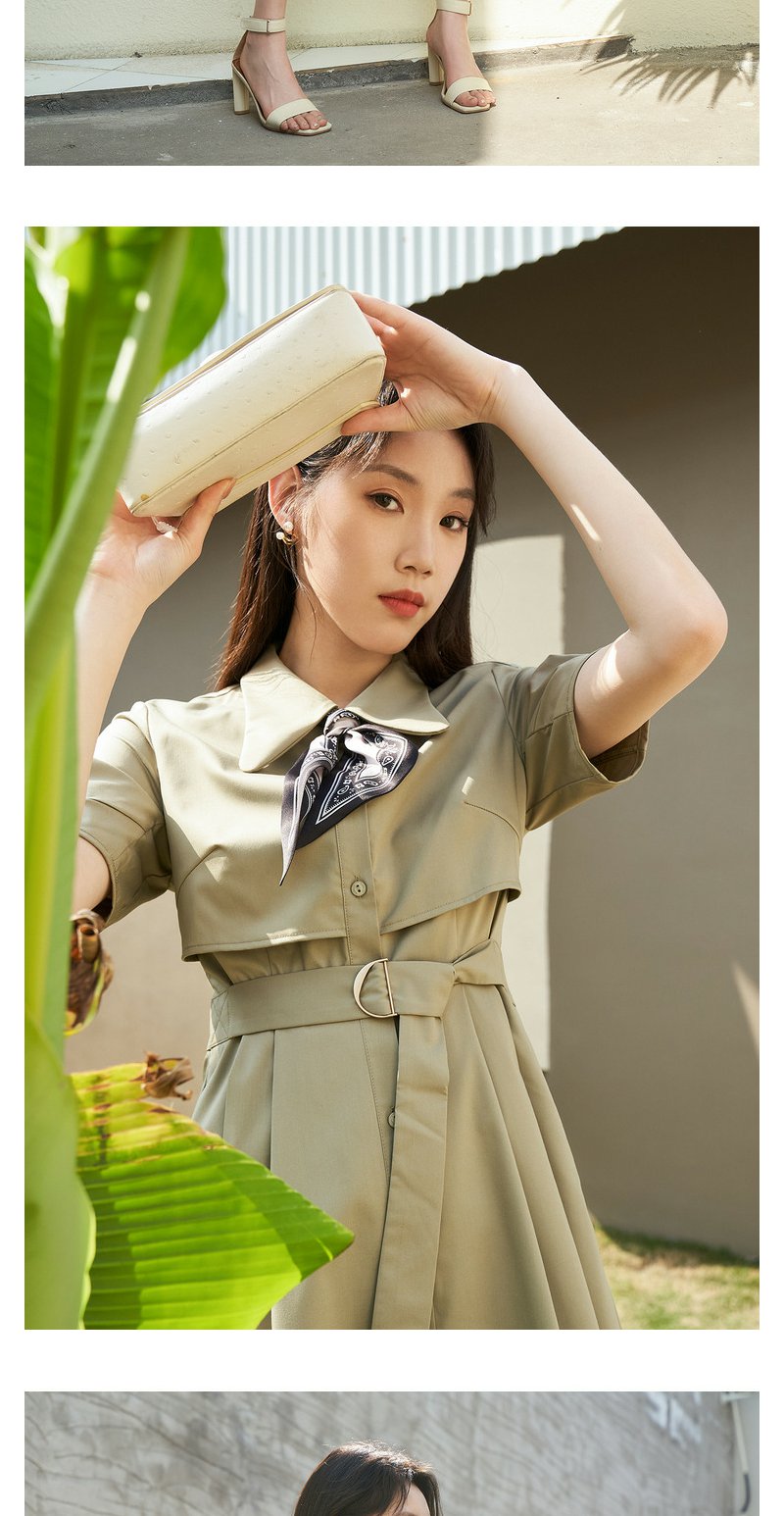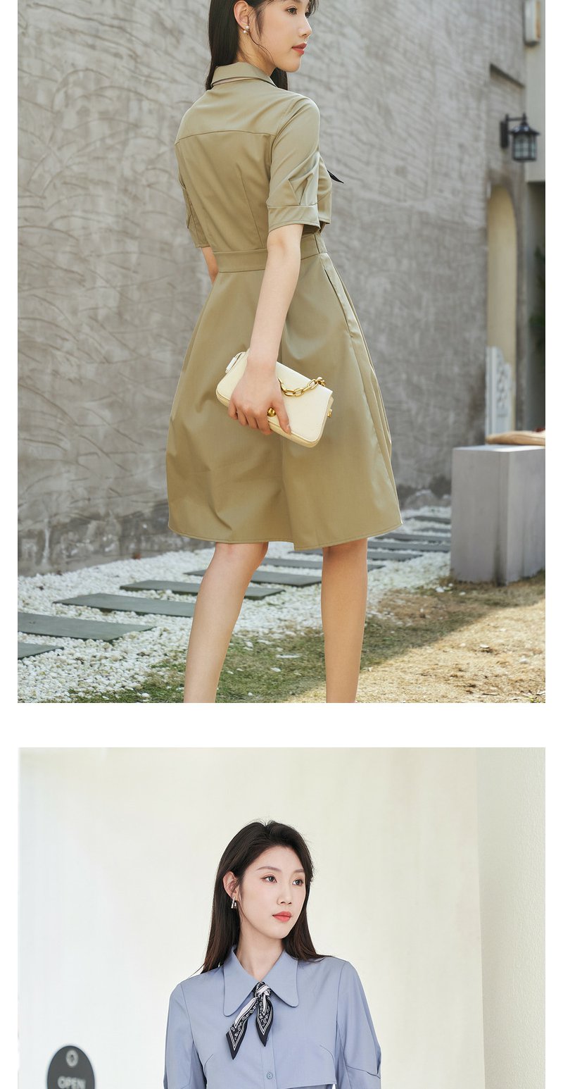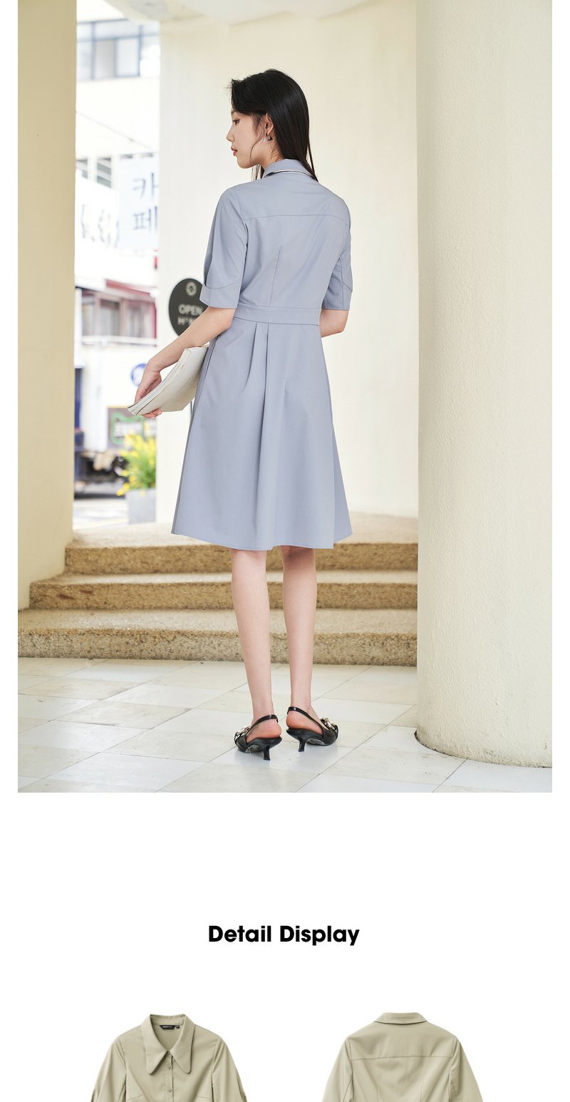 NEELLY纳俪商场同款夏新款简约通勤连衣裙女单排扣收腰系带A字裙N25044Y04582