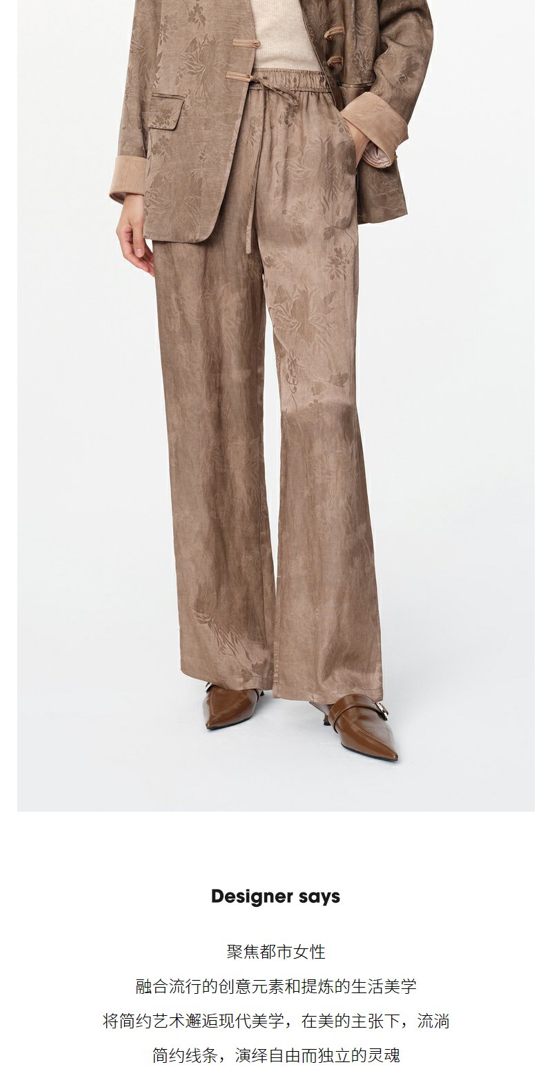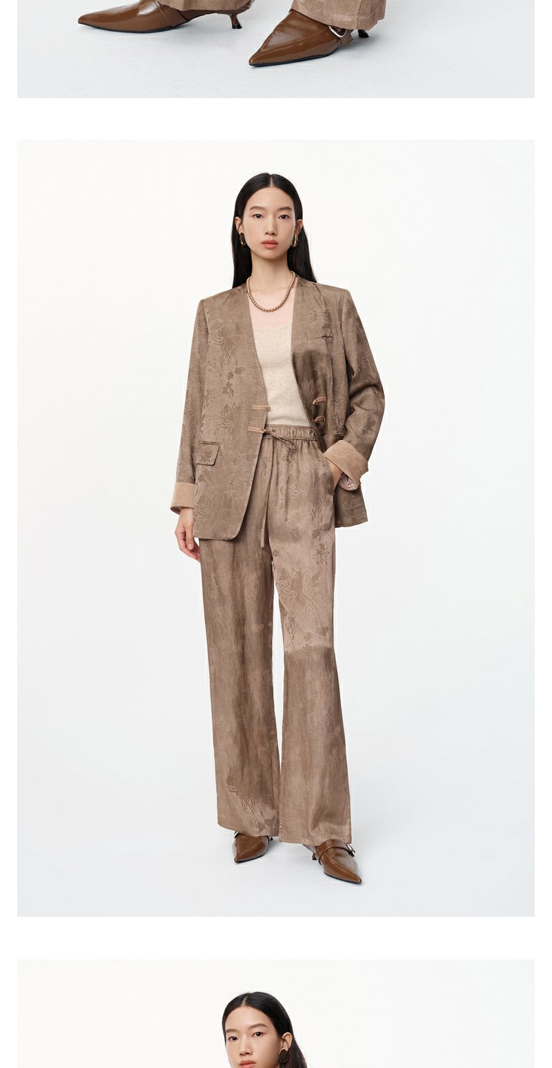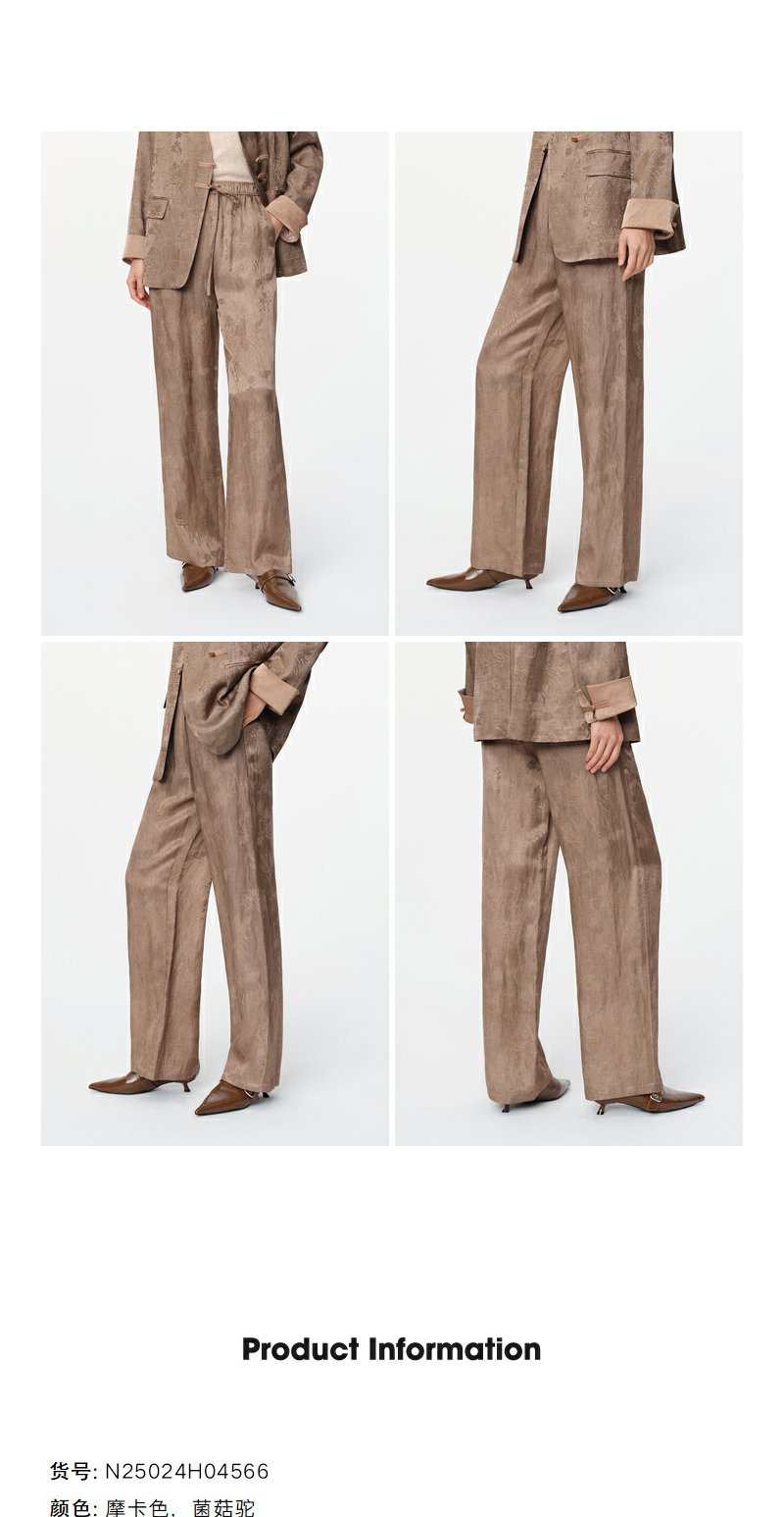 NEELLY纳俪商场同款春季新款高级感新中式暗纹印花直筒休闲裤女N25024H04566